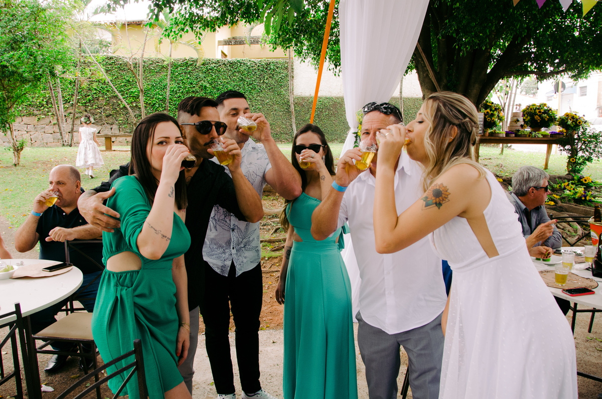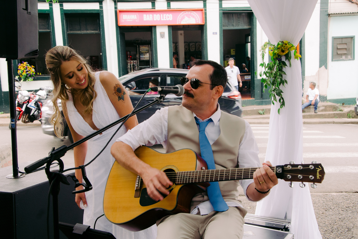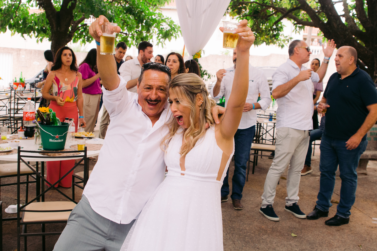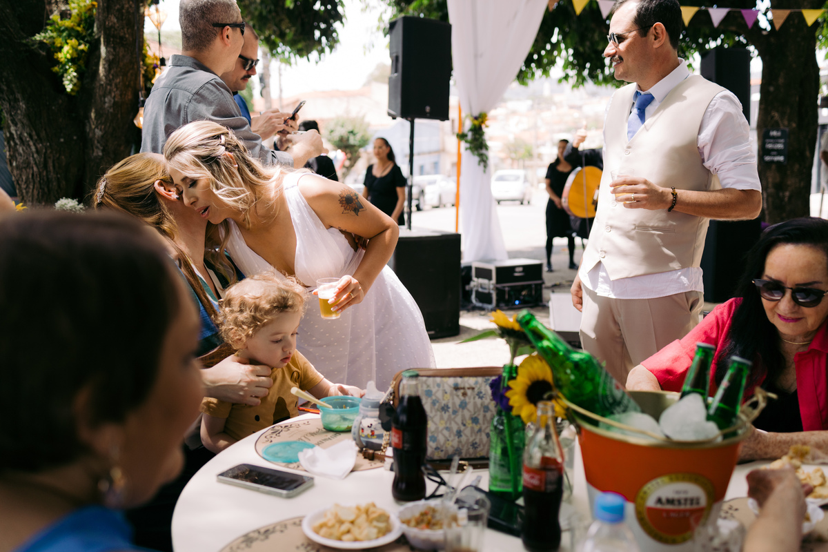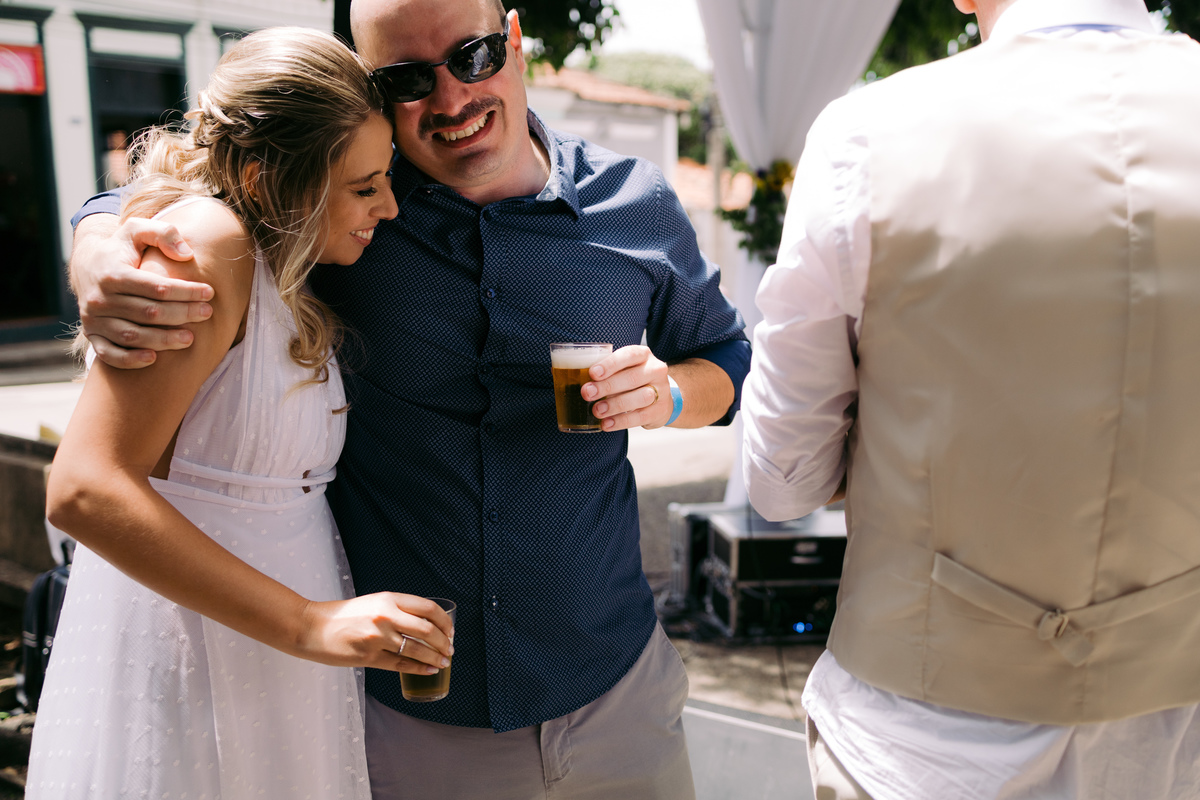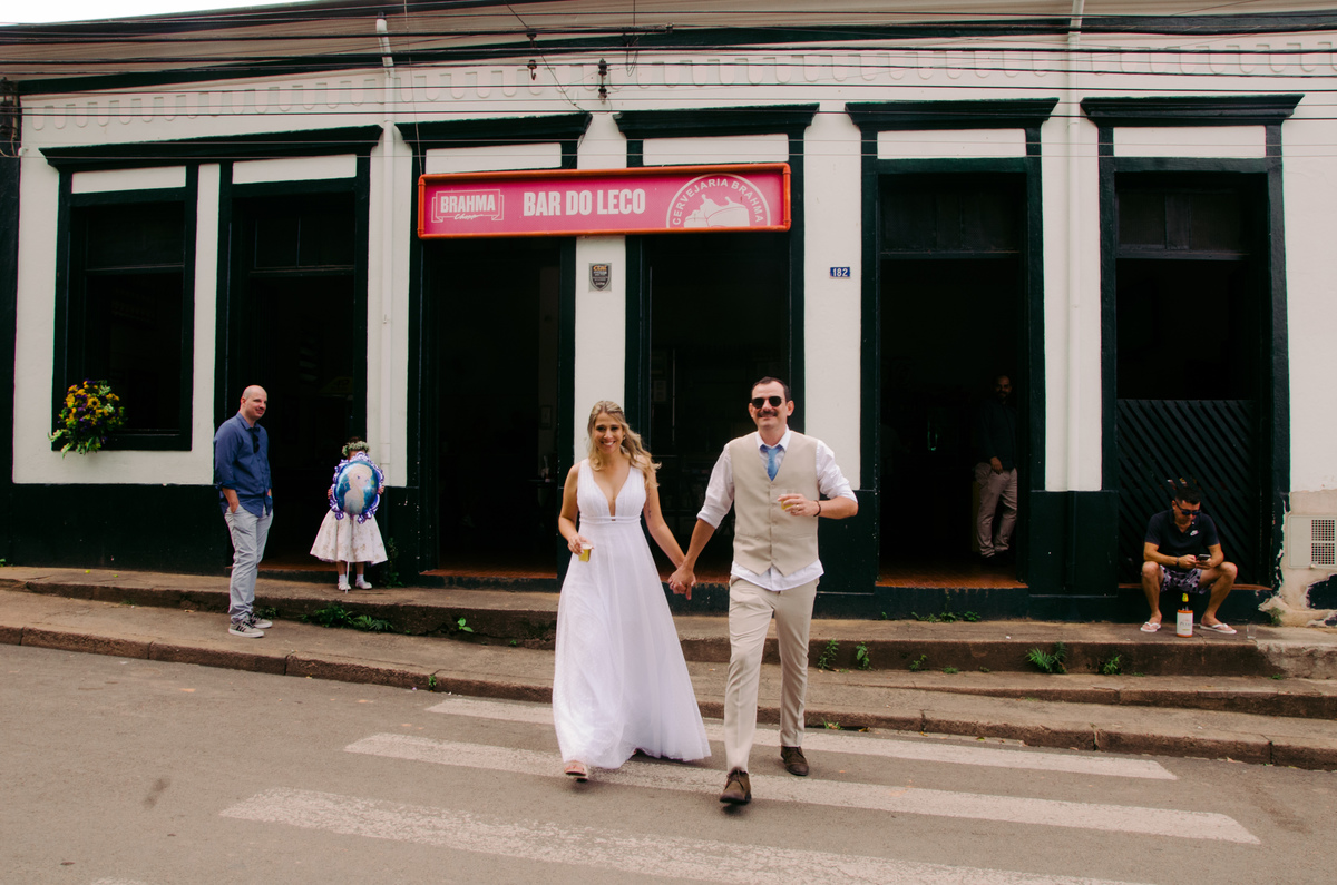 Então vem comigo ver esse, eles moram em Santa Catarina, mas o André é de Pinhal (vou chamar assim pois como me considero da cidade kkk, sempre se fala pinhal), eles tem um história com o Bar do Leco, um bar muito conhecido na cidade, e porque não fazer a festa na frente, lá na pracinha do bar, os noivos gostam de cerveja os amigos também, imagina se essa combinação não era perfeita, um dia ensolarado, um dia lindo.