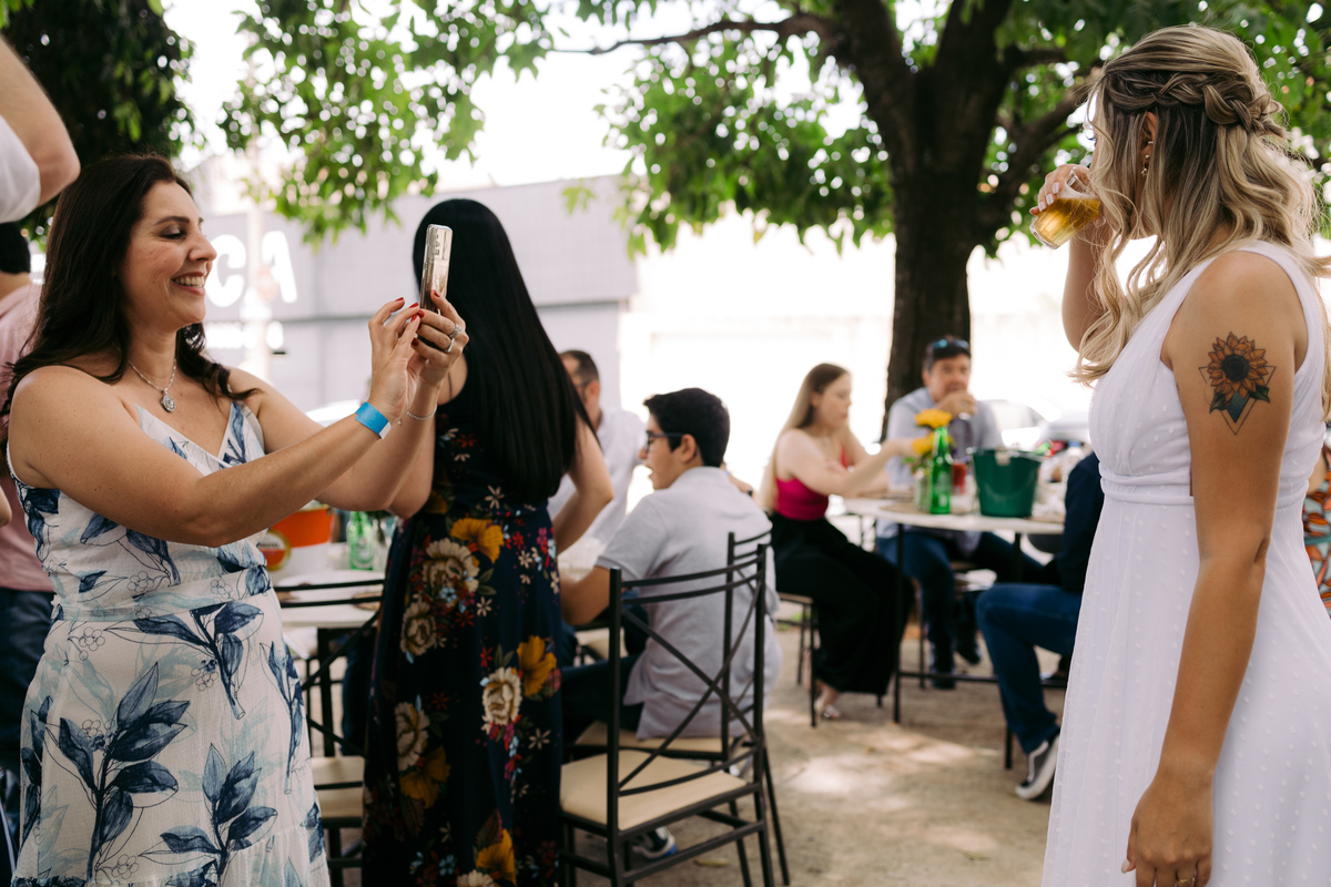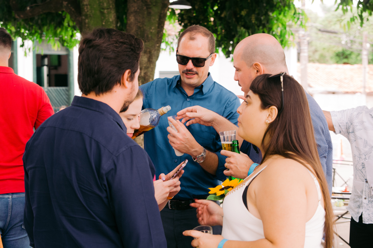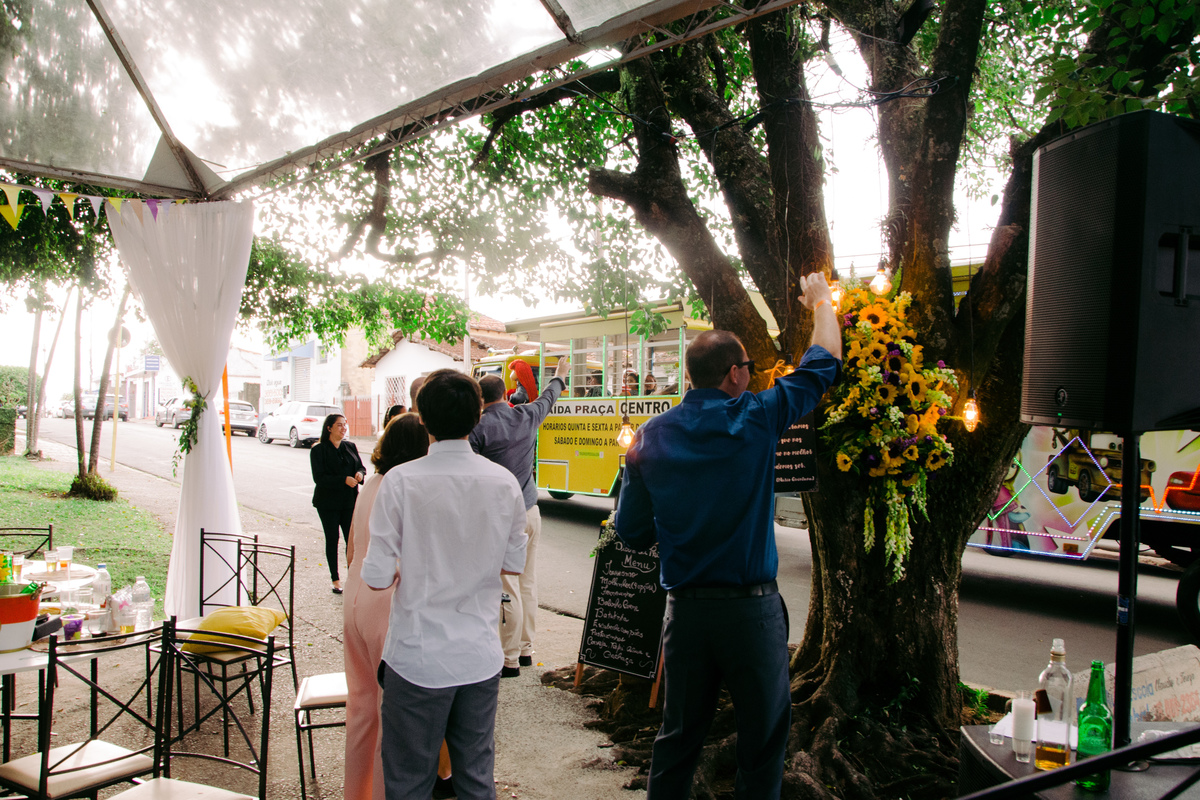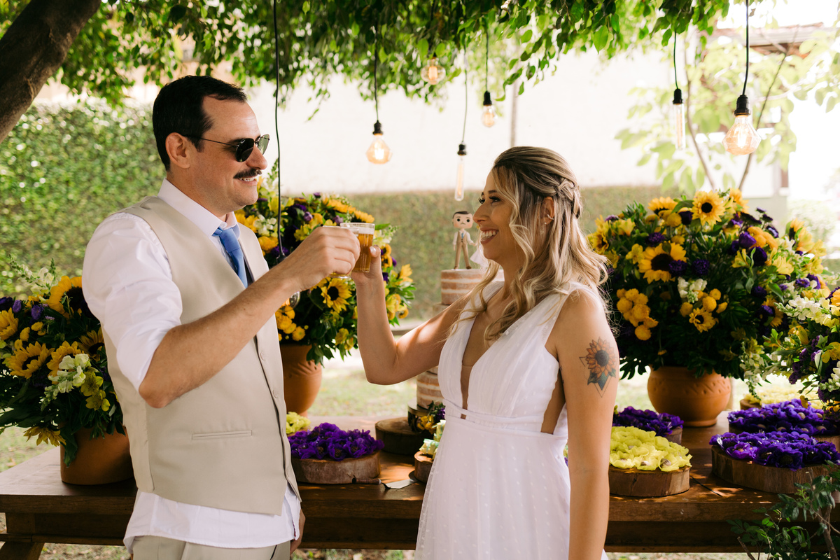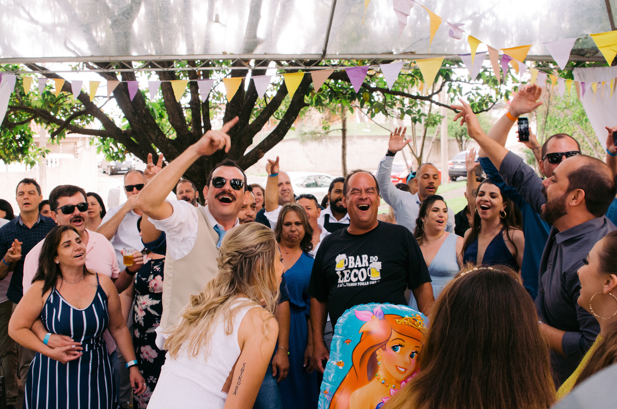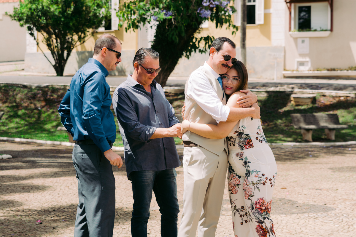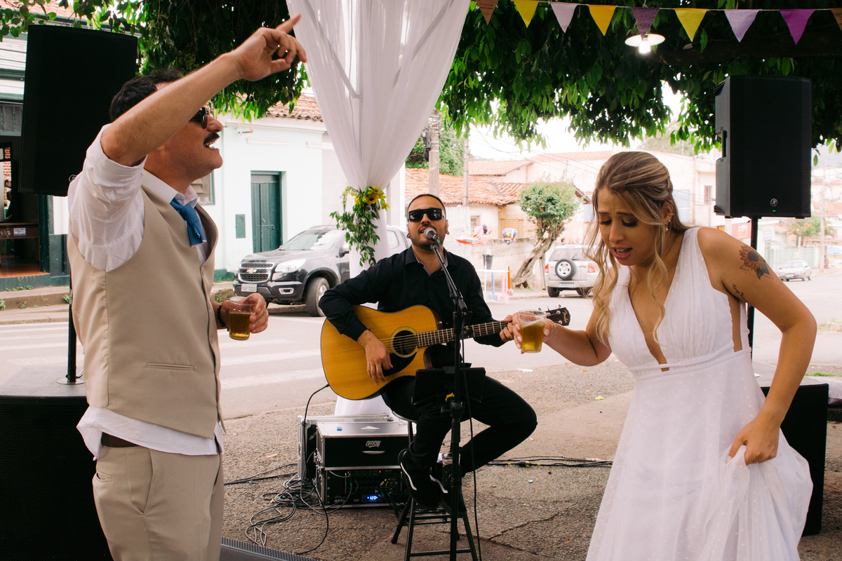 Então vem comigo ver esse, eles moram em Santa Catarina, mas o André é de Pinhal (vou chamar assim pois como me considero da cidade kkk, sempre se fala pinhal), eles tem um história com o Bar do Leco, um bar muito conhecido na cidade, e porque não fazer a festa na frente, lá na pracinha do bar, os noivos gostam de cerveja os amigos também, imagina se essa combinação não era perfeita, um dia ensolarado, um dia lindo.