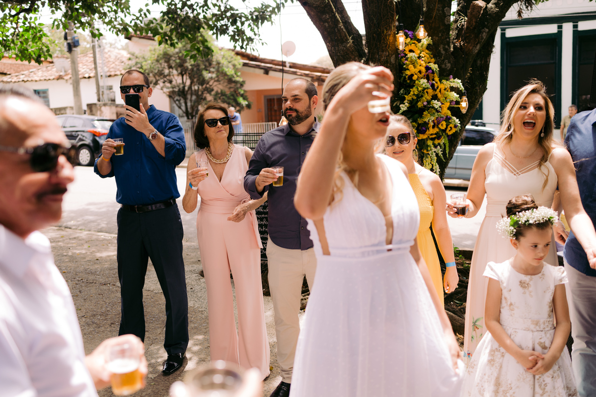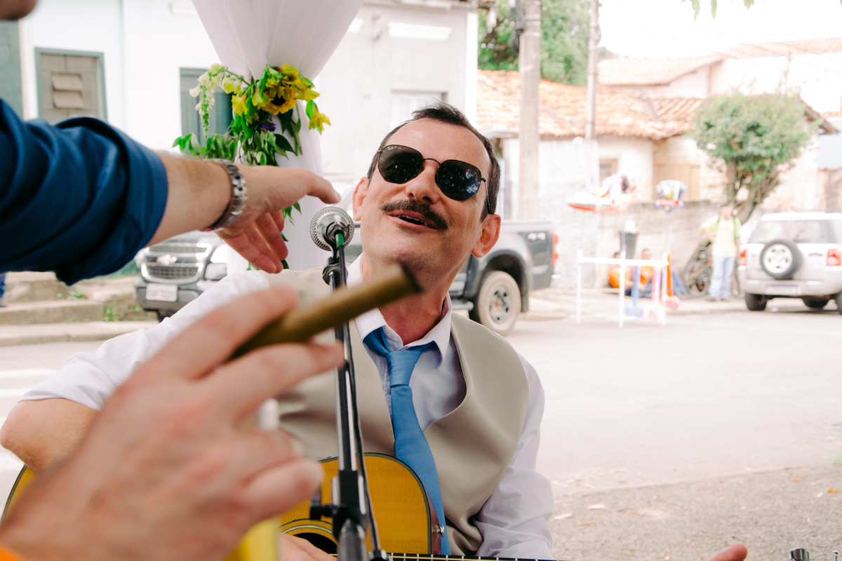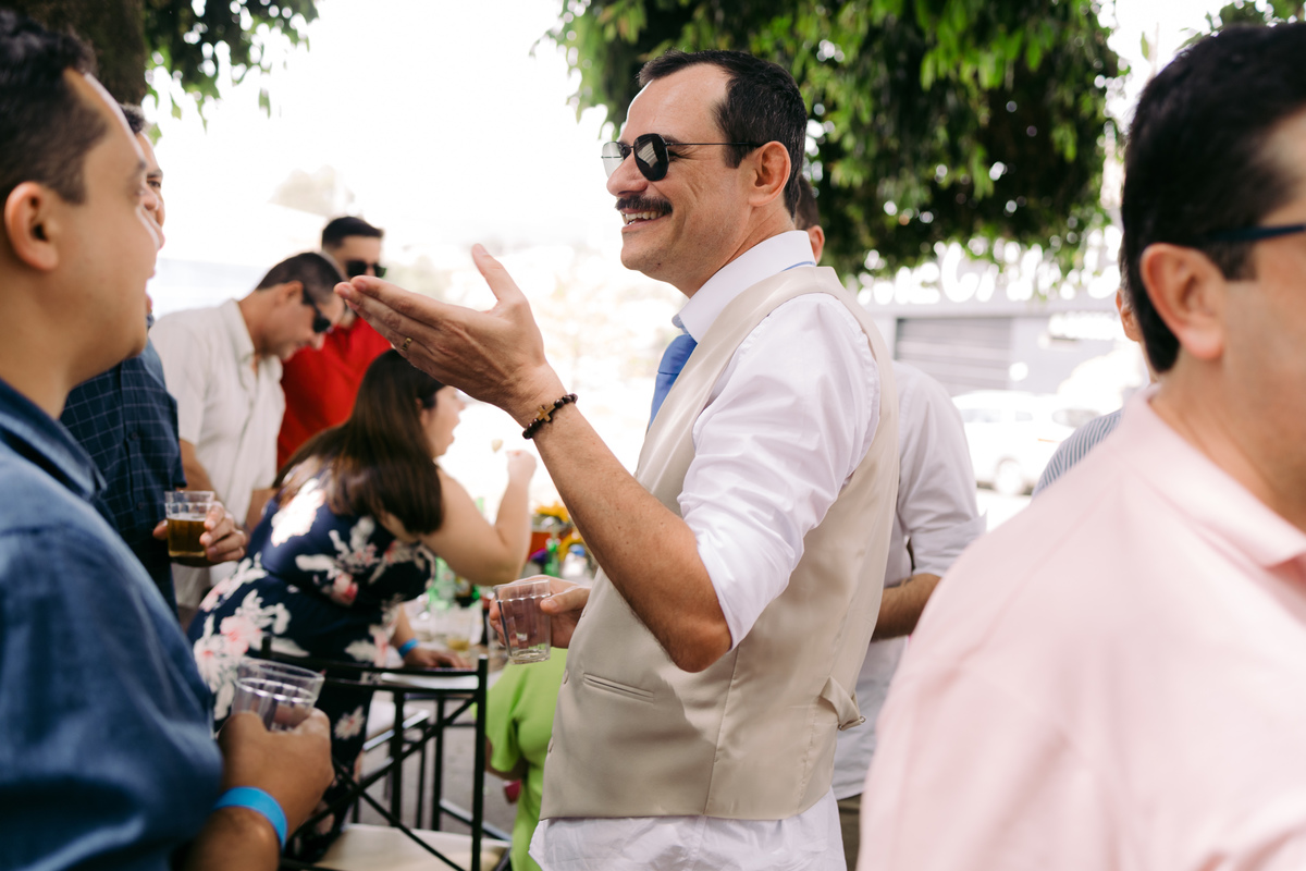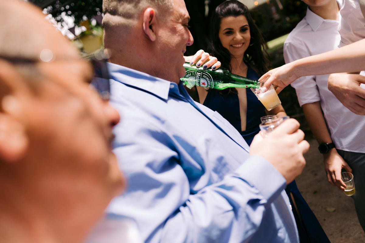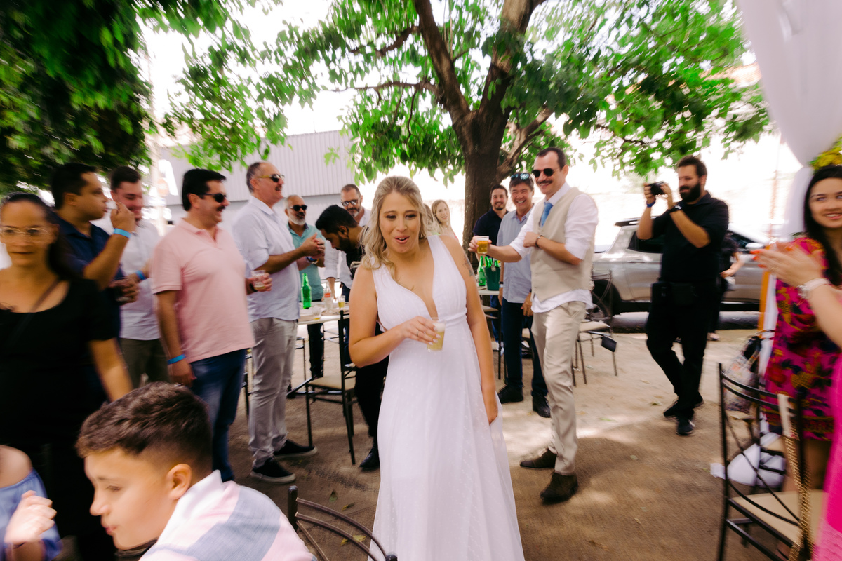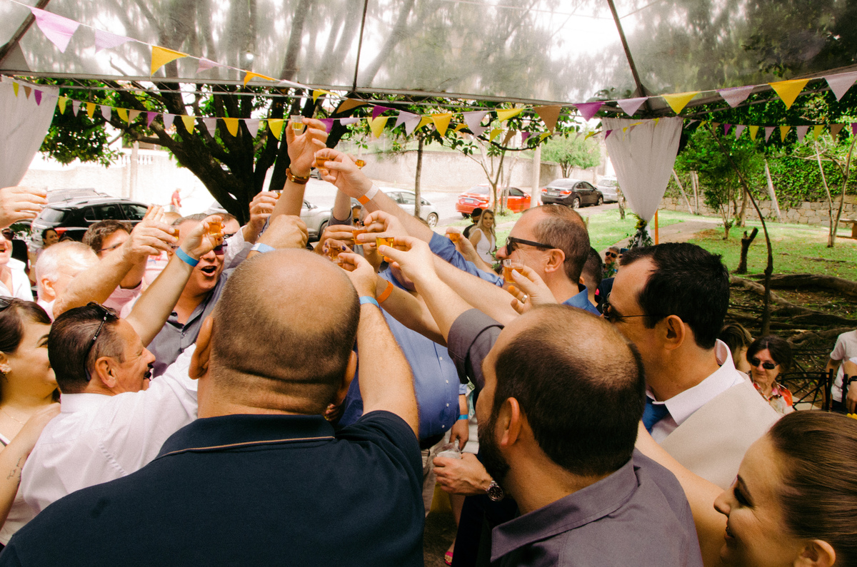 Então vem comigo ver esse, eles moram em Santa Catarina, mas o André é de Pinhal (vou chamar assim pois como me considero da cidade kkk, sempre se fala pinhal), eles tem um história com o Bar do Leco, um bar muito conhecido na cidade, e porque não fazer a festa na frente, lá na pracinha do bar, os noivos gostam de cerveja os amigos também, imagina se essa combinação não era perfeita, um dia ensolarado, um dia lindo.