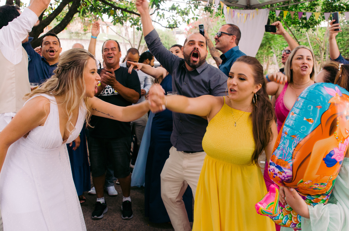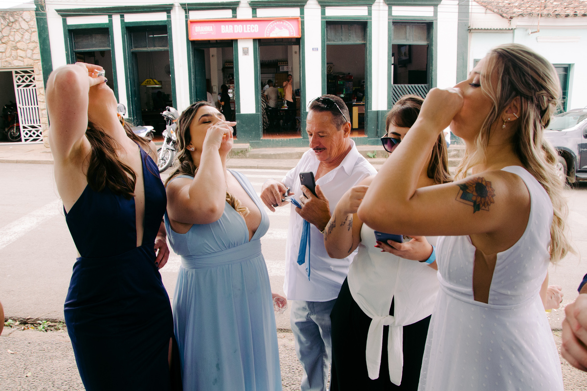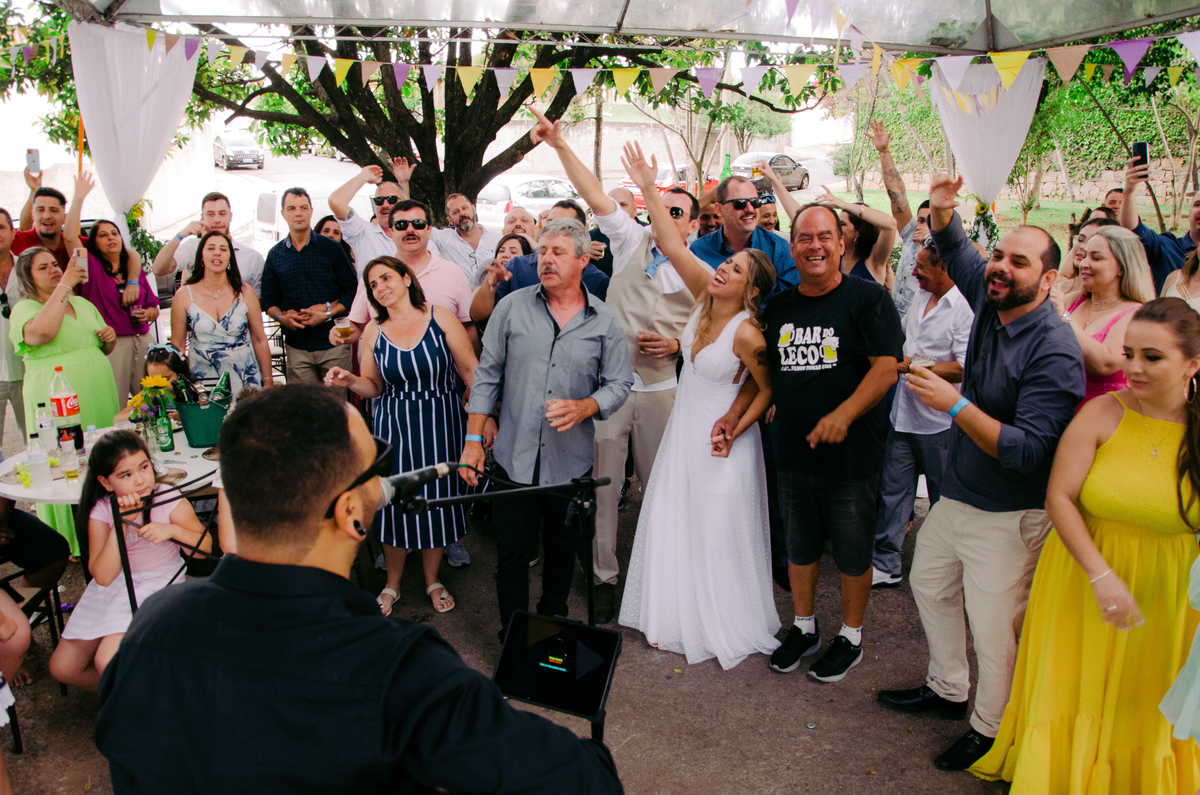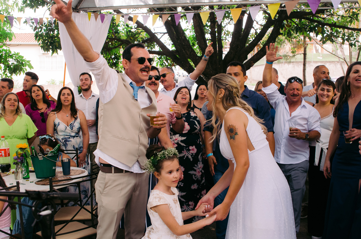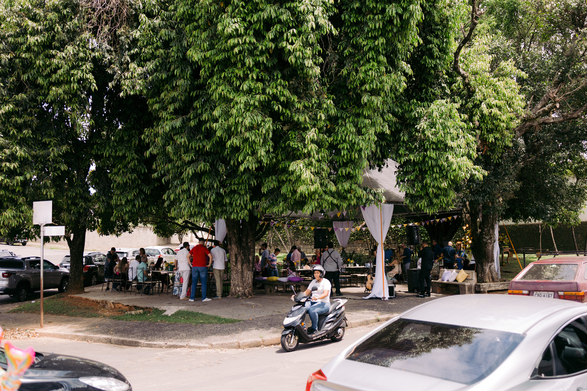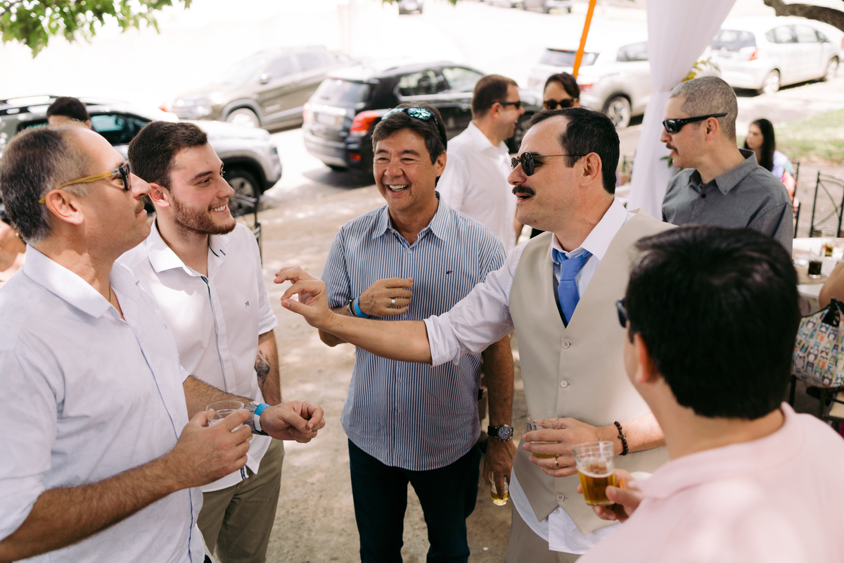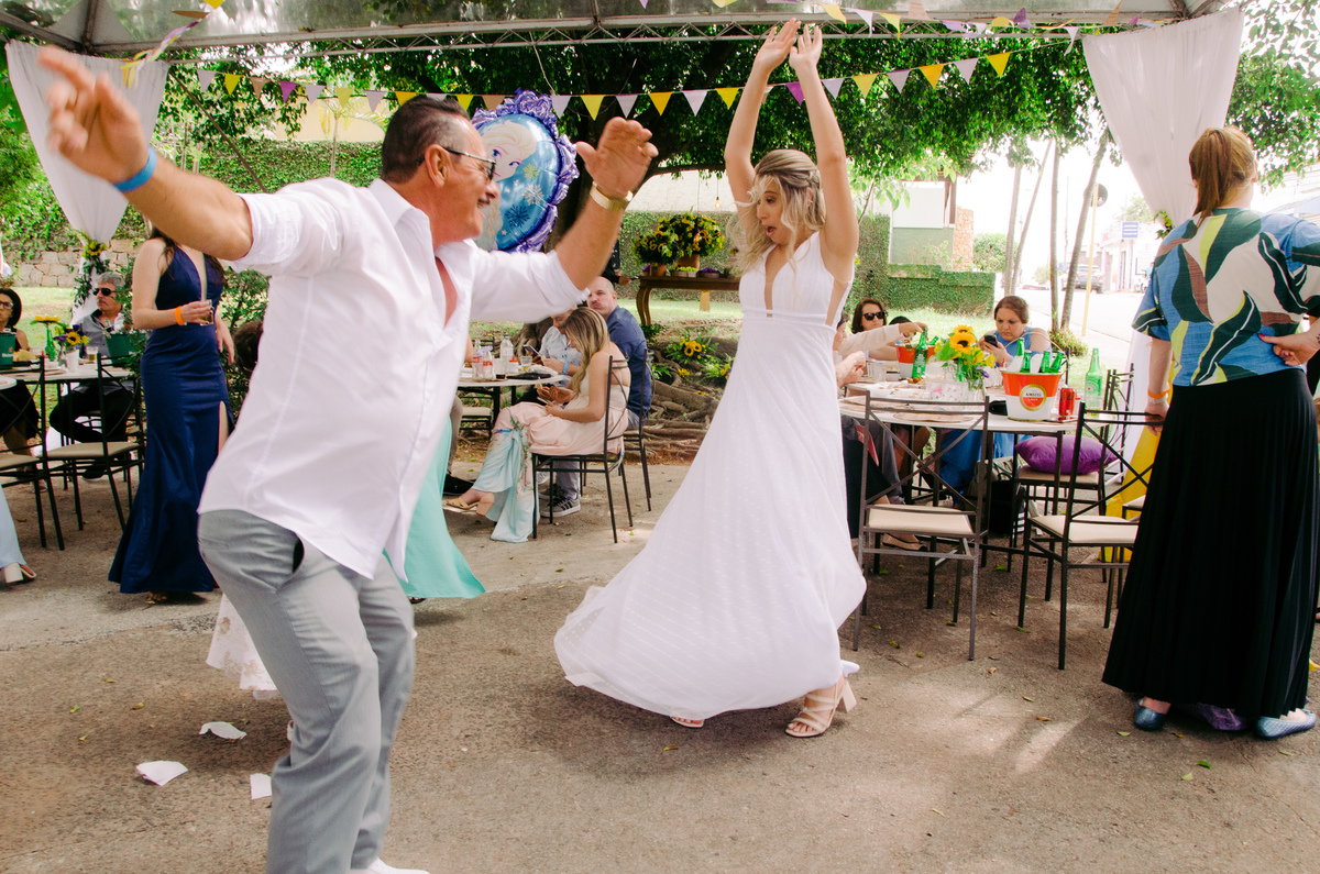 Então vem comigo ver esse, eles moram em Santa Catarina, mas o André é de Pinhal (vou chamar assim pois como me considero da cidade kkk, sempre se fala pinhal), eles tem um história com o Bar do Leco, um bar muito conhecido na cidade, e porque não fazer a festa na frente, lá na pracinha do bar, os noivos gostam de cerveja os amigos também, imagina se essa combinação não era perfeita, um dia ensolarado, um dia lindo.