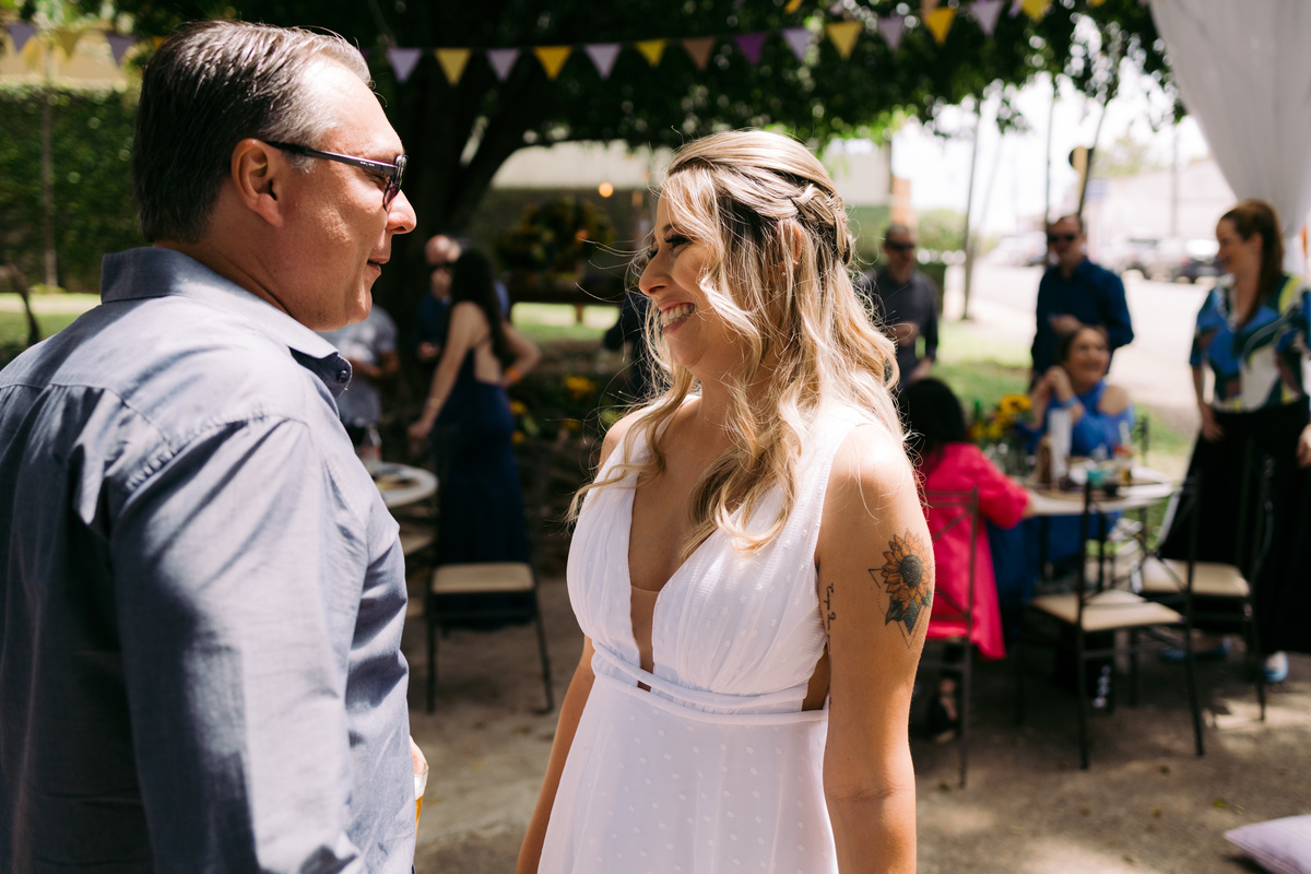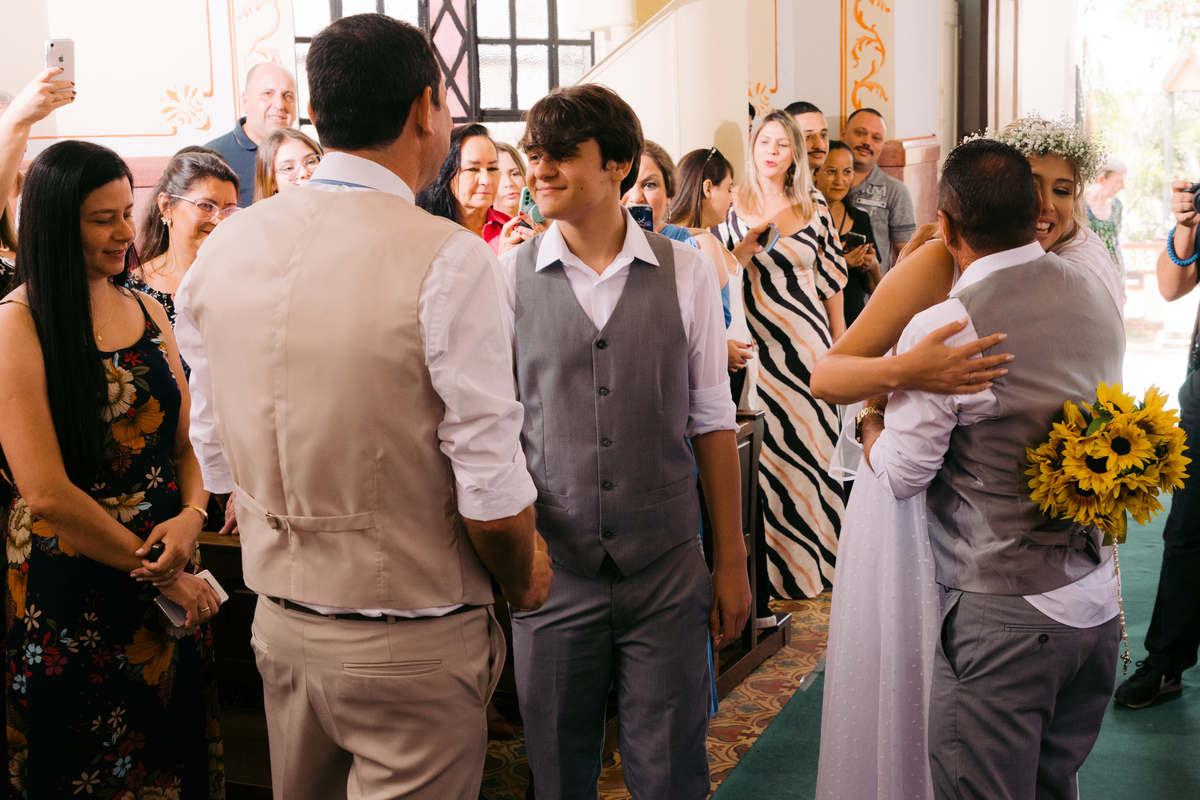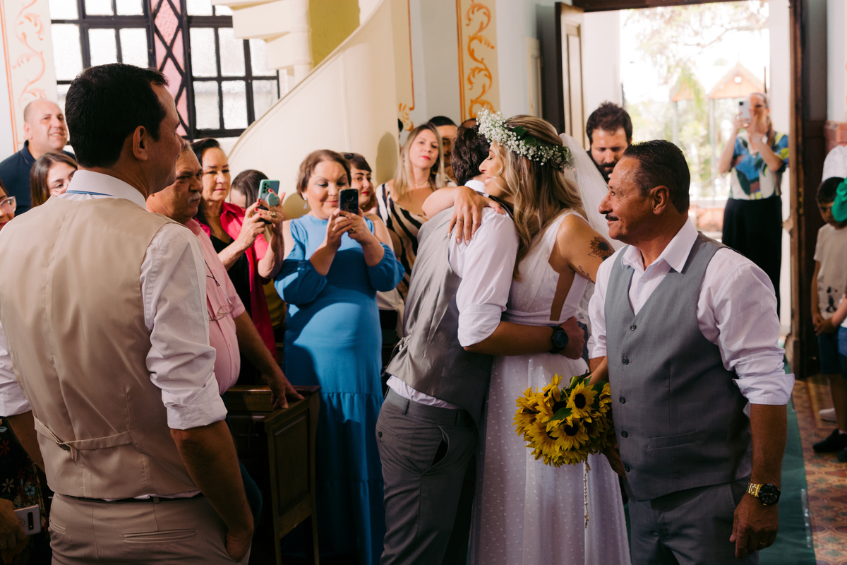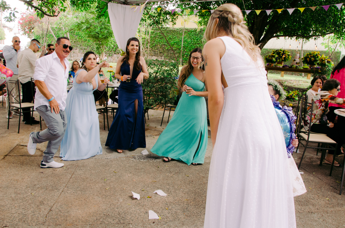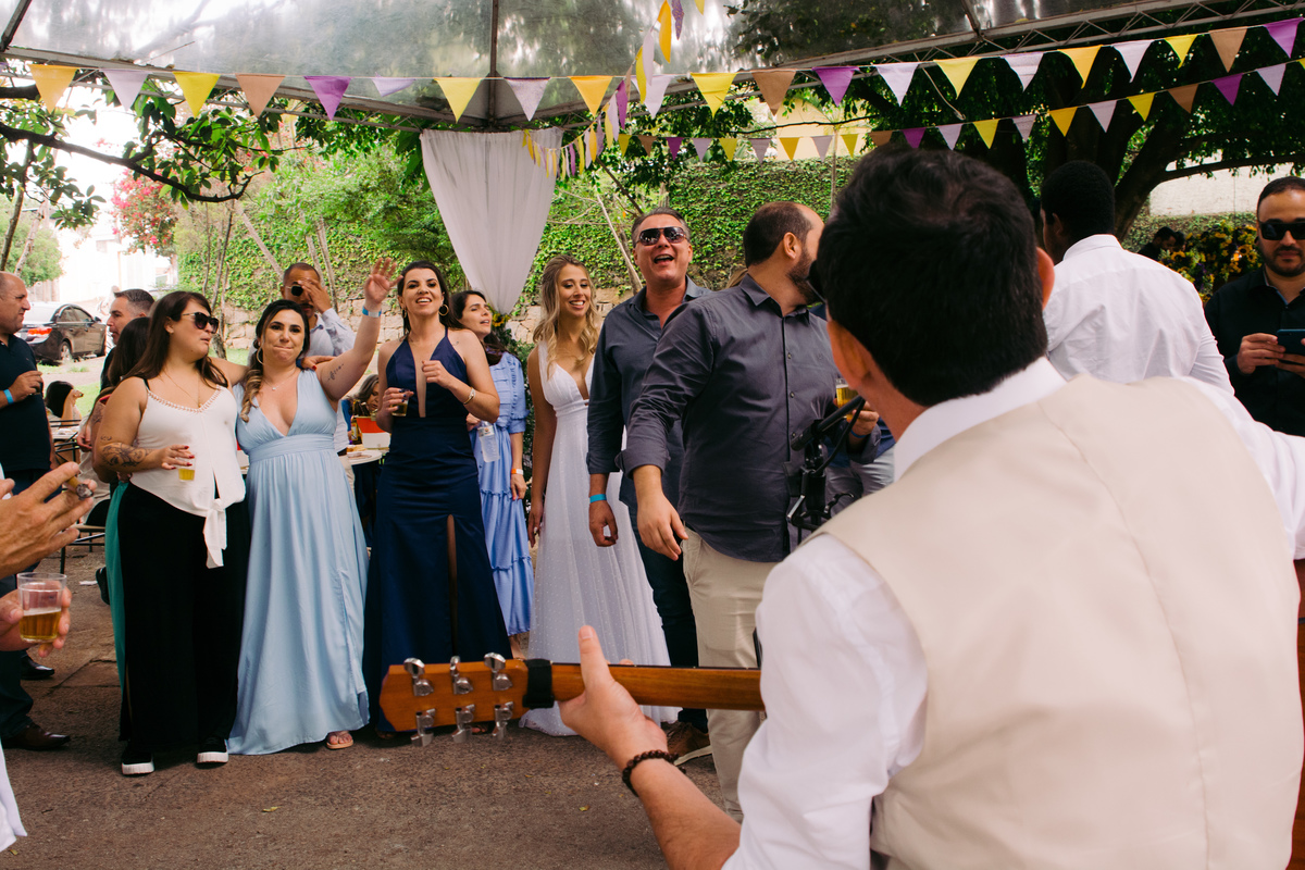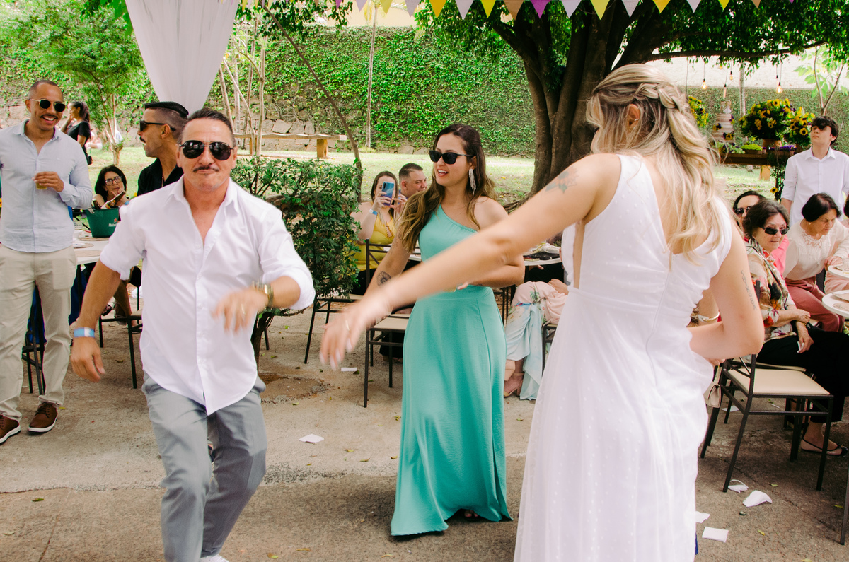 Então vem comigo ver esse, eles moram em Santa Catarina, mas o André é de Pinhal (vou chamar assim pois como me considero da cidade kkk, sempre se fala pinhal), eles tem um história com o Bar do Leco, um bar muito conhecido na cidade, e porque não fazer a festa na frente, lá na pracinha do bar, os noivos gostam de cerveja os amigos também, imagina se essa combinação não era perfeita, um dia ensolarado, um dia lindo.