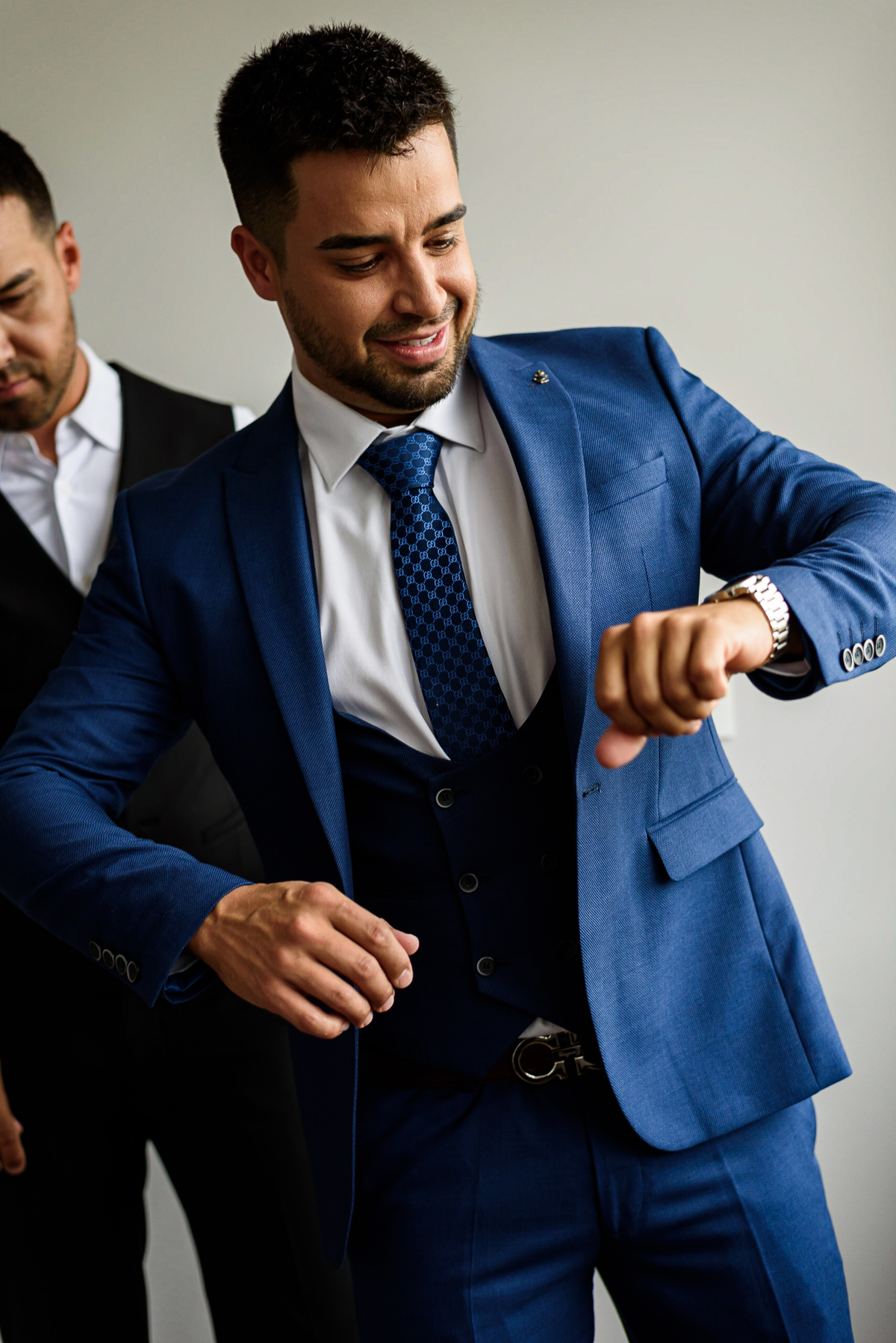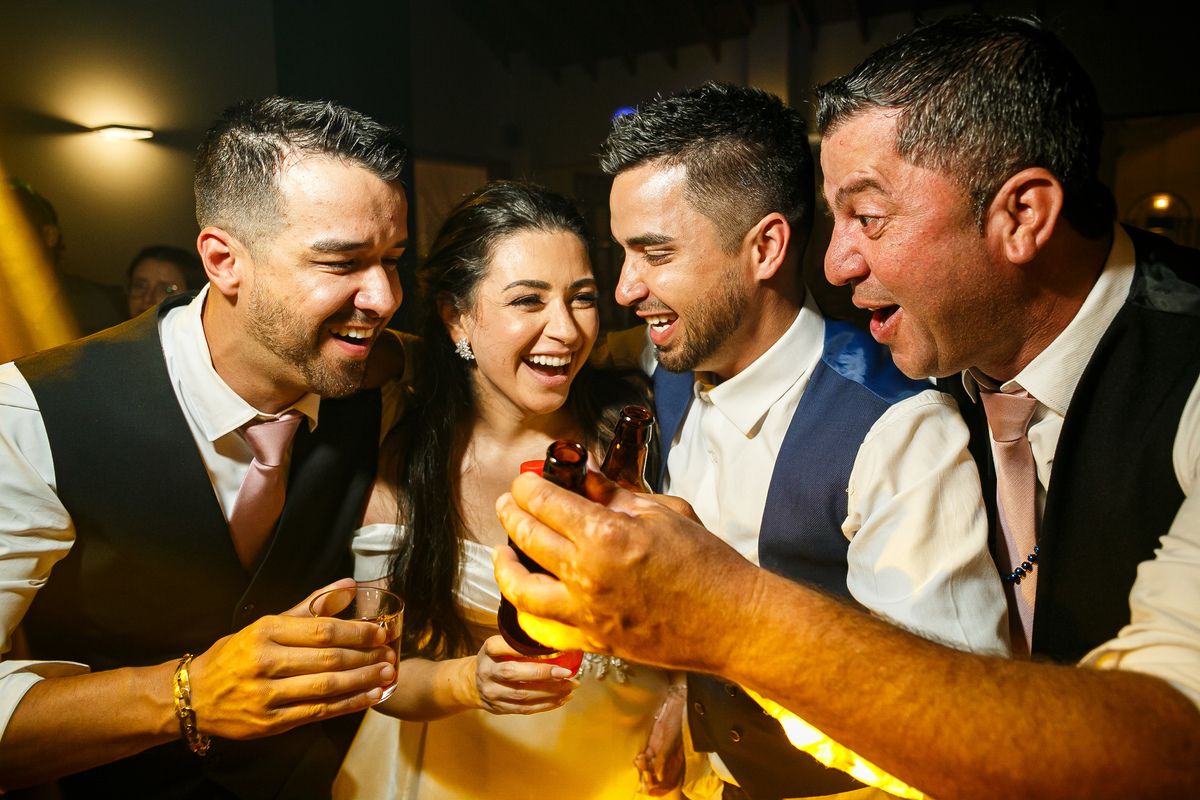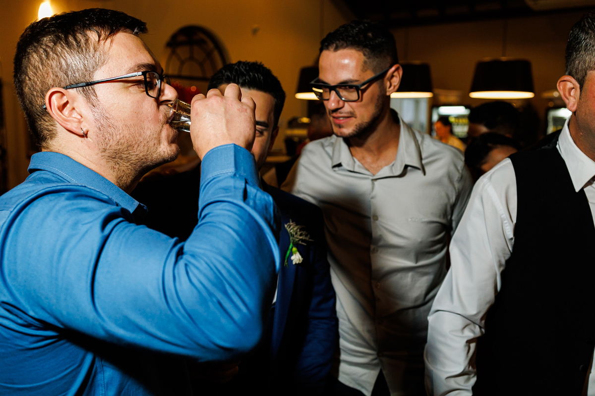 Meanwhile, in Carlos' getting ready, his brother and groomsmen accompanied him. The atmosphere was relaxed, and a toast with beer marked the beginning of the celebration. Everyone was ready to witness Mariana and Carlos' love.