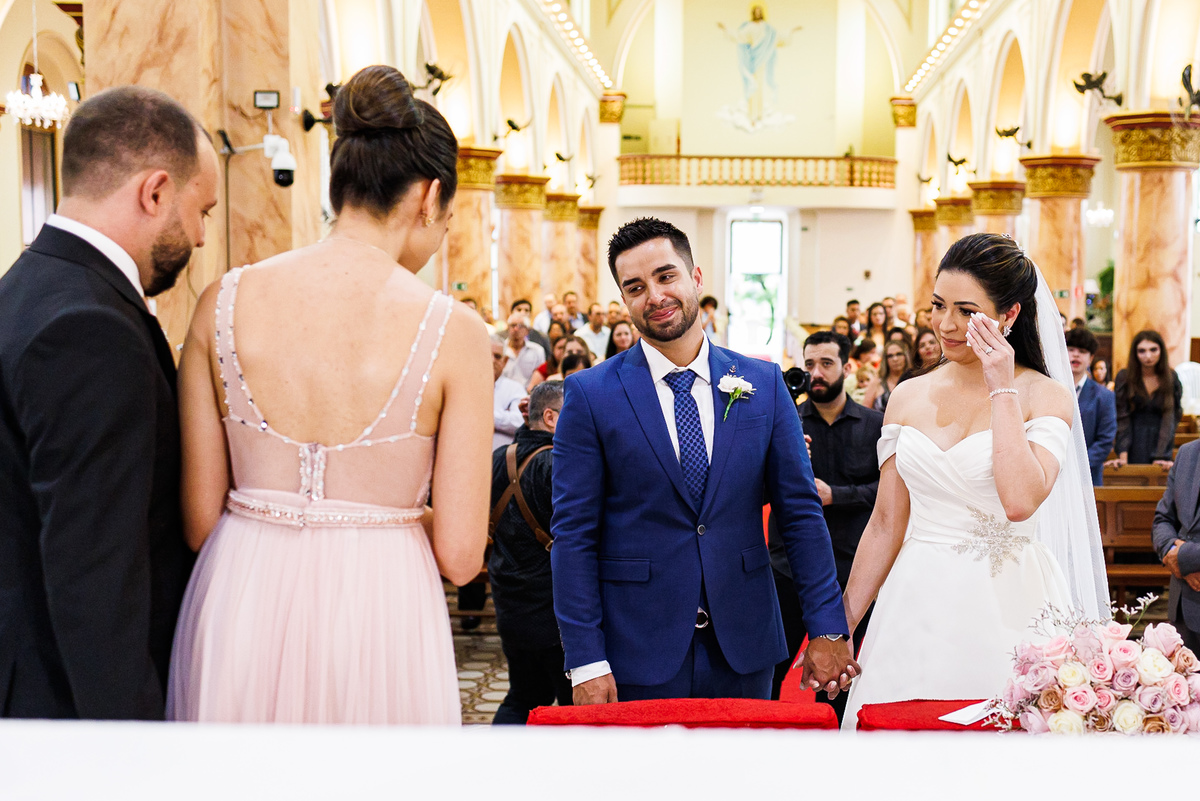 Na igreja, as emoções atingiram o auge. Carlos não conseguiu conter as lágrimas ao ver Mariana caminhando em sua direção. O momento era carregado de significado e beleza, marcando o início de uma nova jornada juntos.