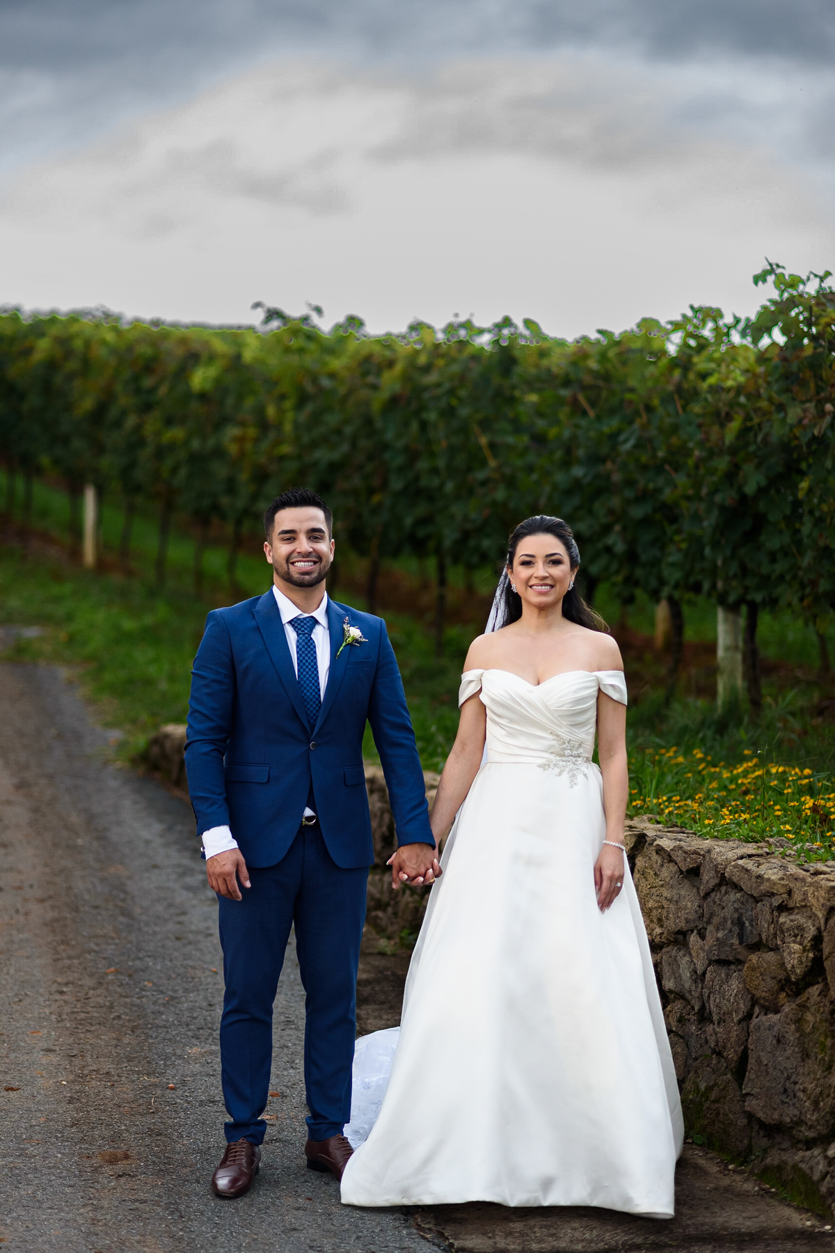 After the ceremony, everyone gathered to capture precious moments in photos. The church, with its imposing beauty, served as the perfect backdrop for these pictures. They then headed to the vineyards of Casa Geraldo for more photos, taking advantage of the stunning late afternoon light. The images captured there would certainly be treasures for the couple, reminding them of the magic of that day.