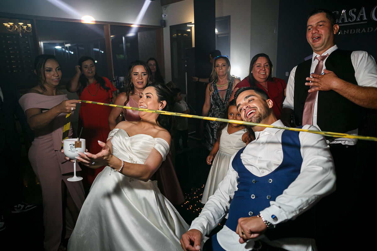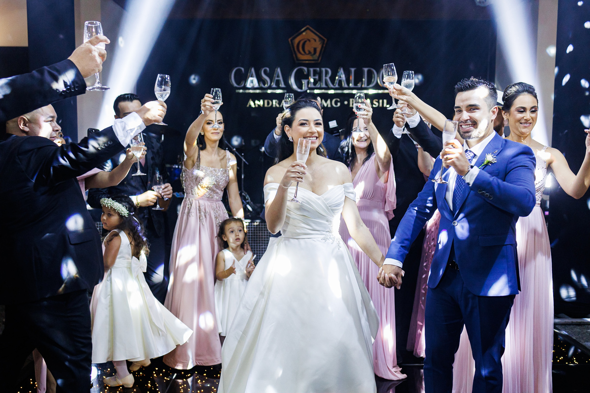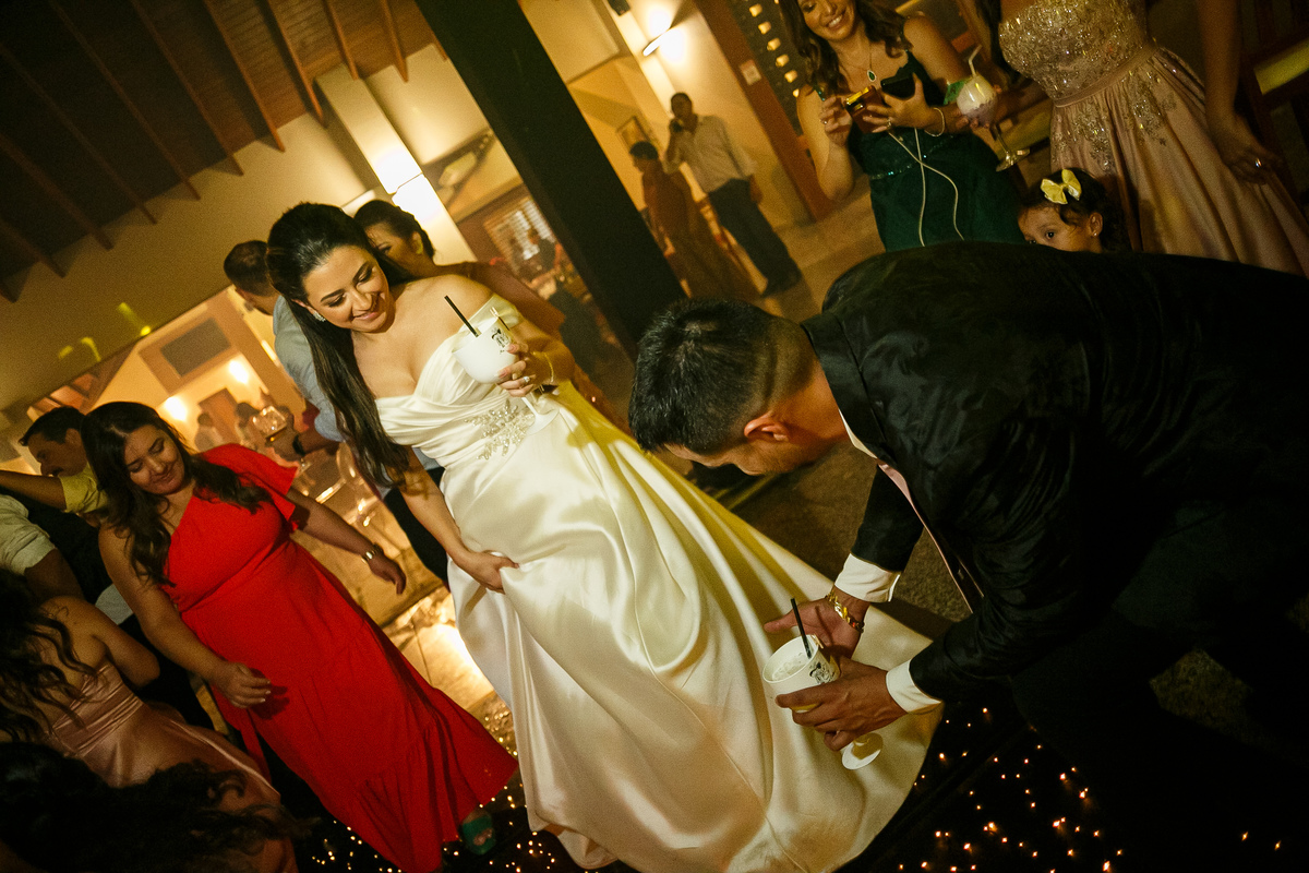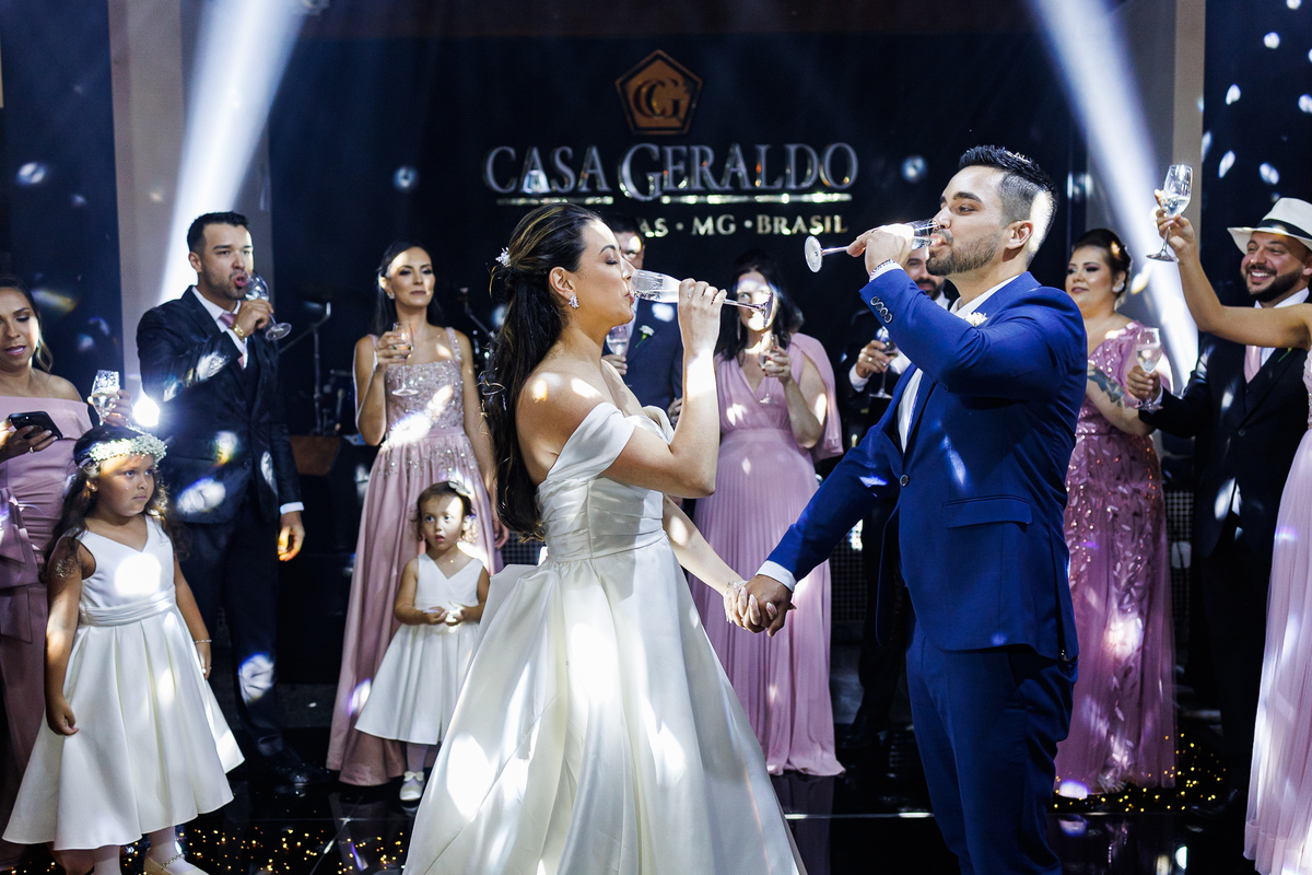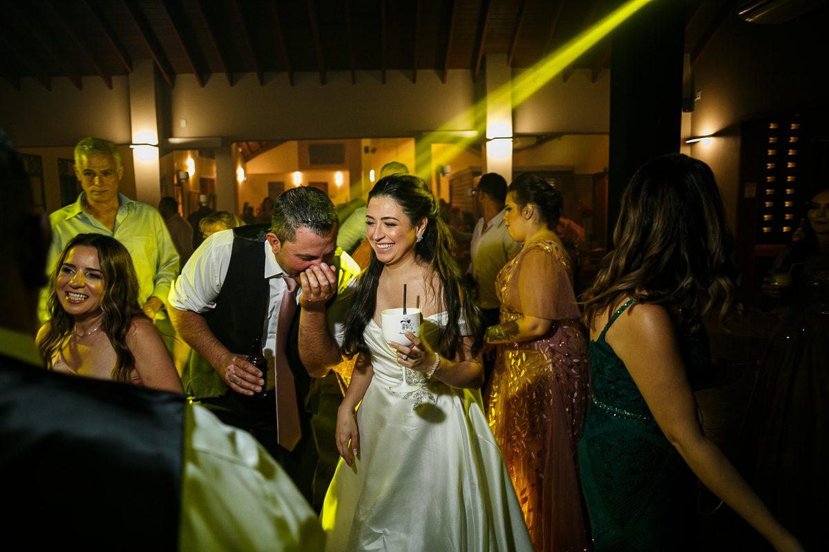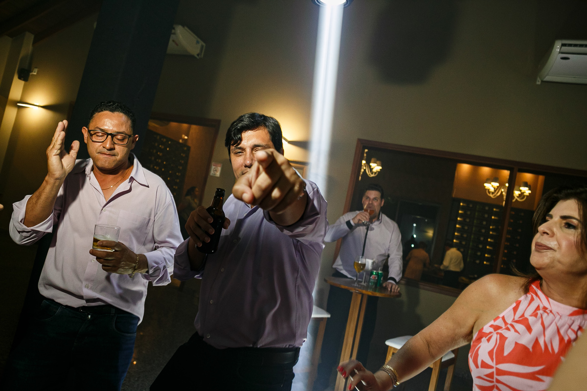 A festa foi o ponto alto da celebração, com uma energia contagiante e momentos de pura diversão. O irmão de Mariana surpreendeu a todos com uma apresentação musical emocionante, e logo depois a pista de dança se encheu de risos e movimento. Todos se entregaram à alegria do momento, celebrando o amor e a união de Mariana e Carlos de maneira inesquecível.