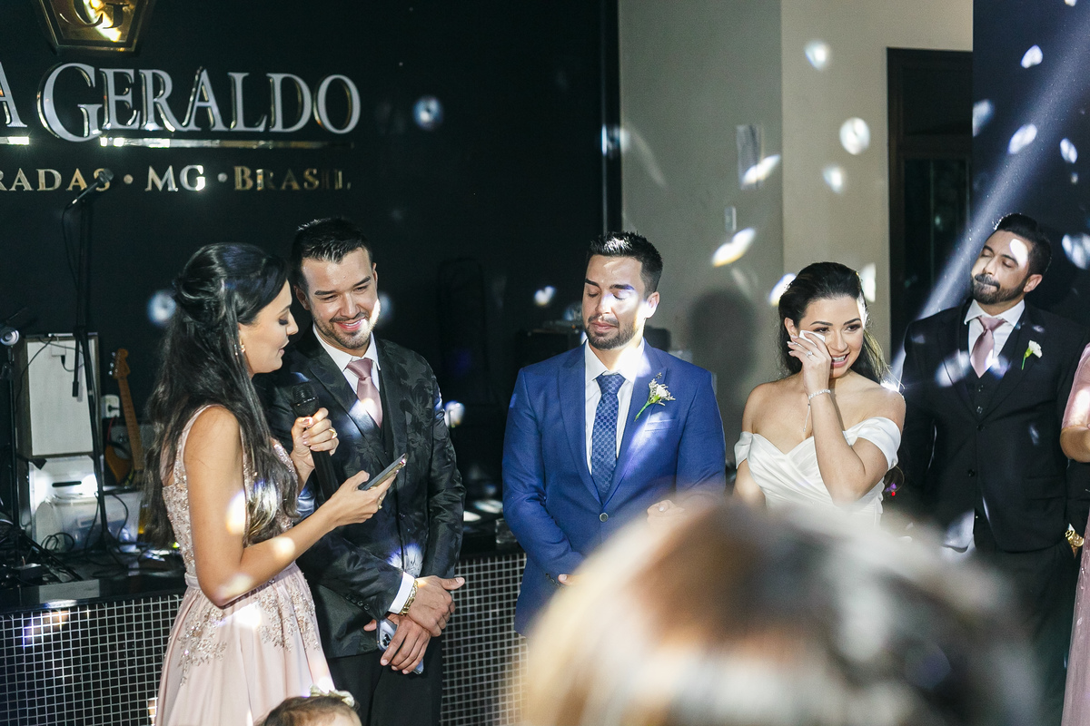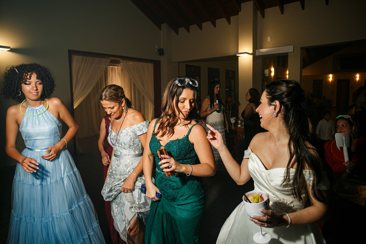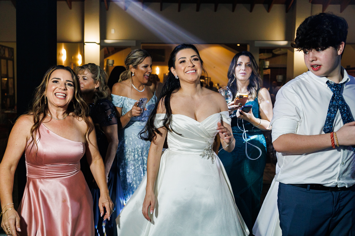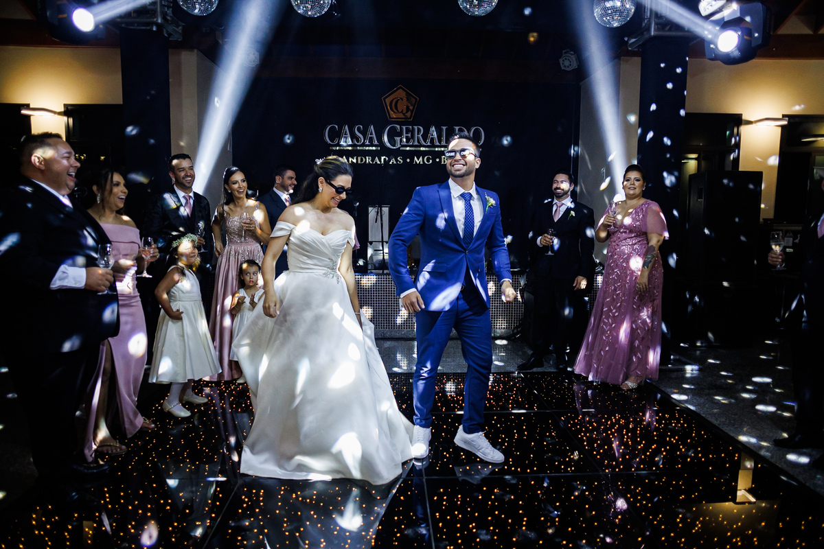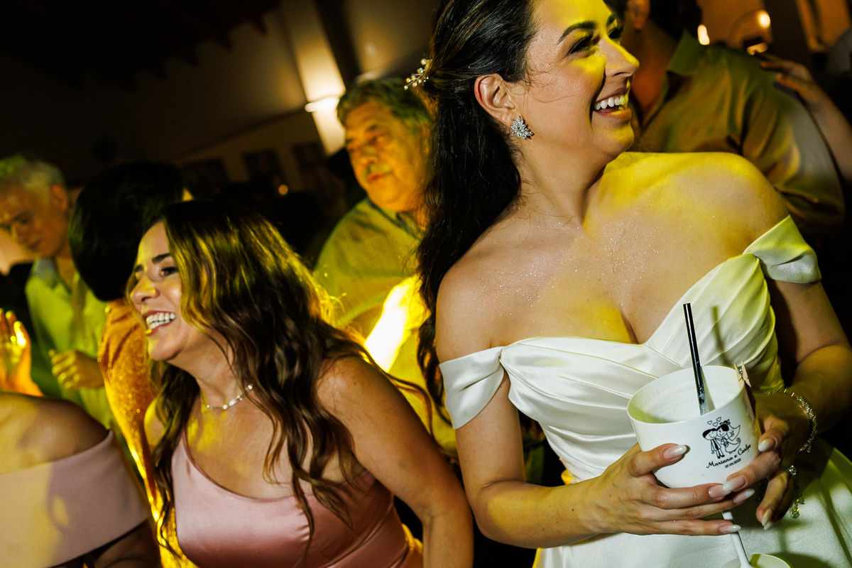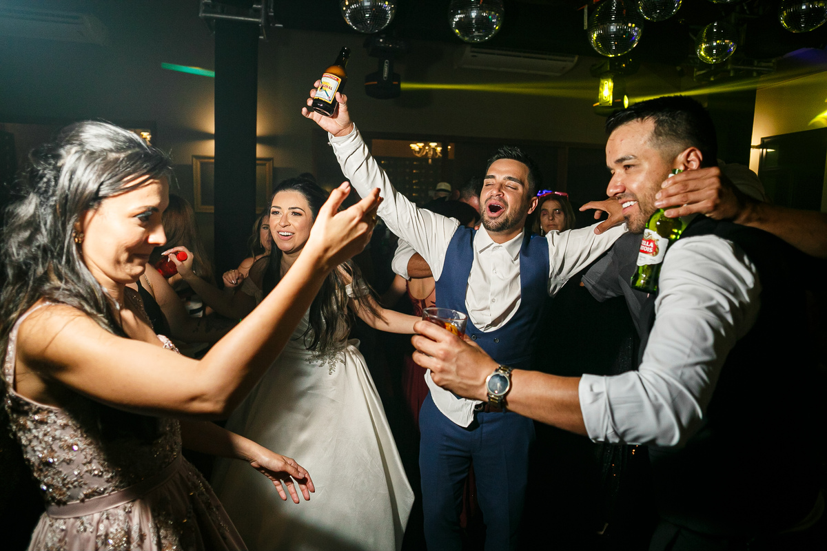 A festa foi o ponto alto da celebração, com uma energia contagiante e momentos de pura diversão. O irmão de Mariana surpreendeu a todos com uma apresentação musical emocionante, e logo depois a pista de dança se encheu de risos e movimento. Todos se entregaram à alegria do momento, celebrando o amor e a união de Mariana e Carlos de maneira inesquecível.