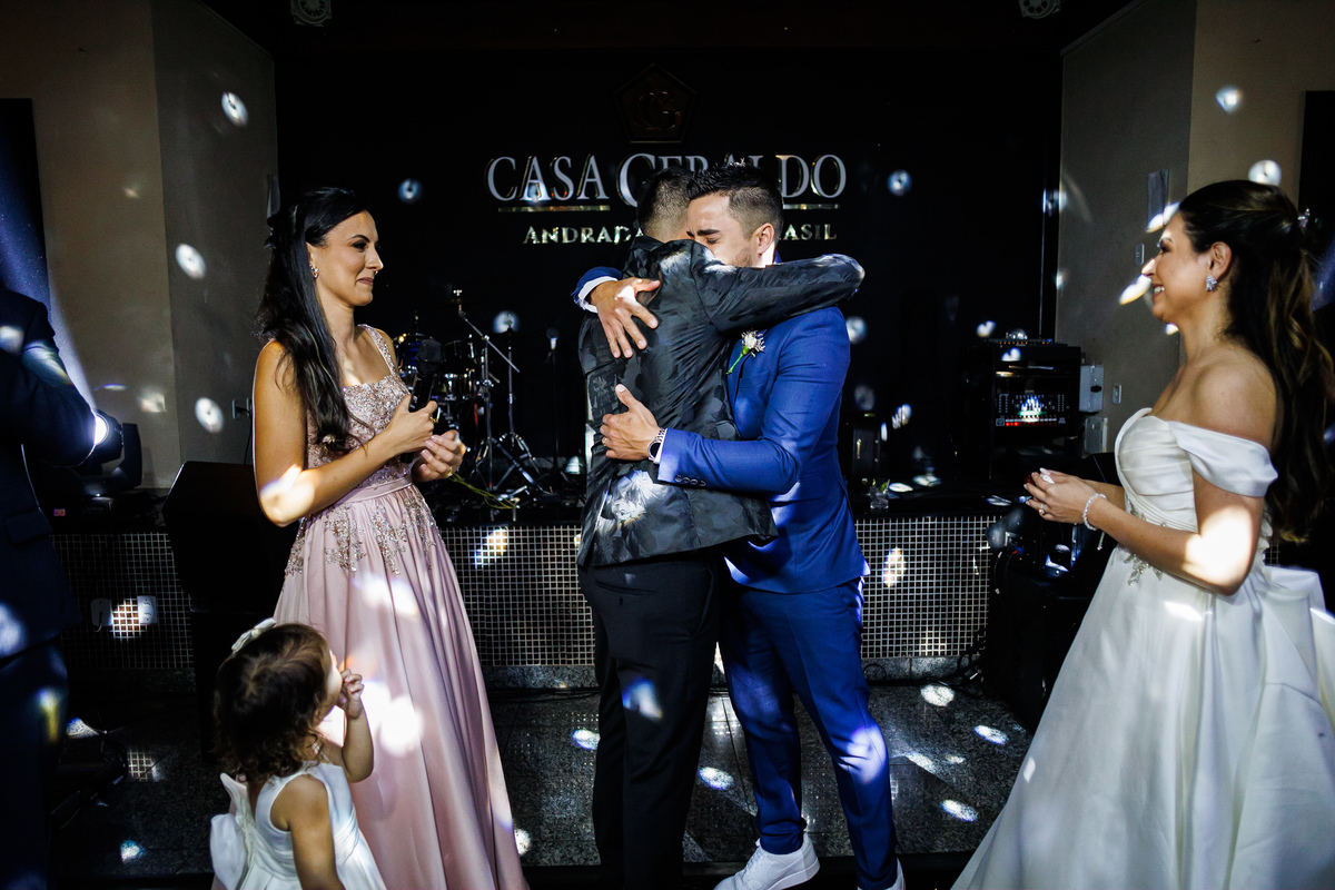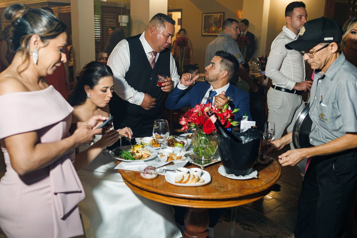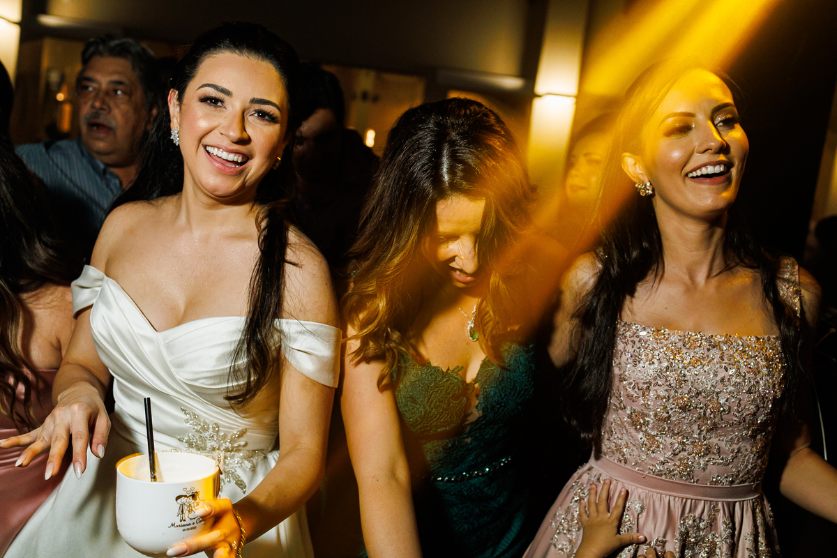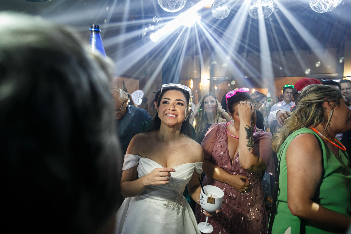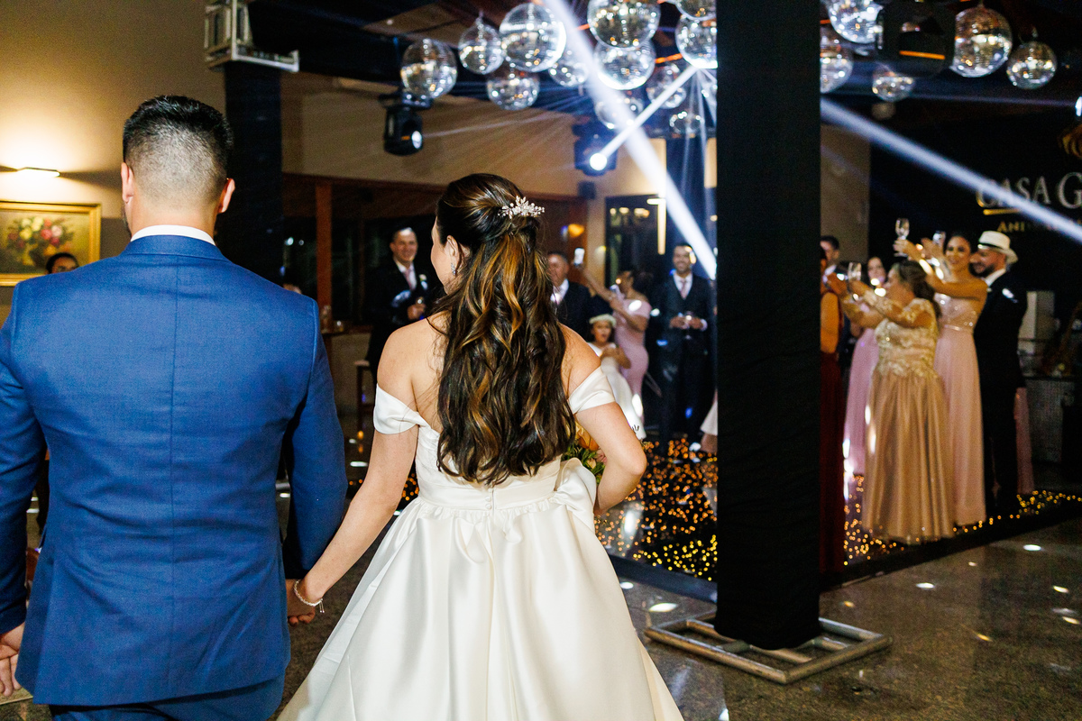 A festa foi o ponto alto da celebração, com uma energia contagiante e momentos de pura diversão. O irmão de Mariana surpreendeu a todos com uma apresentação musical emocionante, e logo depois a pista de dança se encheu de risos e movimento. Todos se entregaram à alegria do momento, celebrando o amor e a união de Mariana e Carlos de maneira inesquecível.
