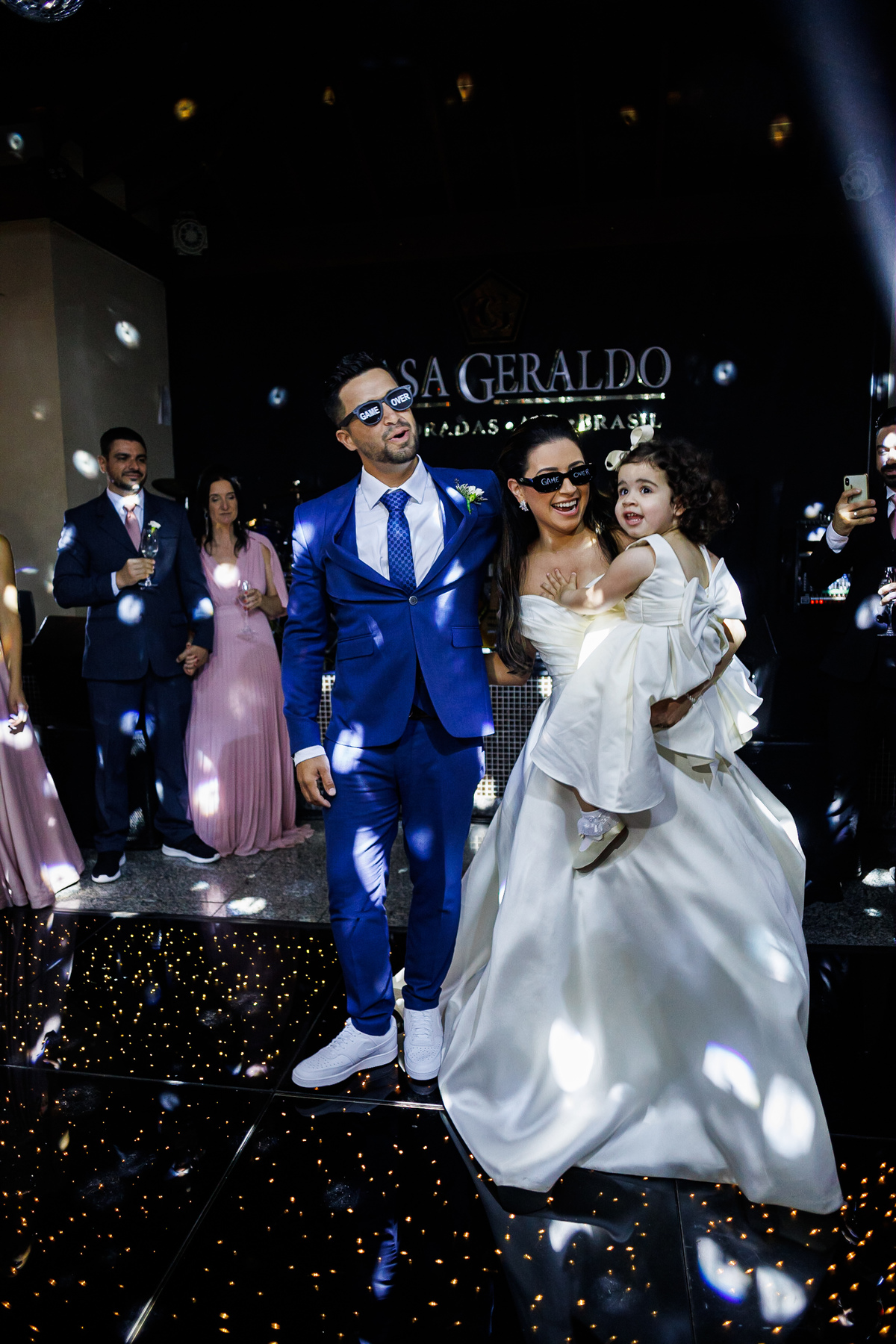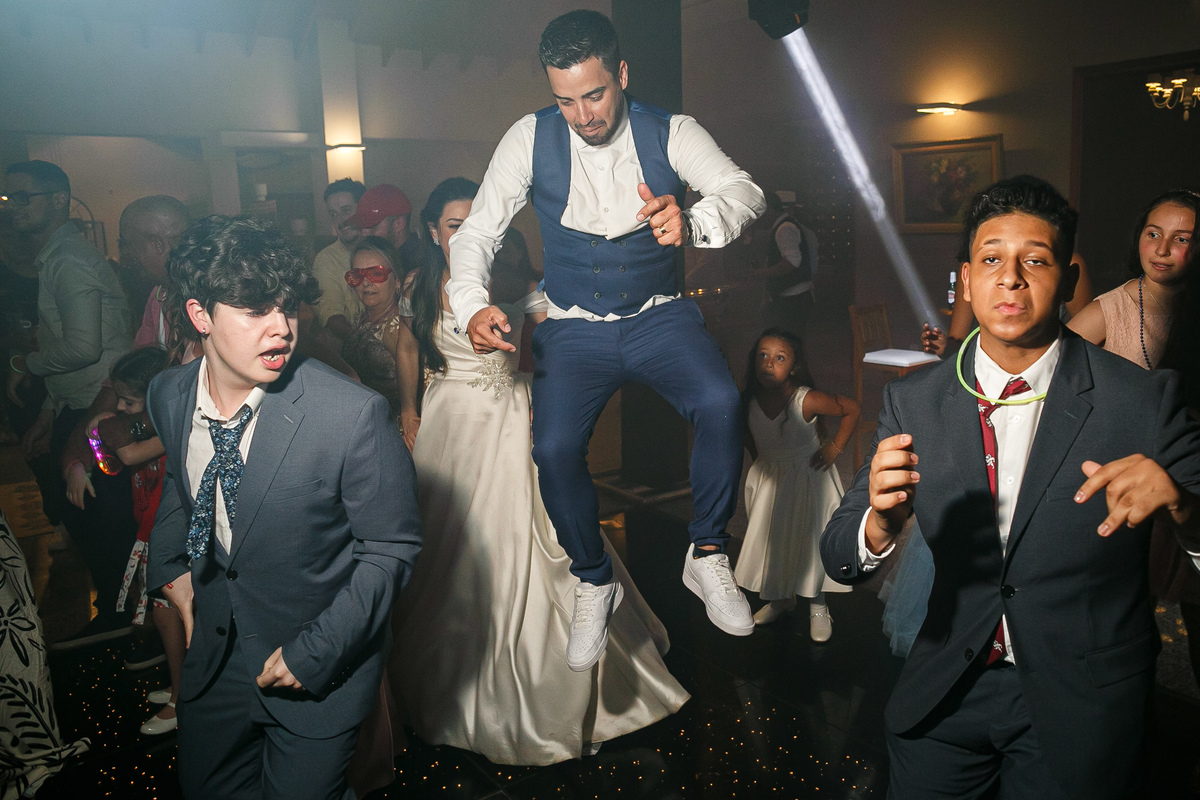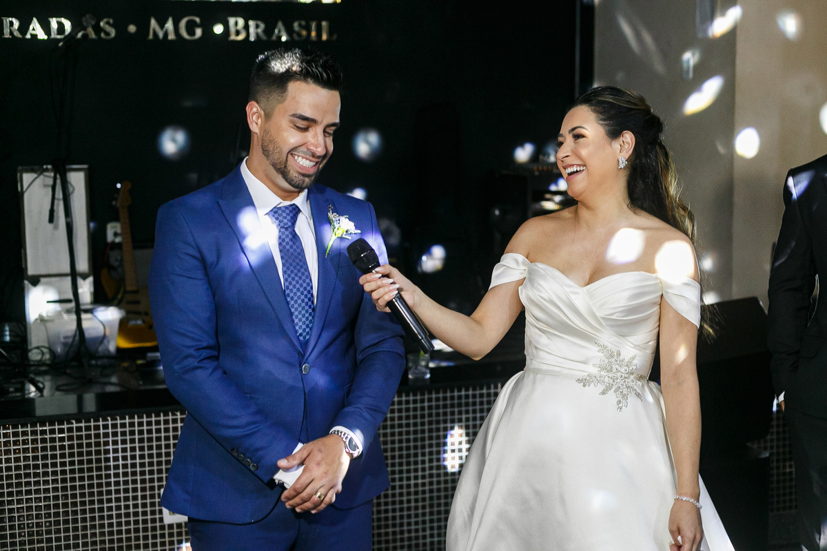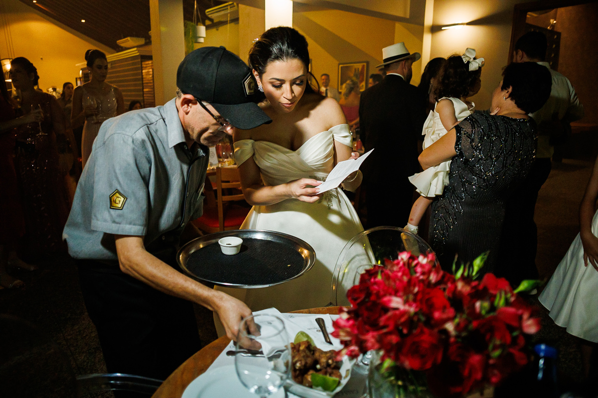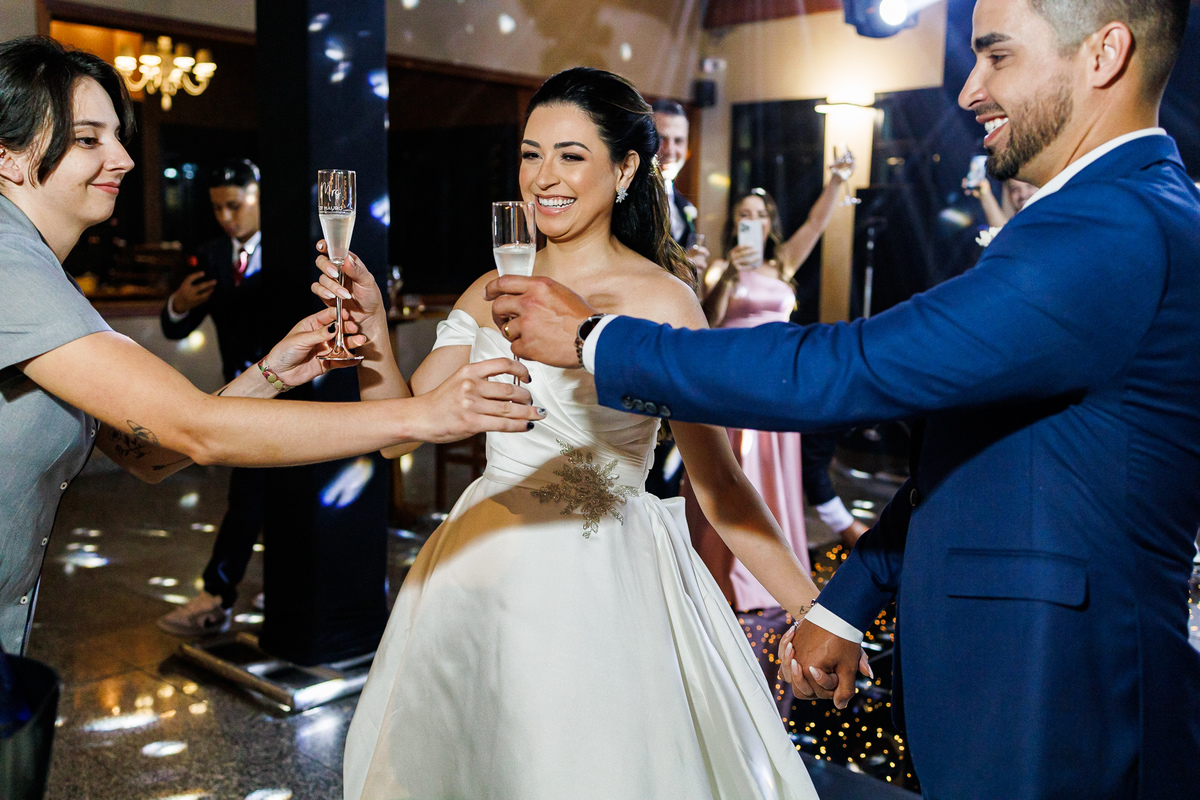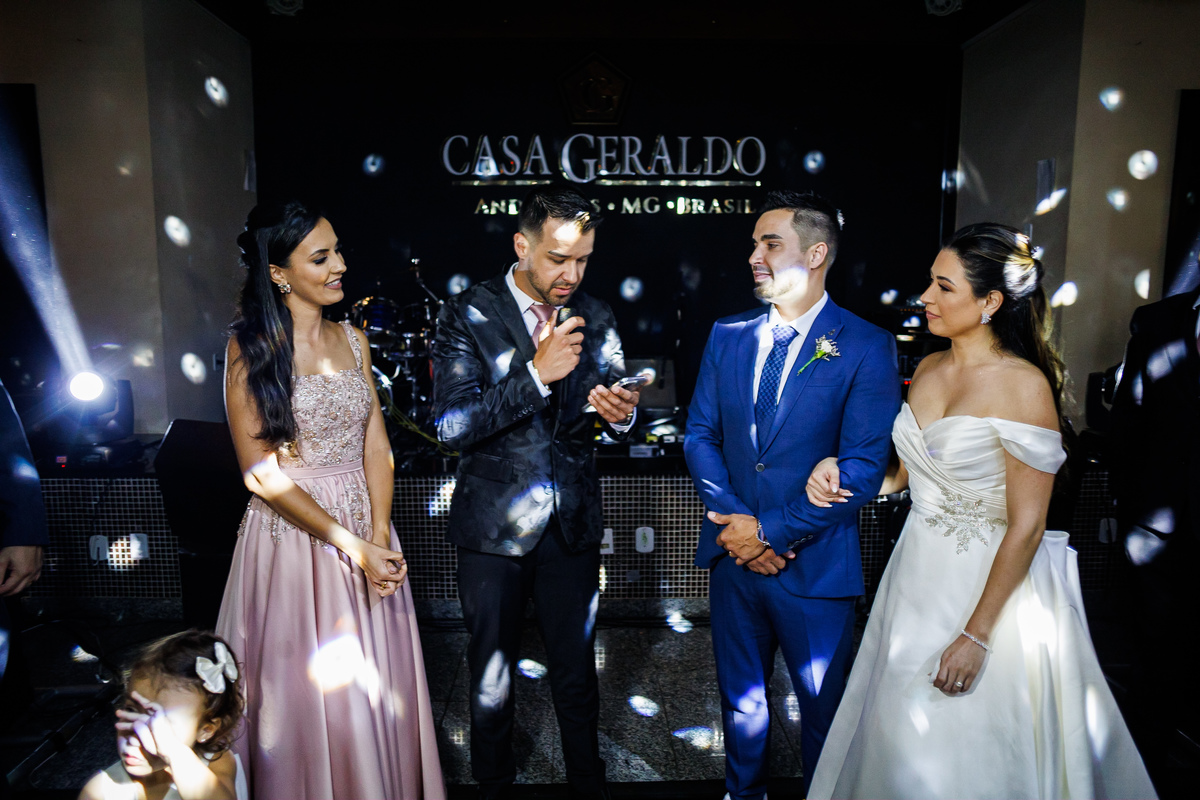 A festa foi o ponto alto da celebração, com uma energia contagiante e momentos de pura diversão. O irmão de Mariana surpreendeu a todos com uma apresentação musical emocionante, e logo depois a pista de dança se encheu de risos e movimento. Todos se entregaram à alegria do momento, celebrando o amor e a união de Mariana e Carlos de maneira inesquecível.