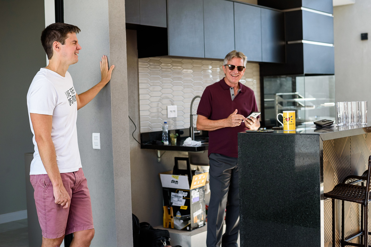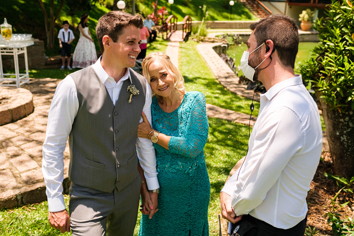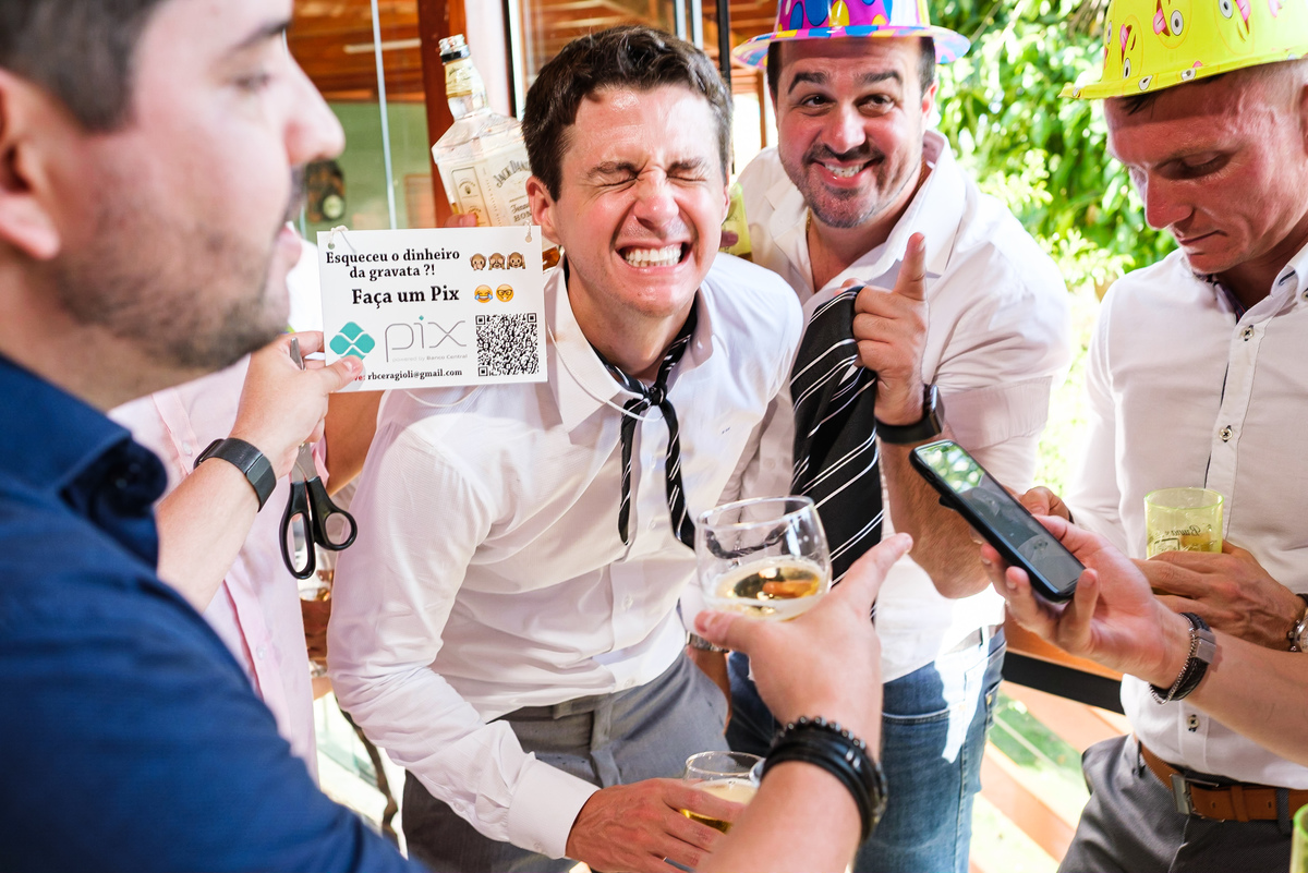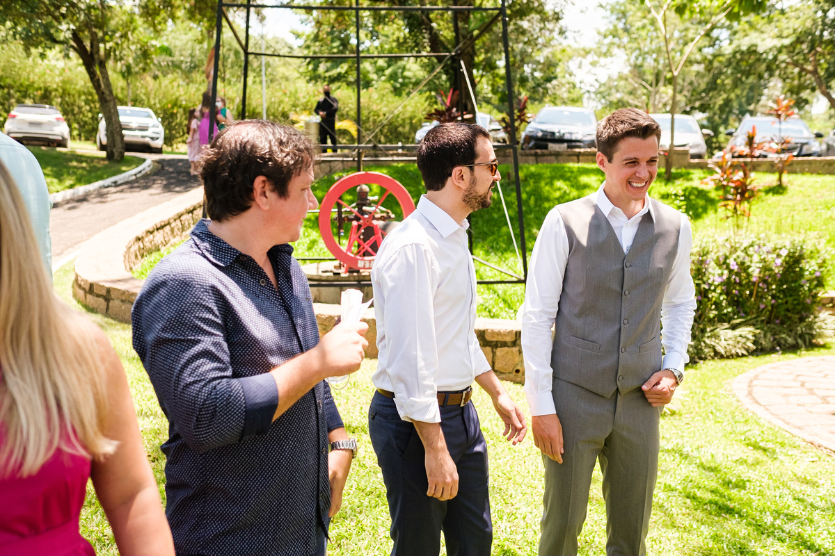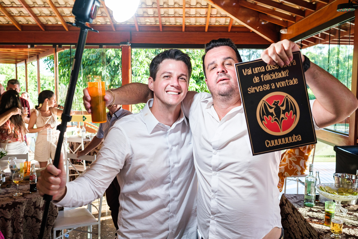 Enquanto isso, Rodrigo estava no seu próprio preparo, cercado por seus padrinhos, seu irmão e o pai de Bruna. Juntos, compartilharam histórias, brindaram à amizade e celebraram a chegada desse grande dia.