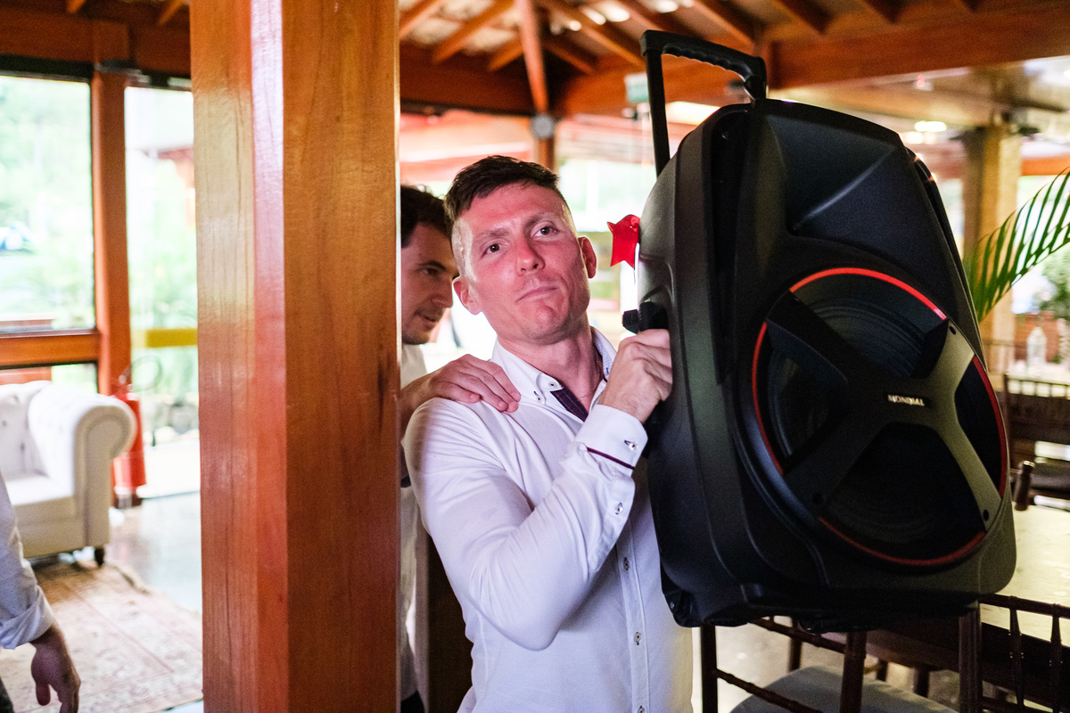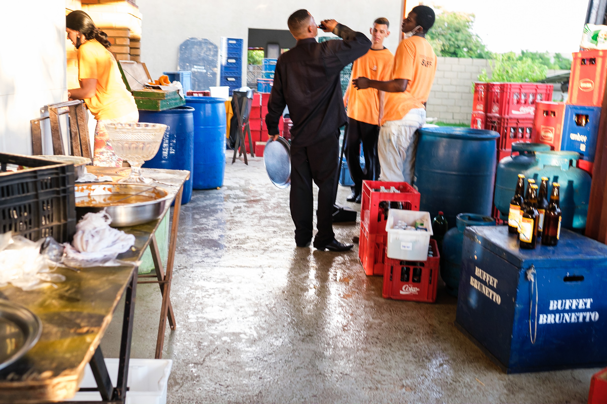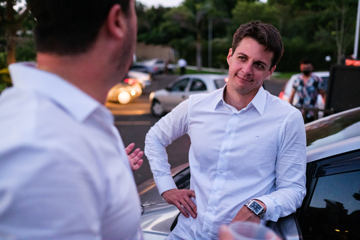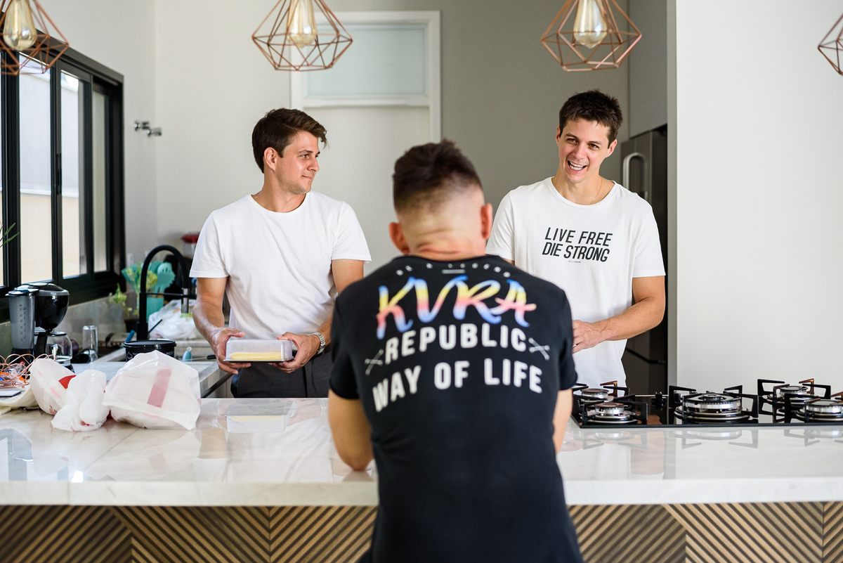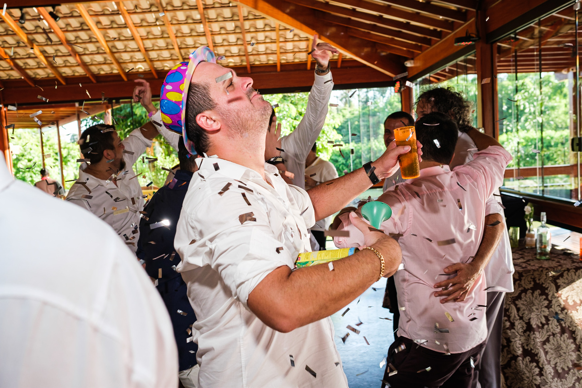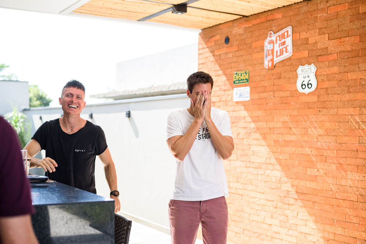 Enquanto isso, Rodrigo estava no seu próprio preparo, cercado por seus padrinhos, seu irmão e o pai de Bruna. Juntos, compartilharam histórias, brindaram à amizade e celebraram a chegada desse grande dia.