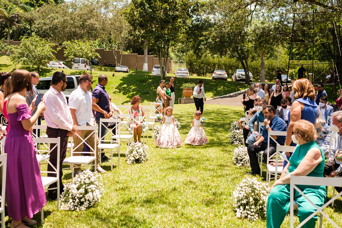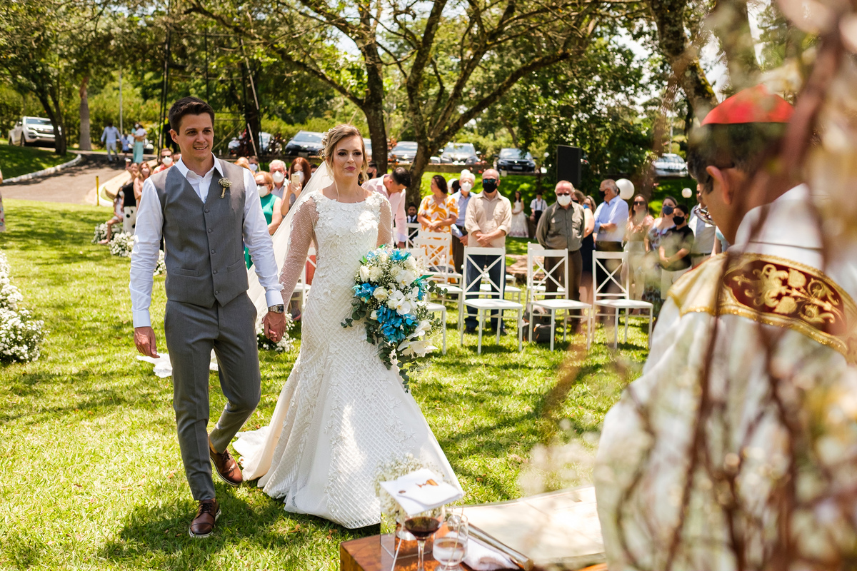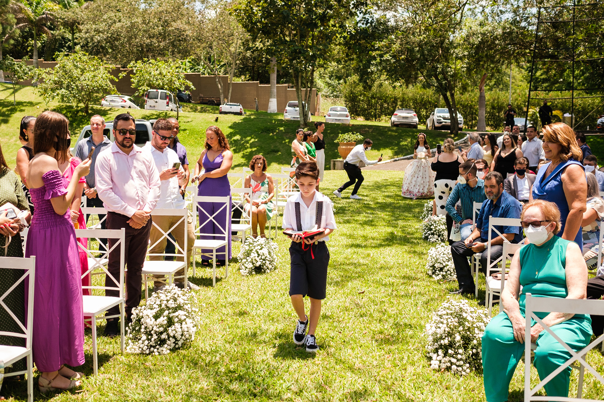 A cerimônia, conduzida pelo Dom Pedro, foi repleta de significado e emoção. Sob um arco de flores, Bruna caminhou até o altar ao lado de seu pai, no troller que representava não apenas uma chegada triunfal, mas também o início de uma nova jornada ao lado de Rodrigo.