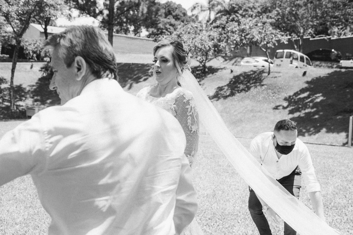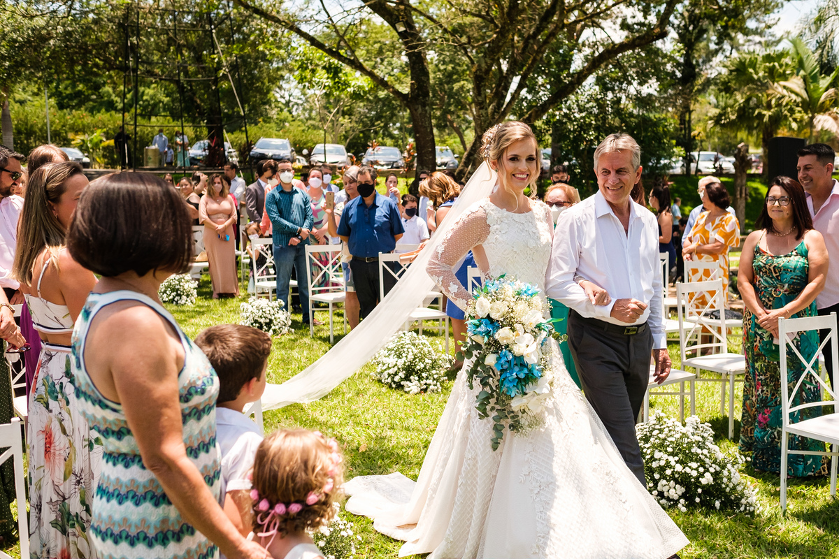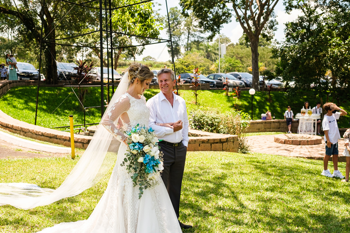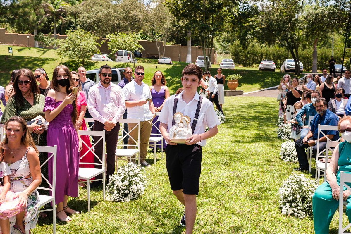 A cerimônia, conduzida pelo Dom Pedro, foi repleta de significado e emoção. Sob um arco de flores, Bruna caminhou até o altar ao lado de seu pai, no troller que representava não apenas uma chegada triunfal, mas também o início de uma nova jornada ao lado de Rodrigo.
