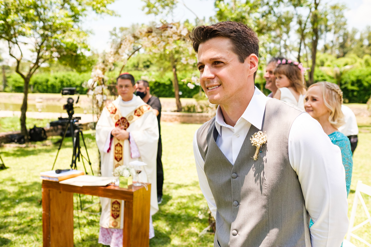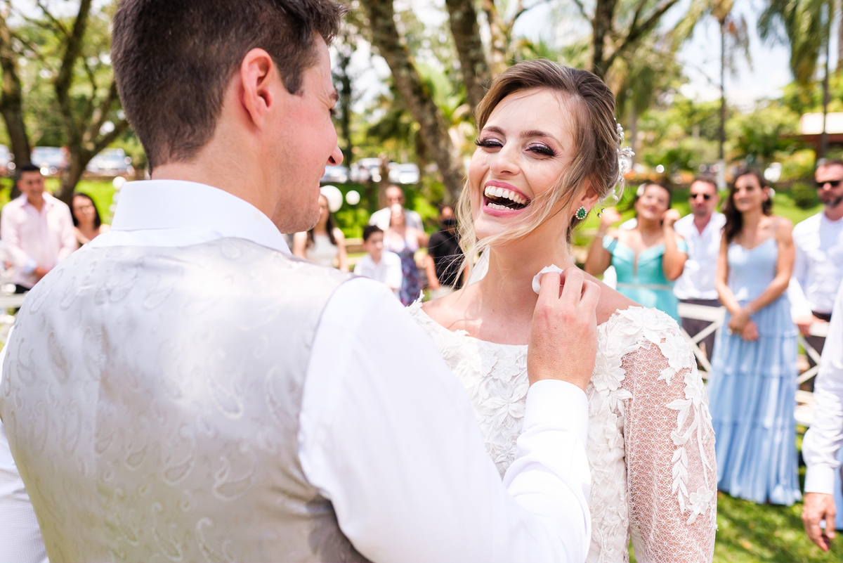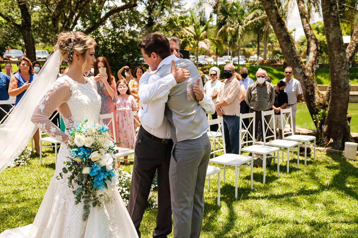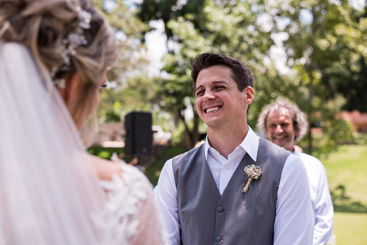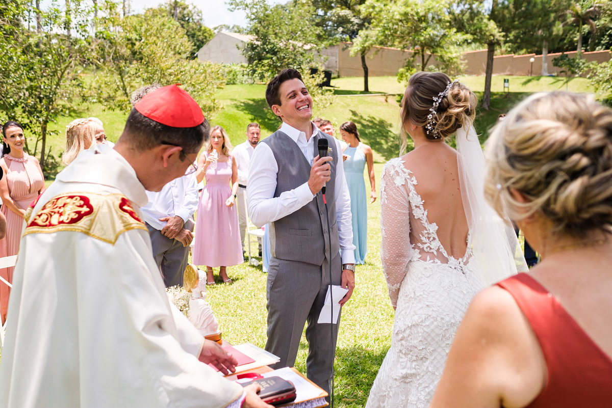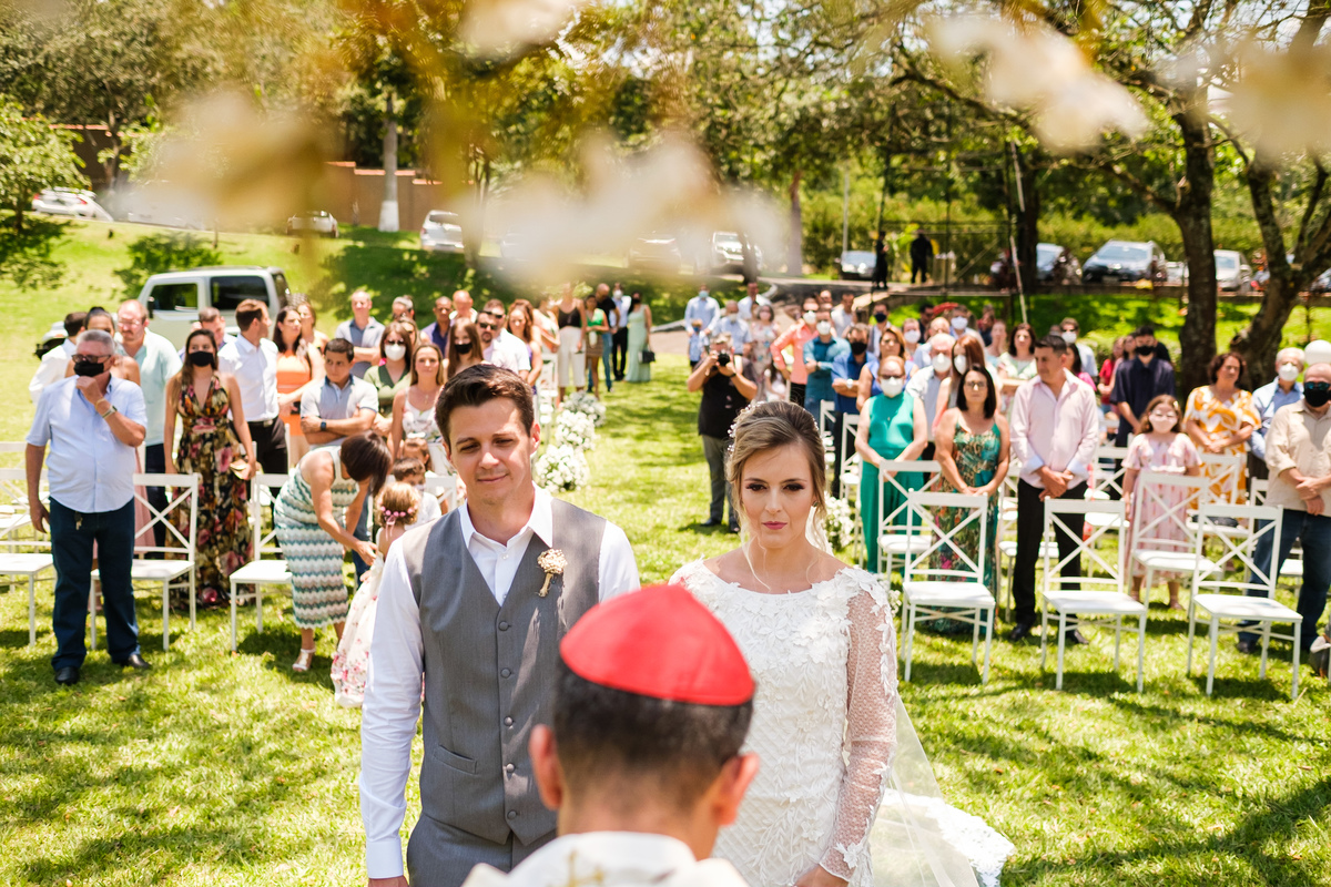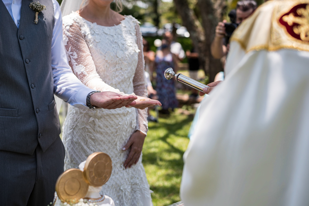 Os votos trocados entre o casal foram comoventes, repletos de promessas de amor, respeito e cumplicidade. E quando o Dom Pedro os declarou marido e mulher, um sentimento de alegria contagiante envolveu a todos os presentes.