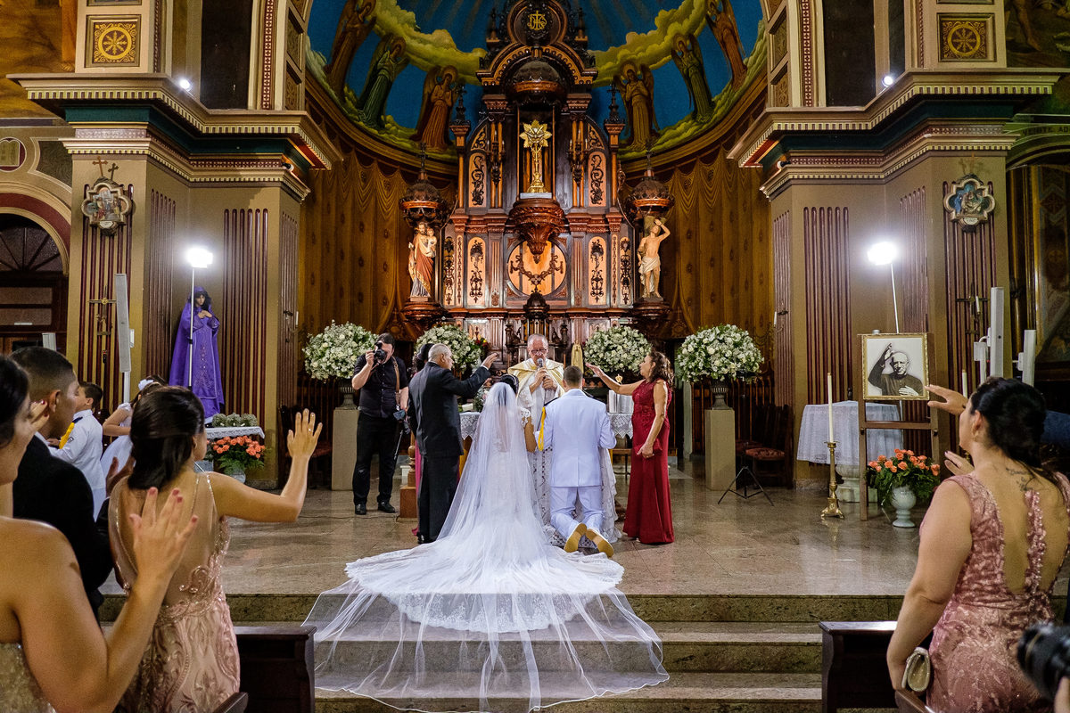 A cerimônia foi na linda matriz de Pinhal, com o Monsenhor fazendo aquela pregação, que foi lindo demais.