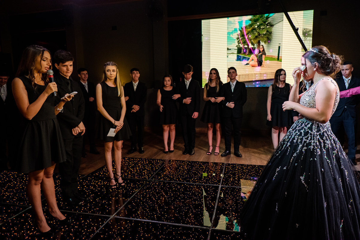 Um 15 anos que foi muito lindo com homenagens, dança, foi incrível!!!