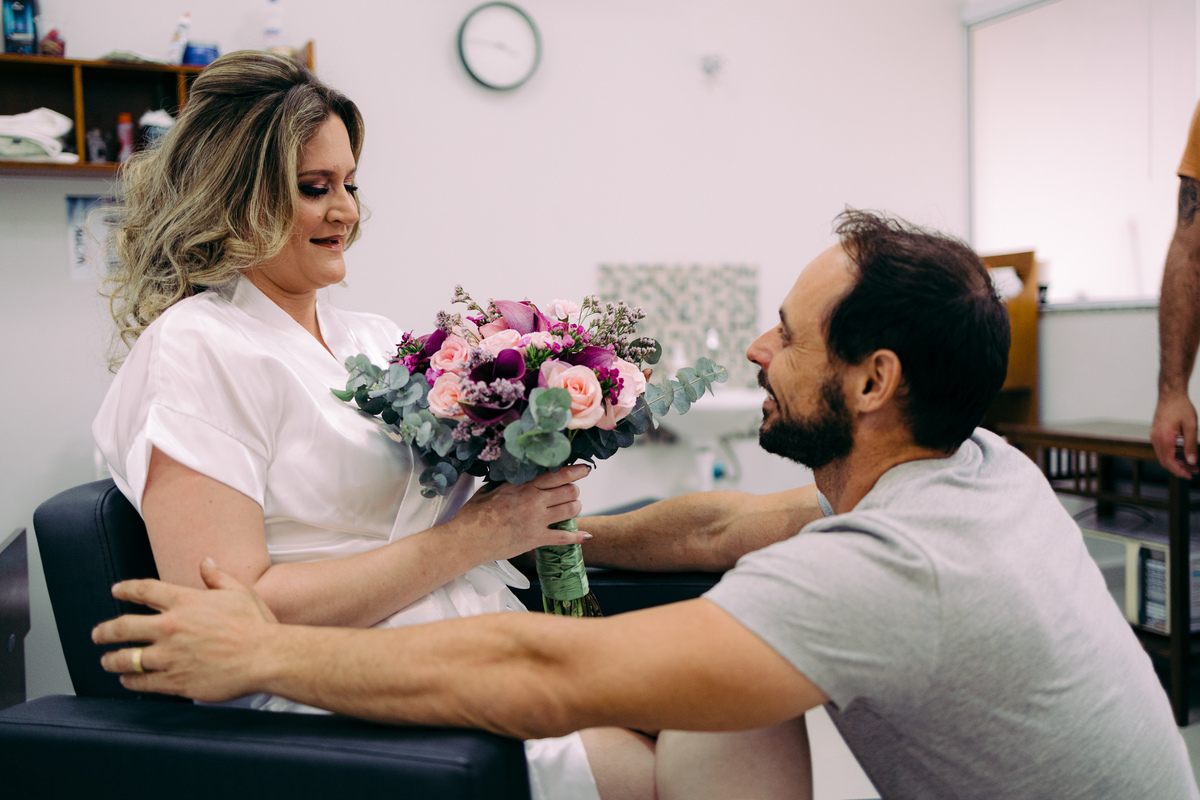 O dia não começou como o esperado, sonhado para o dia, era para ser cerimônia ao ar livre, mas veio a chuva e teve que mudar o plano em cima da hora, teve que ser no plano B, teve que ser "dentro" a cerimonia, mas isso não tirou a alegria do dia, o animo, a felicidade de todos, no começo no Making a Pâmela ficou um pouco triste, mas quem não ficaria né?!