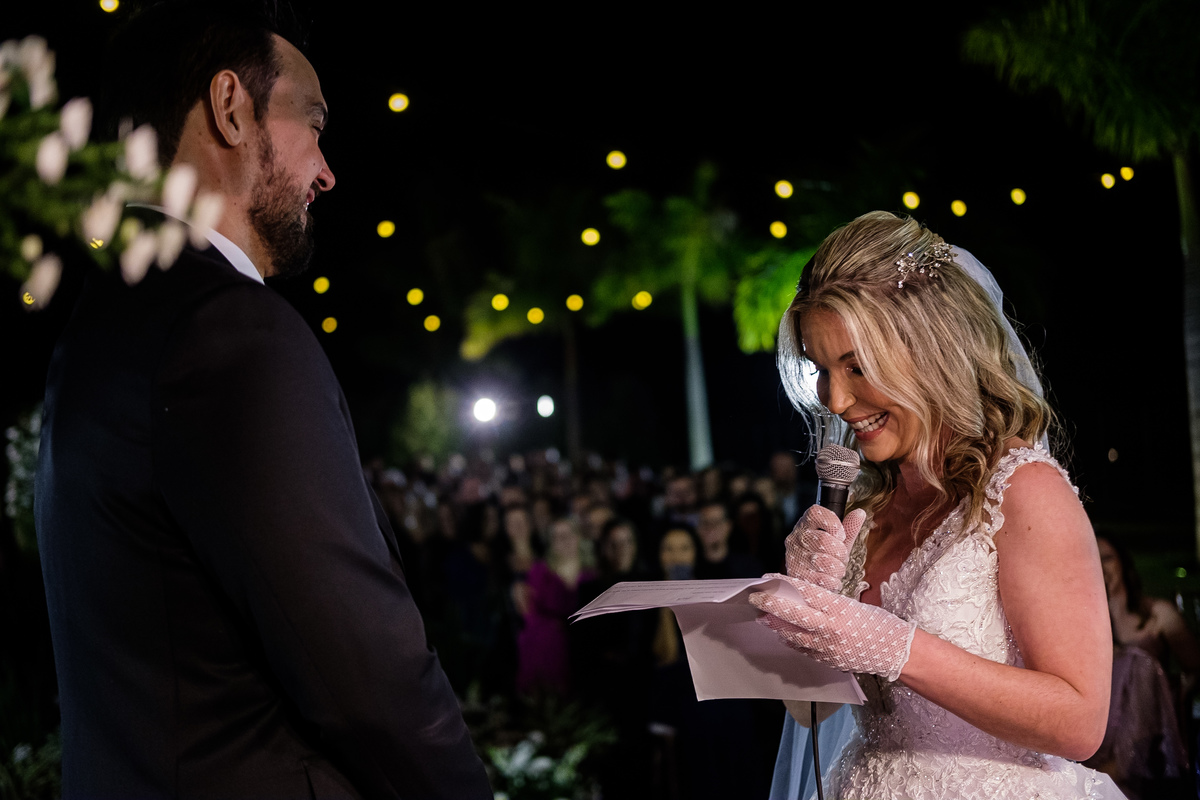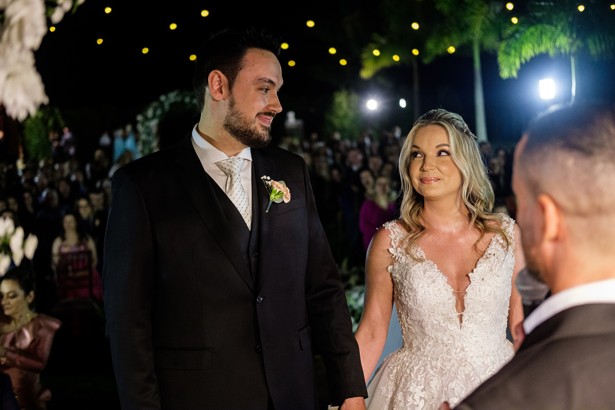 A cerimonia foi simplesmente linda demais, encantadora, e os votos deles foi lindo, contando um pouco da história deles.