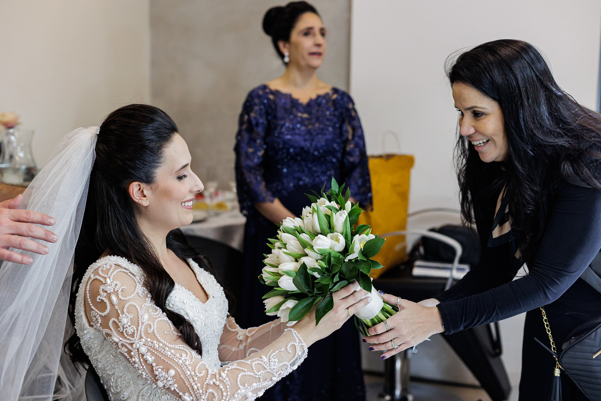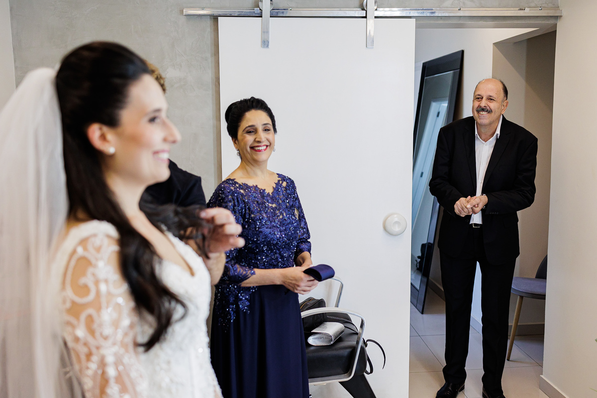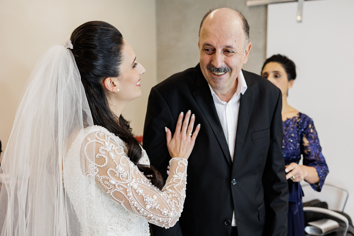 Teve toda a emoção do meu Pai ao chegar e ver a Graziela pronta, o olho dele encheu de lágrima, como foi bonito ver.