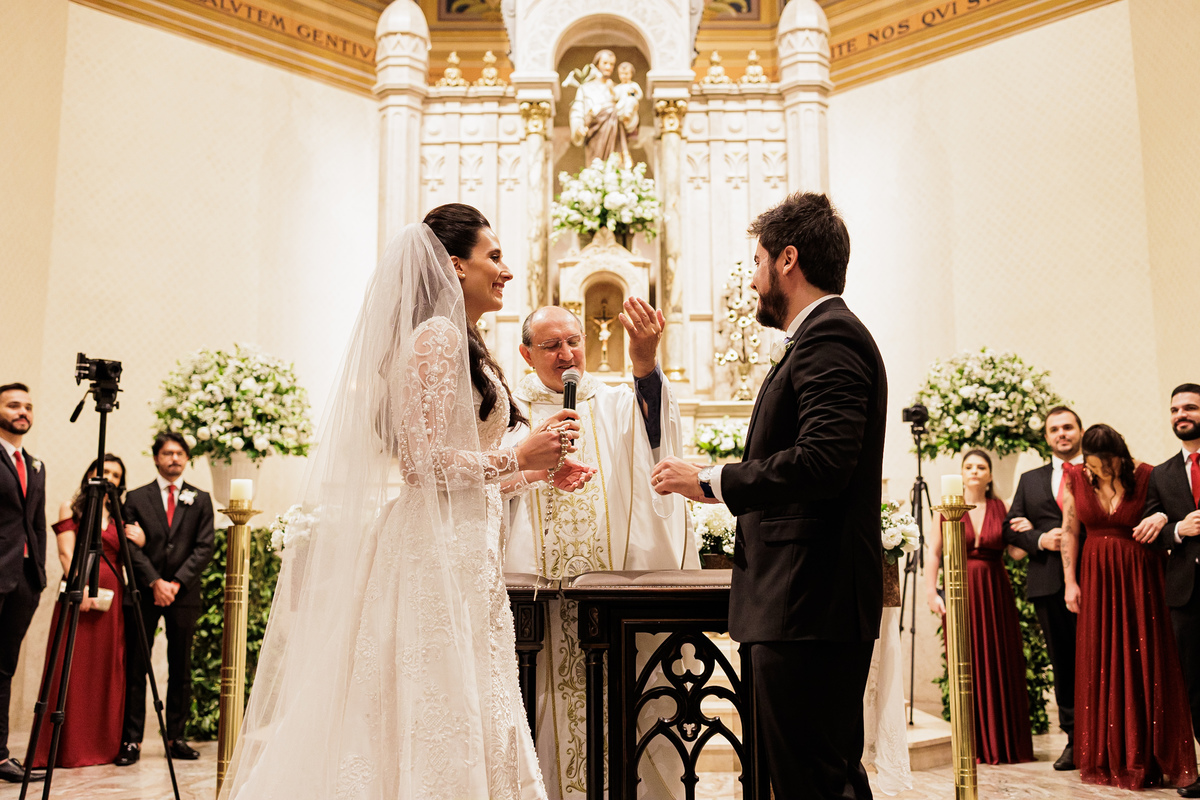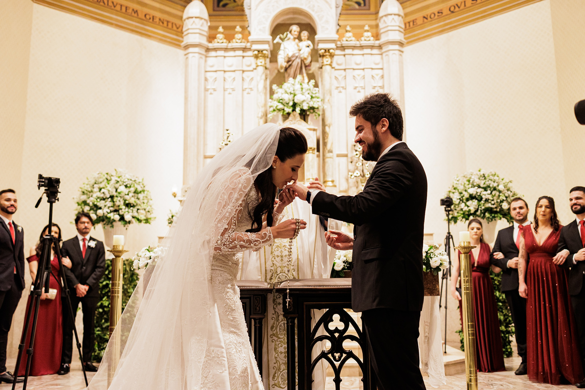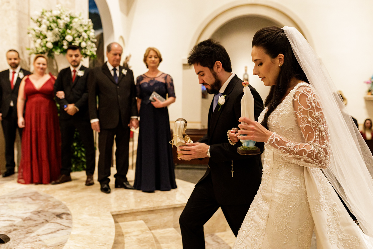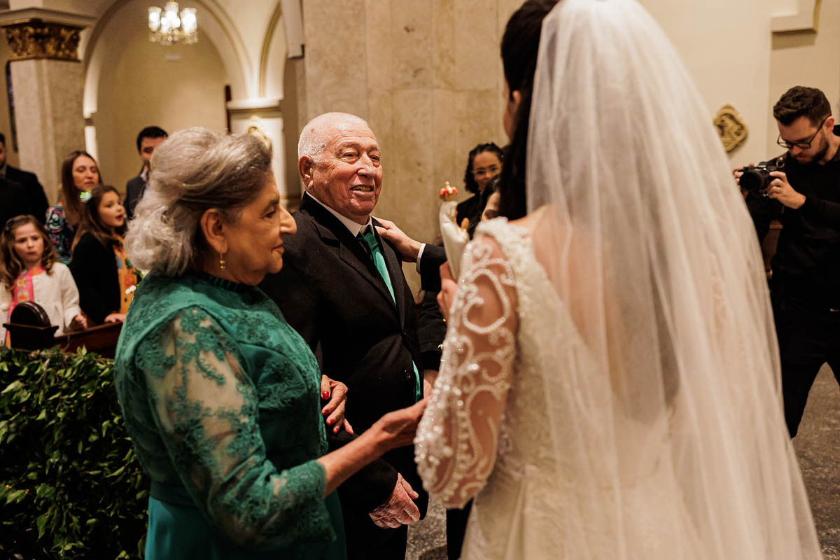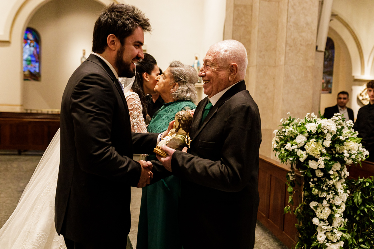 Na cerimônia, foi tudo lindo, perfeito, e ter visto nosso Vô Carlos junto com a Vó Manira entrar levando as imagens, aliança, para eles, foi simplesmente demais, essa hora eu chorei, chorei de emoção de ver o "Carlão" entrando isso com 91 anos de idade, entrou uma belezinha.