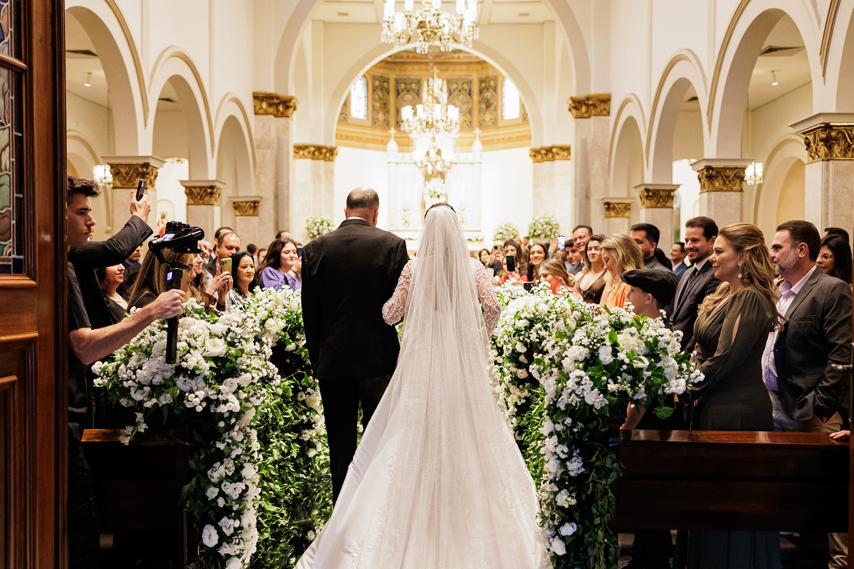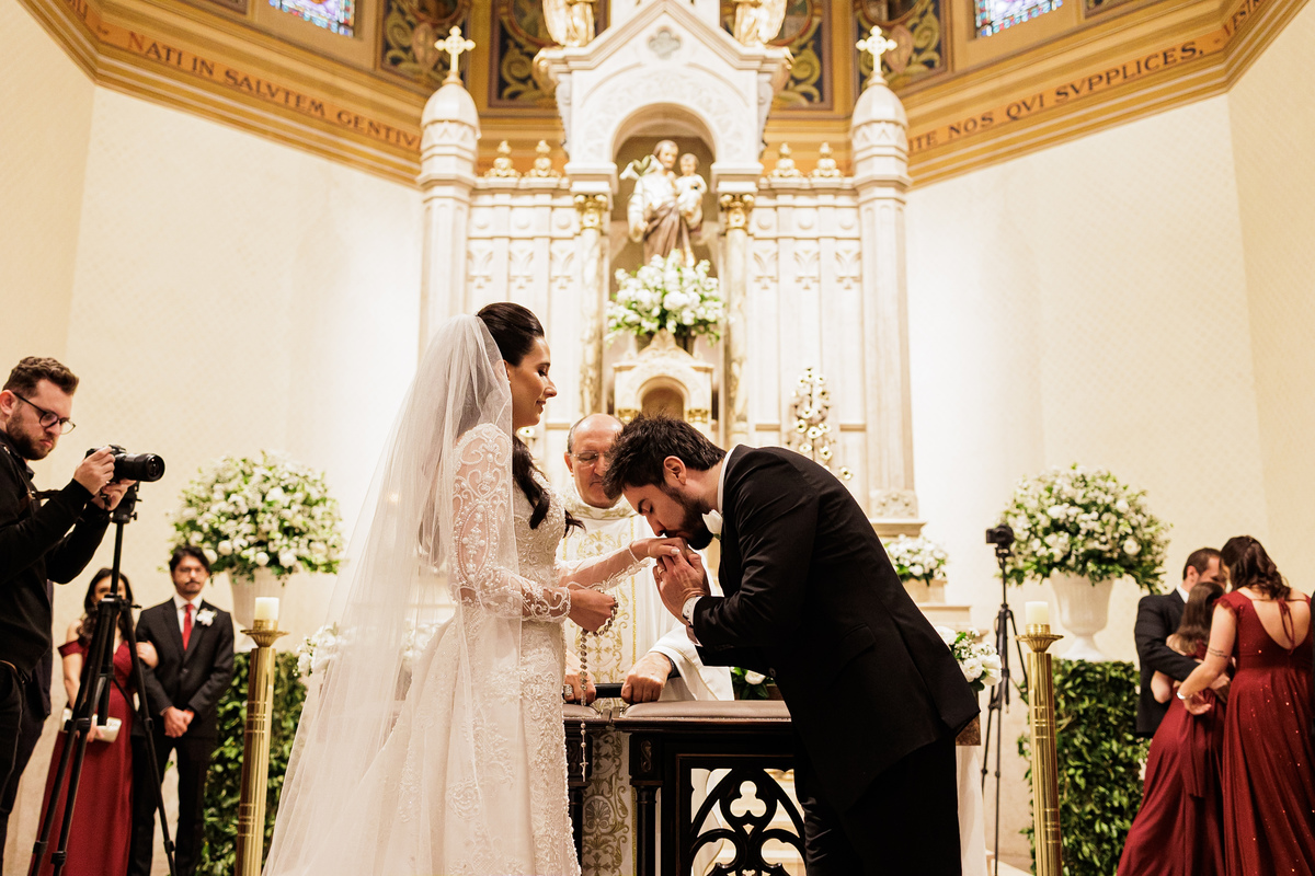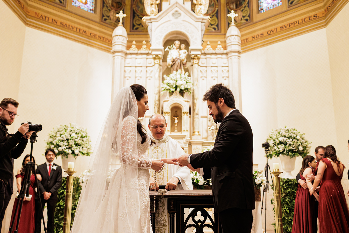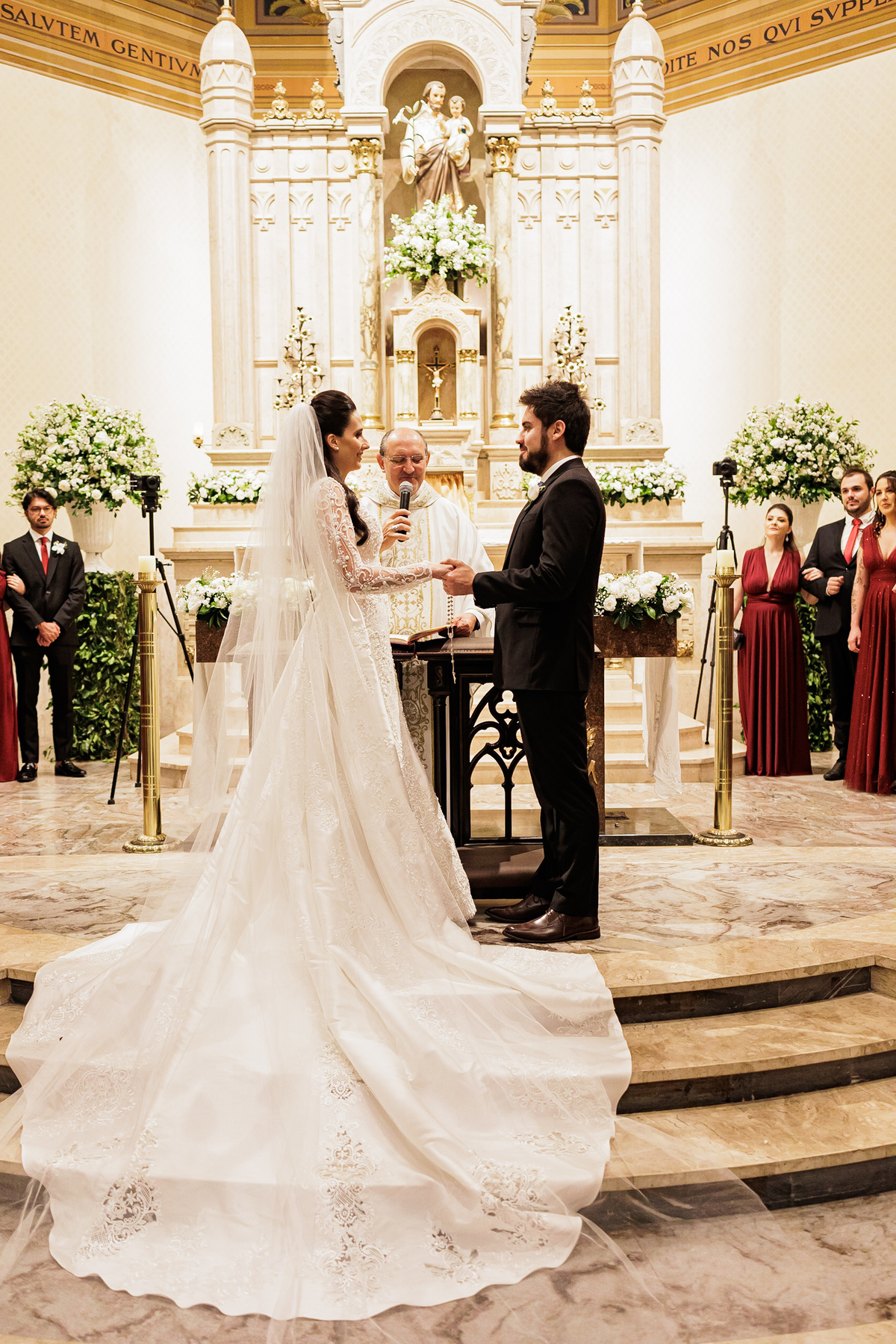 Na cerimônia, foi tudo lindo, perfeito, e ter visto nosso Vô Carlos junto com a Vó Manira entrar levando as imagens, aliança, para eles, foi simplesmente demais, essa hora eu chorei, chorei de emoção de ver o "Carlão" entrando isso com 91 anos de idade, entrou uma belezinha.