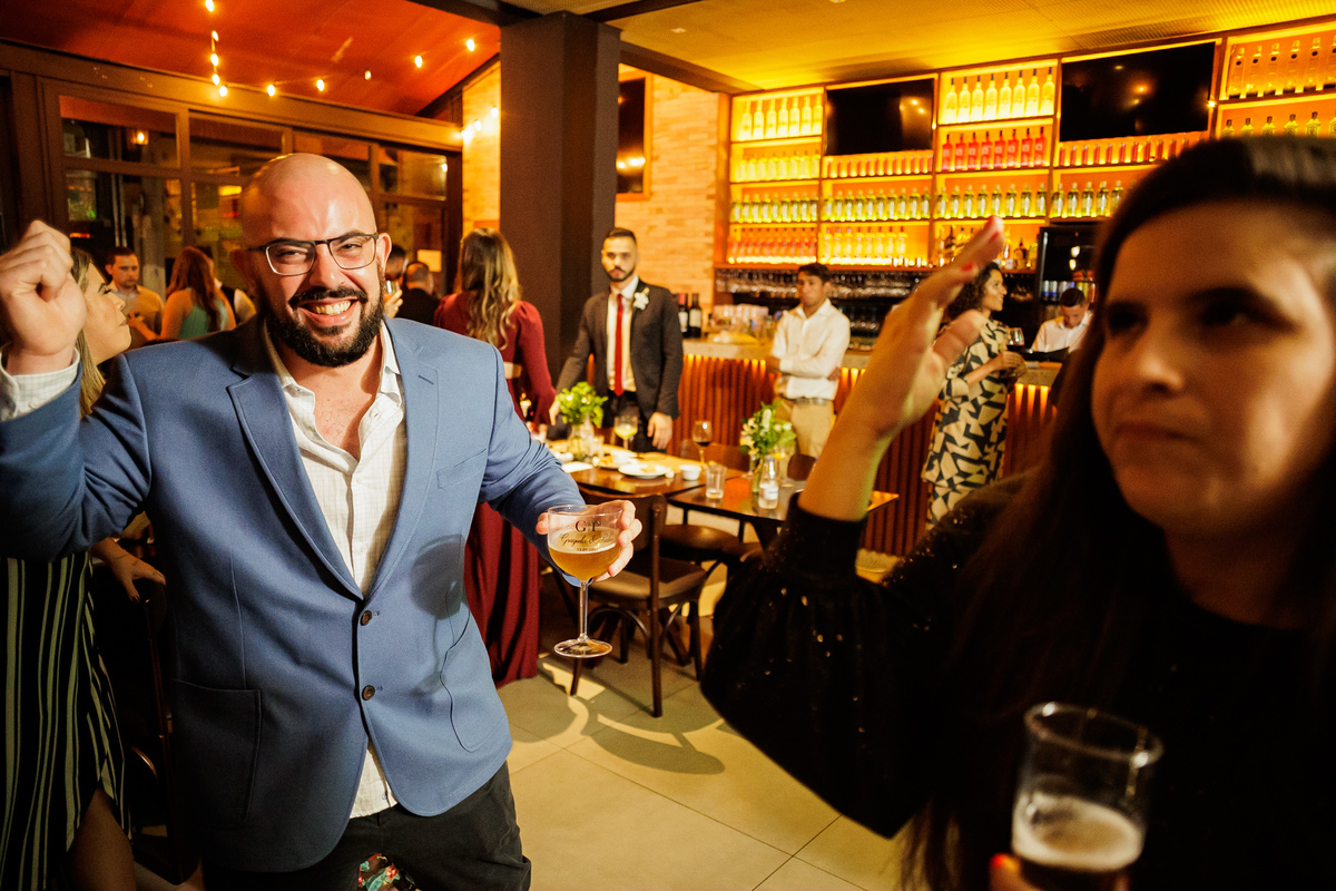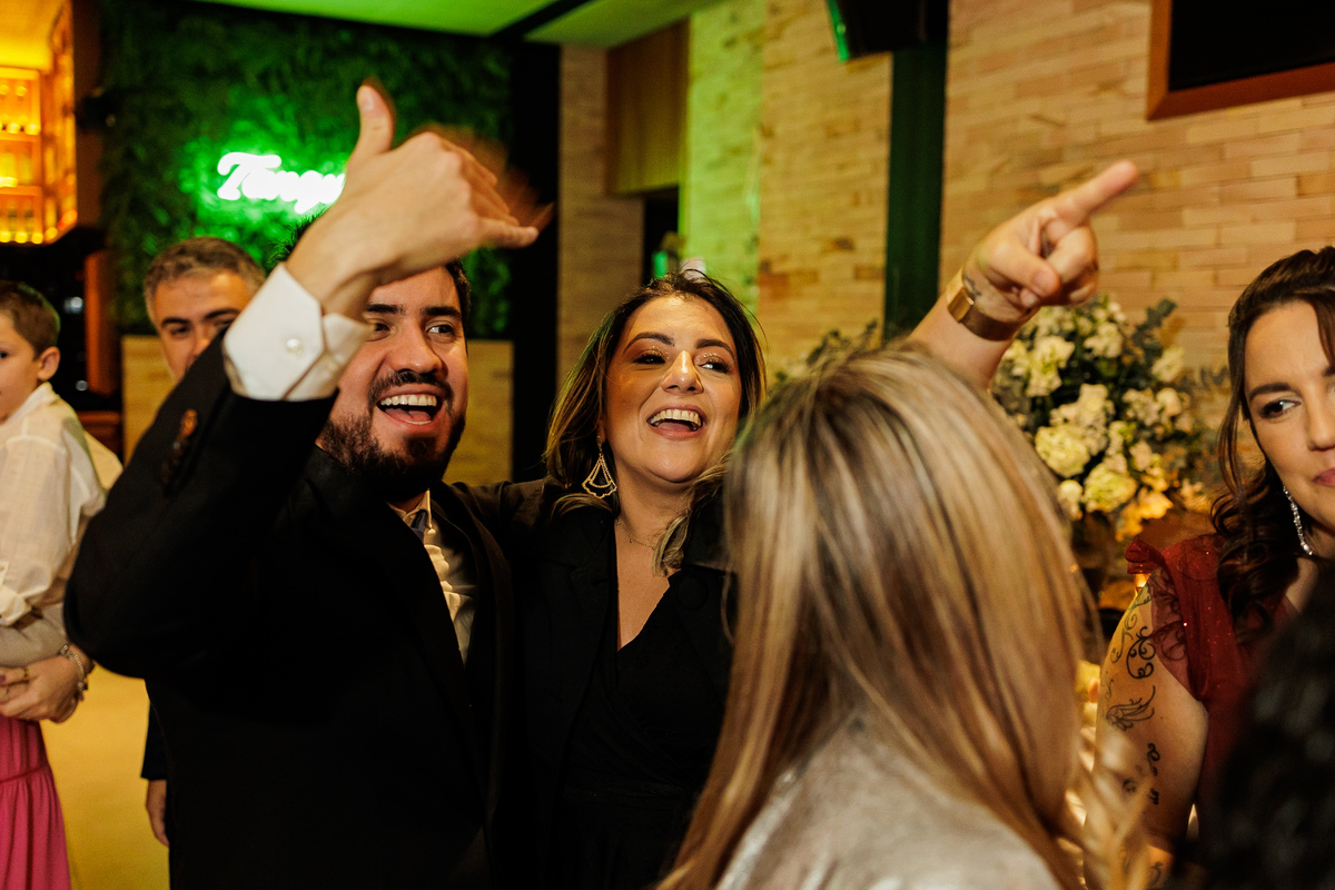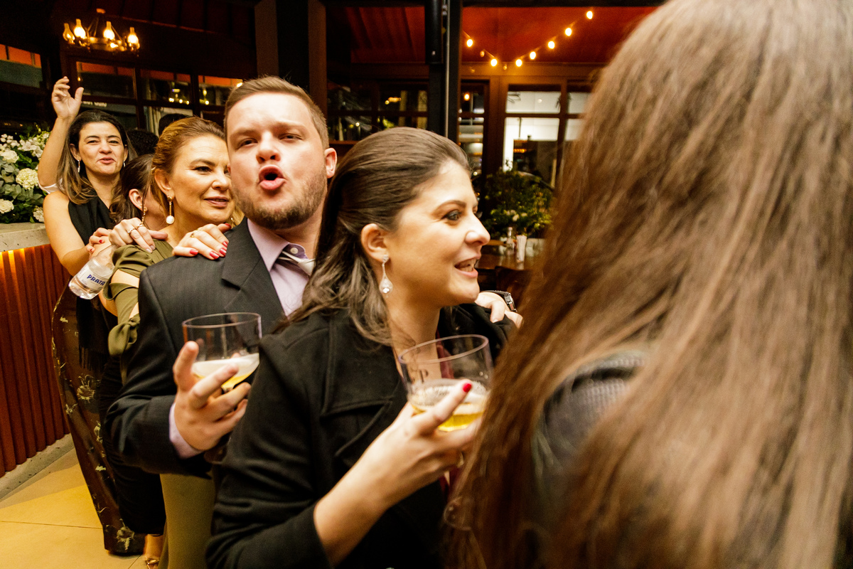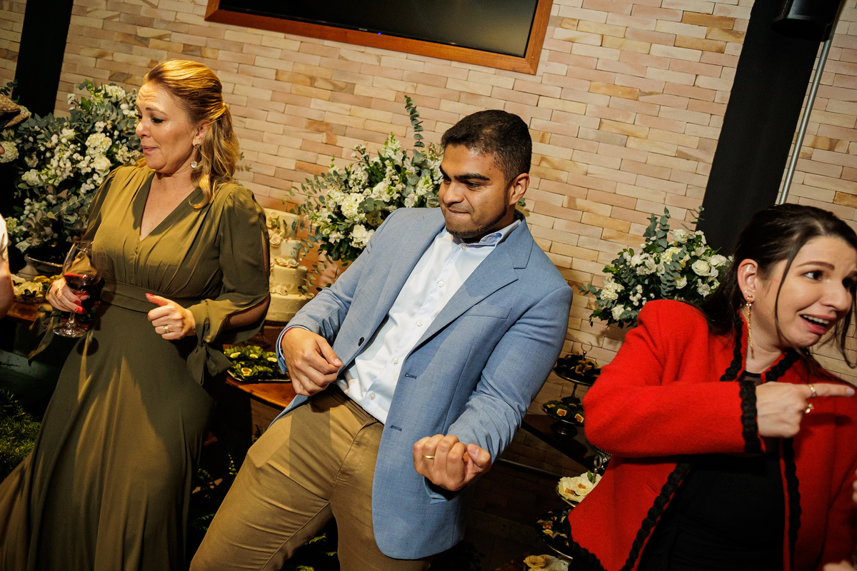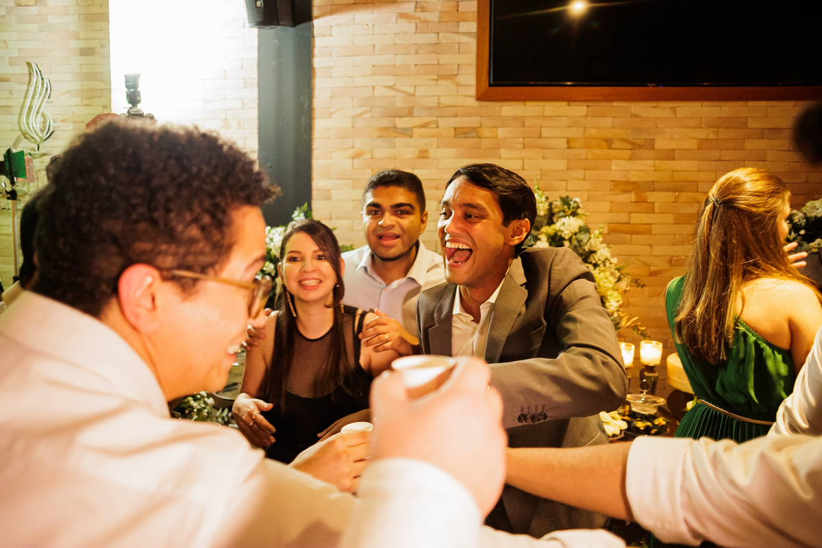 A festa, os amigos da Graziela e do Pedro, mostraram o que é animação, do começo ao fim, eles não parava, todo mundo muito feliz, todo mundo se divertindo demais, aproveitando mesmo a festa.