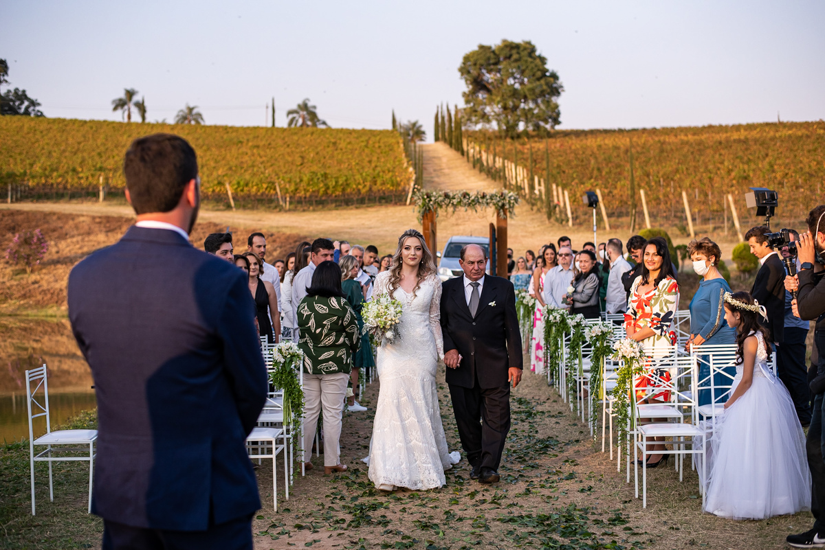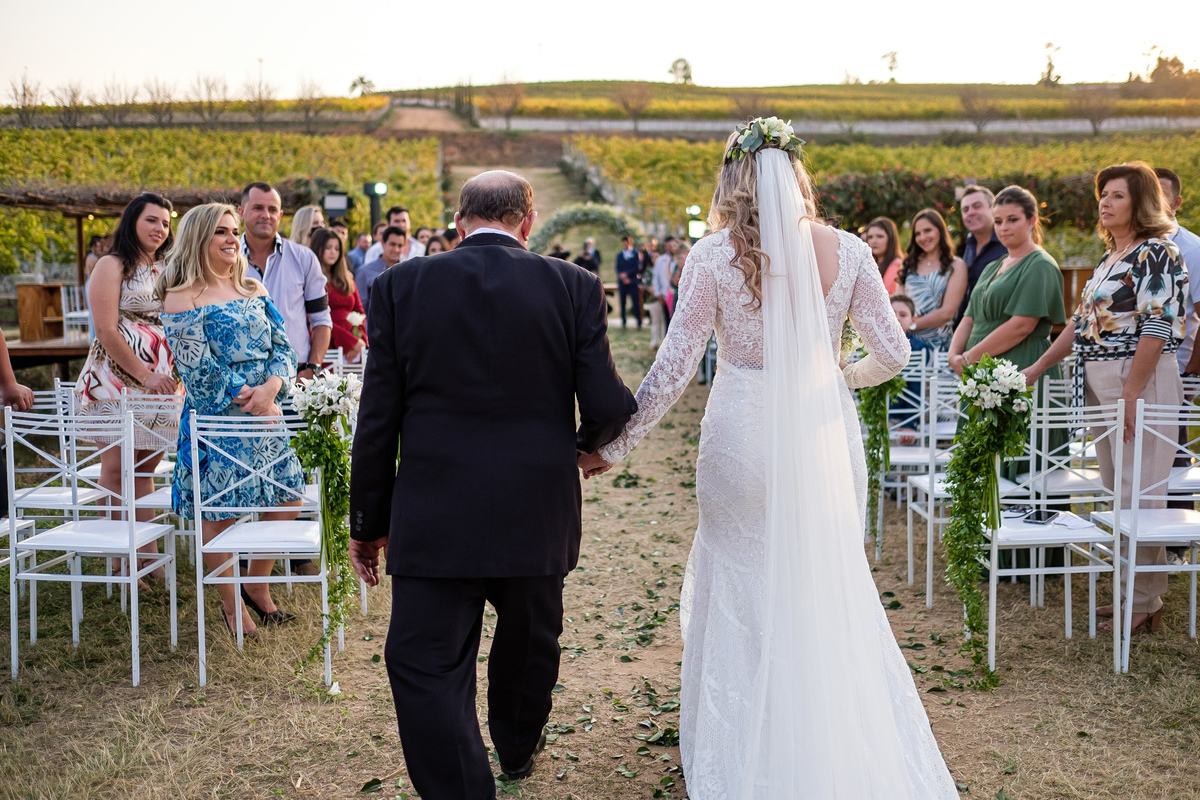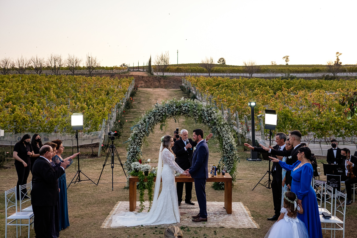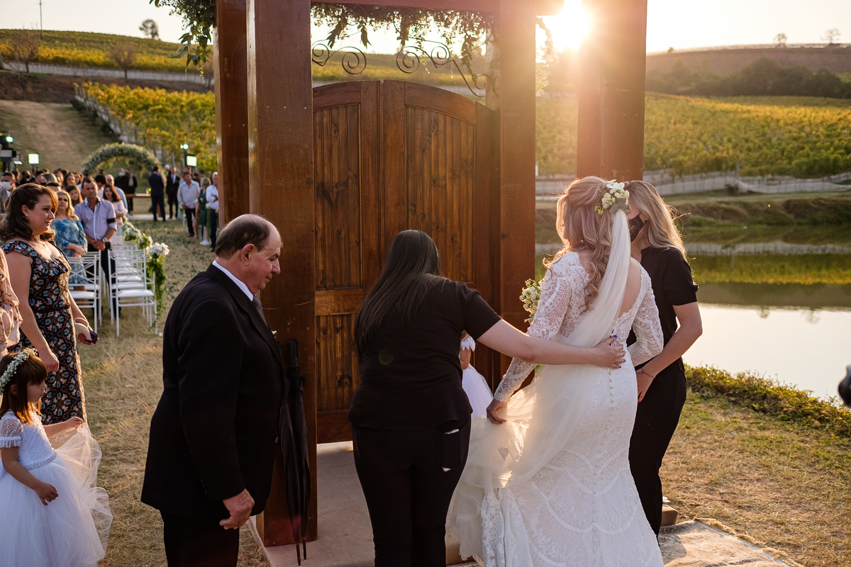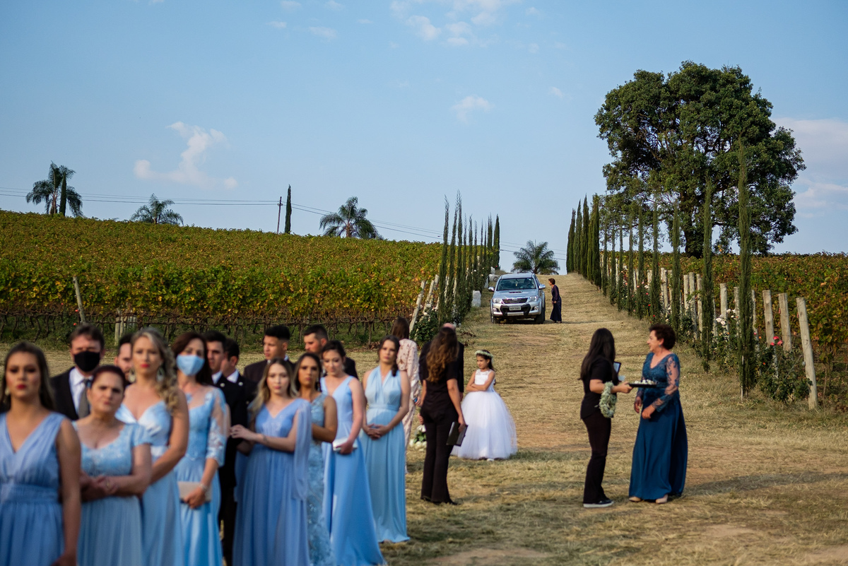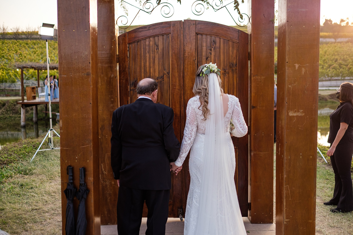 Na sexta-feira que antecede o casamento foi feita uma cerimonia, na verdade o casamento na igreja, e depois no sábado seria o casamento na Casa Geraldo no meio das parreiras, imagina, final de tarde, no meio das parreiras, quer cenário mais lindo que esse?