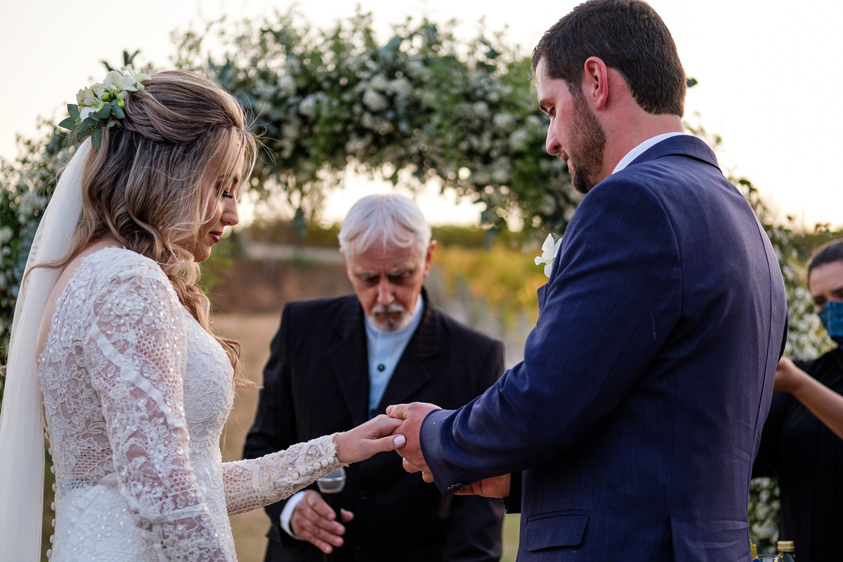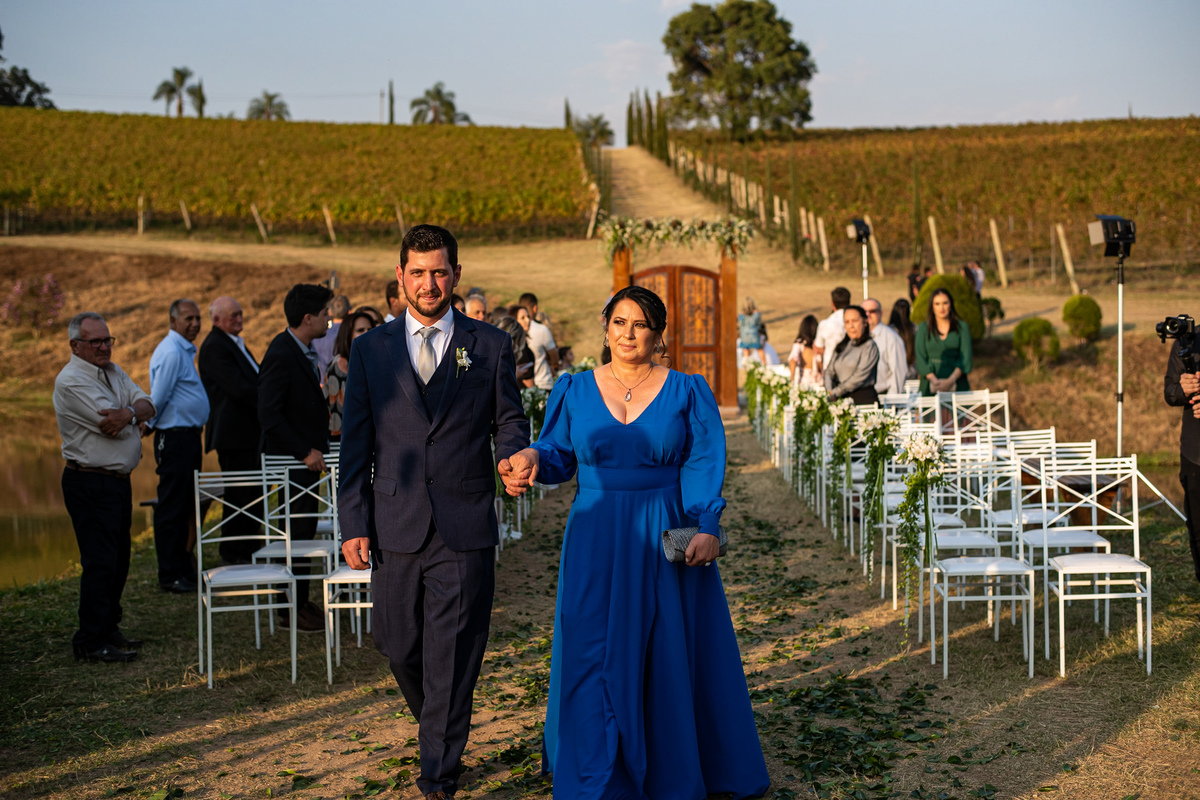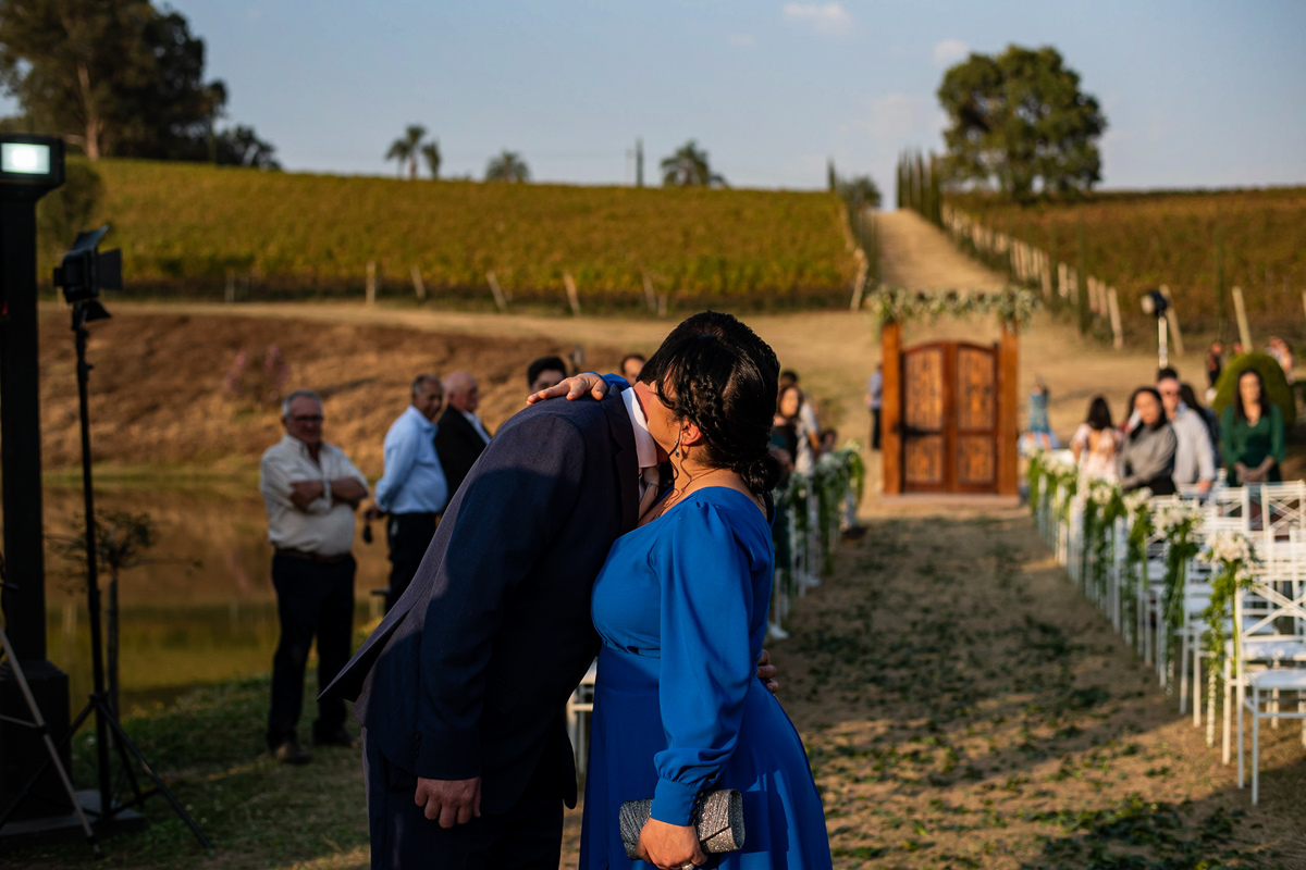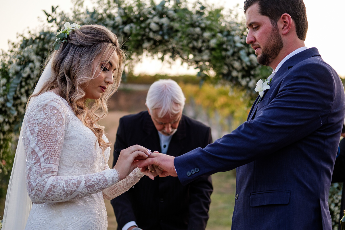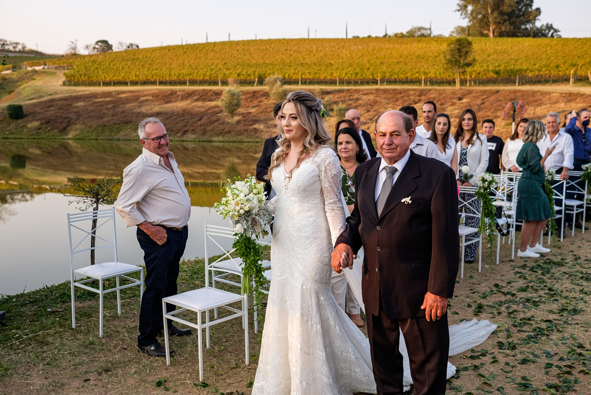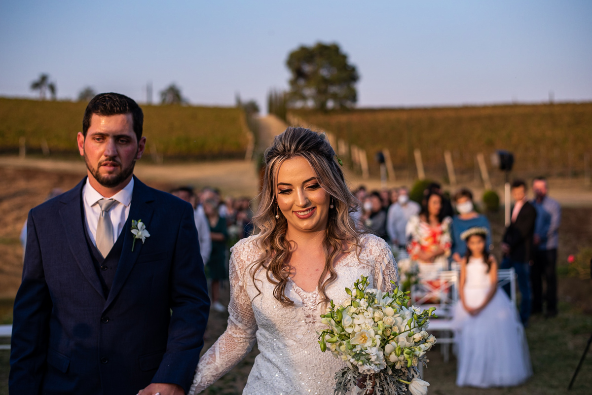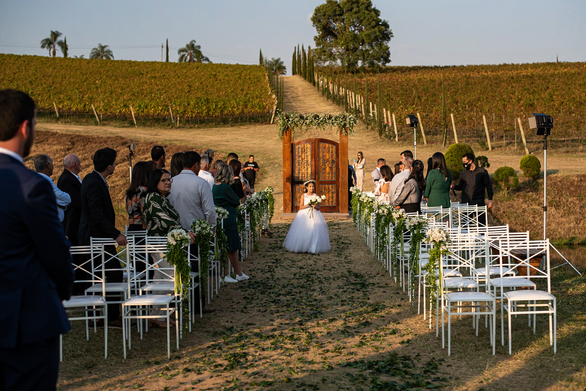 Na sexta-feira que antecede o casamento foi feita uma cerimonia, na verdade o casamento na igreja, e depois no sábado seria o casamento na Casa Geraldo no meio das parreiras, imagina, final de tarde, no meio das parreiras, quer cenário mais lindo que esse?