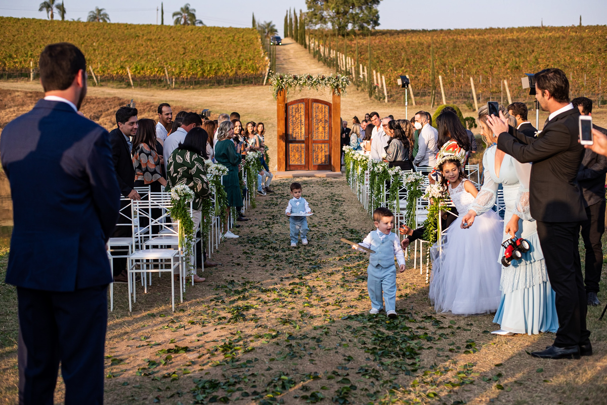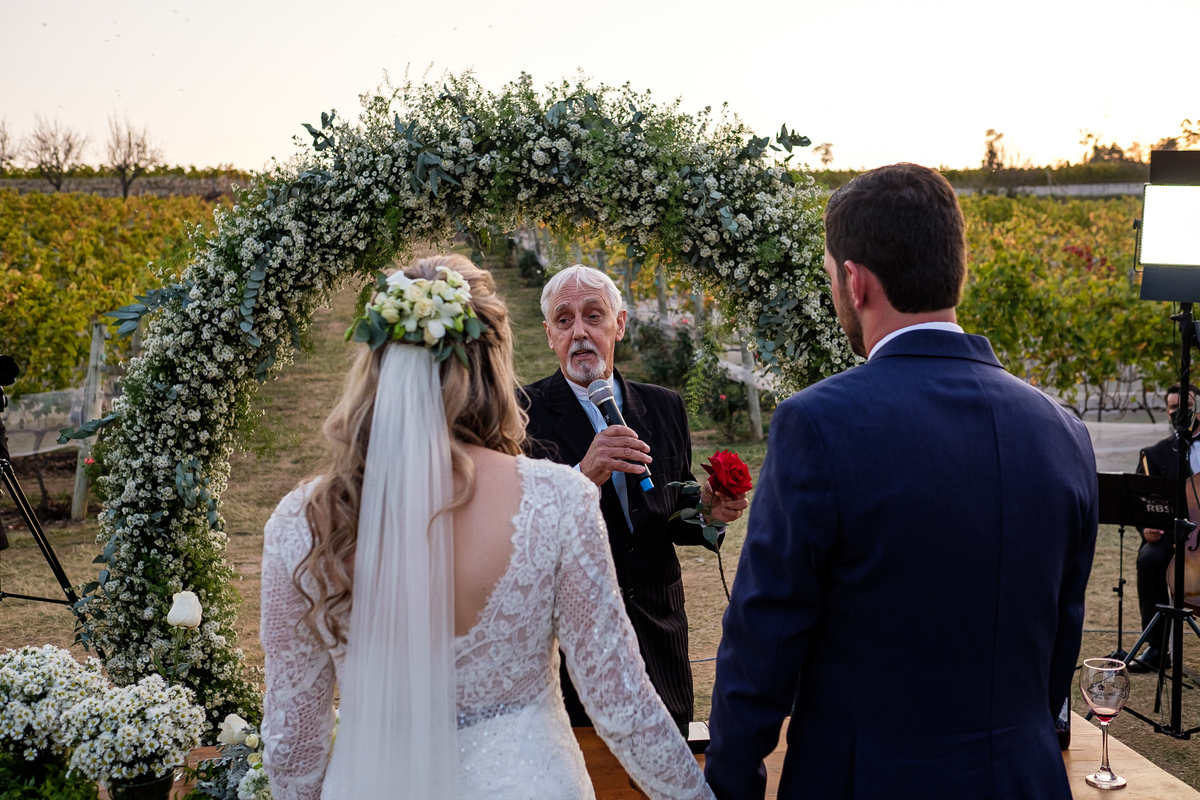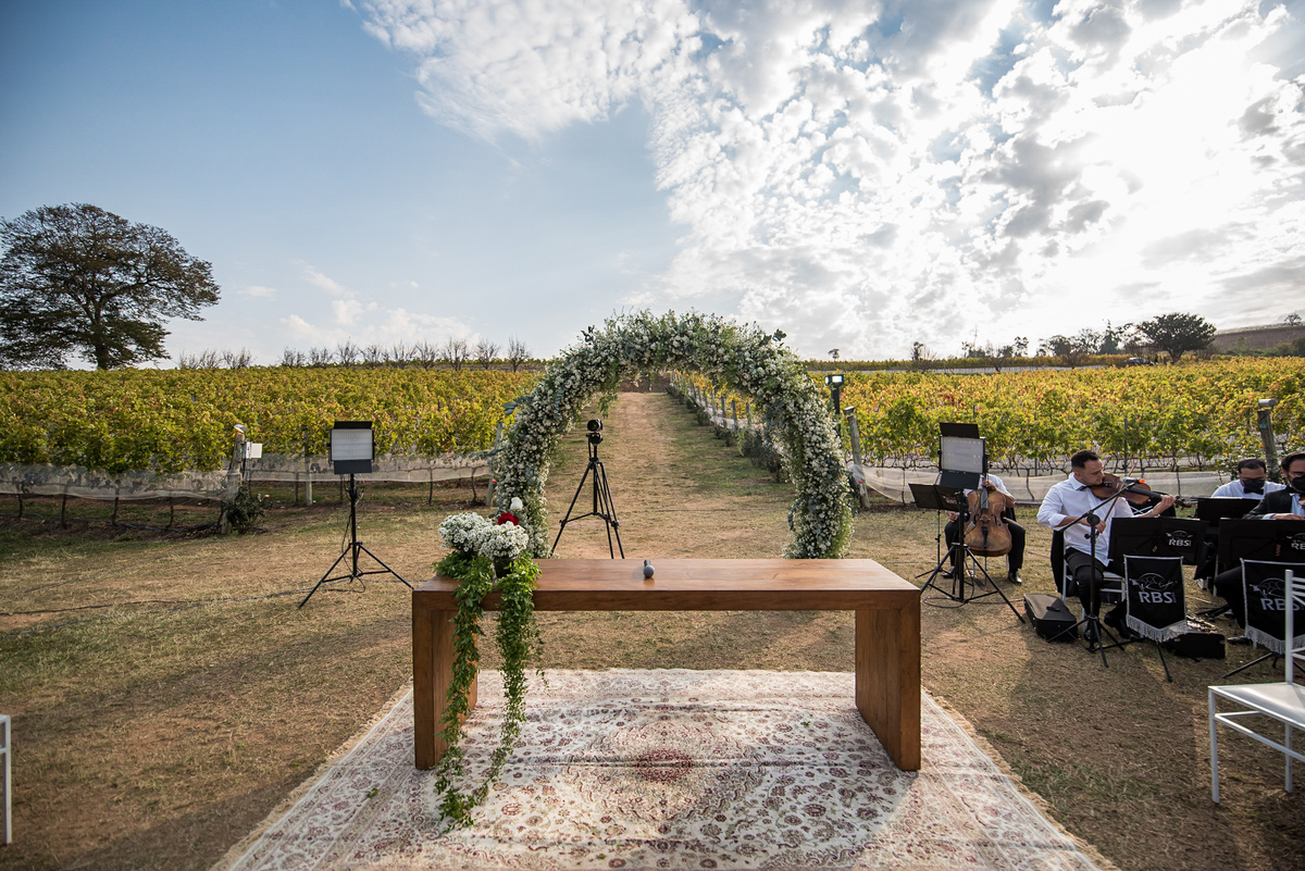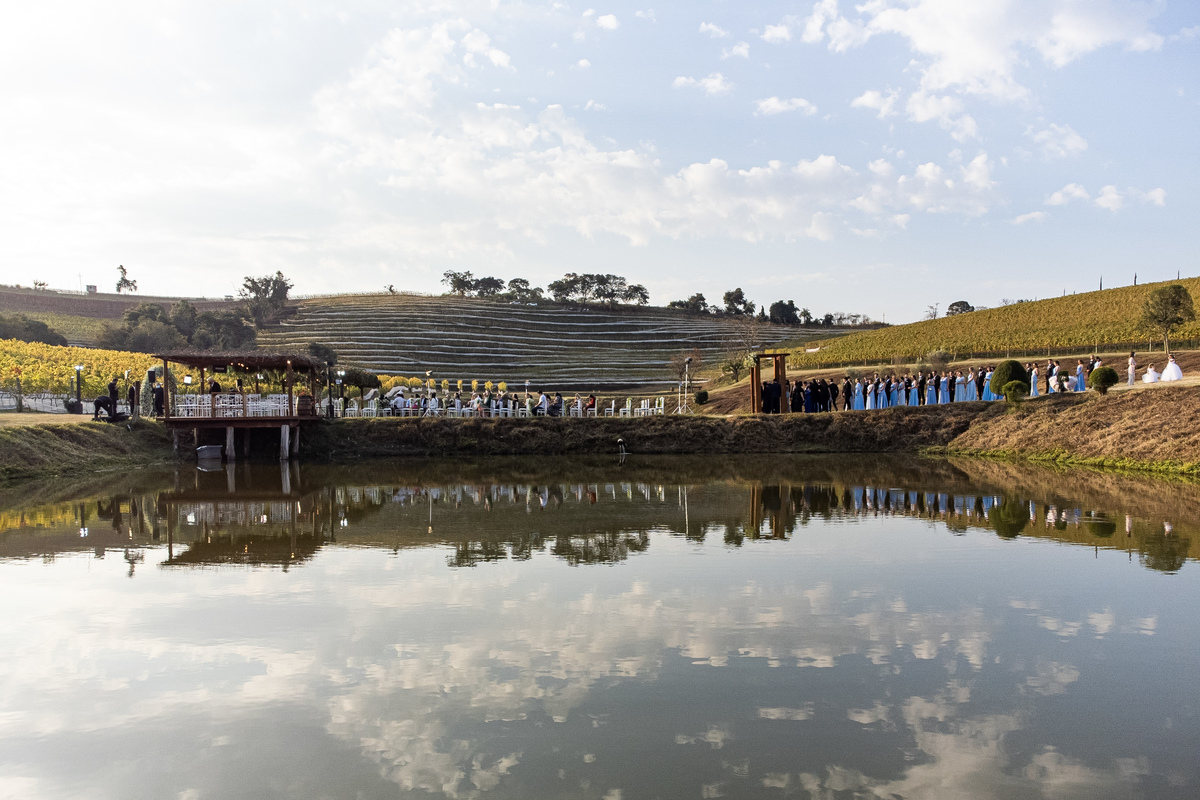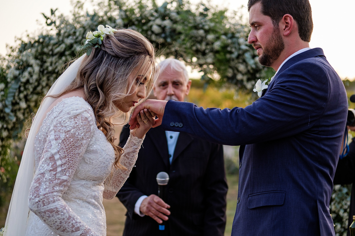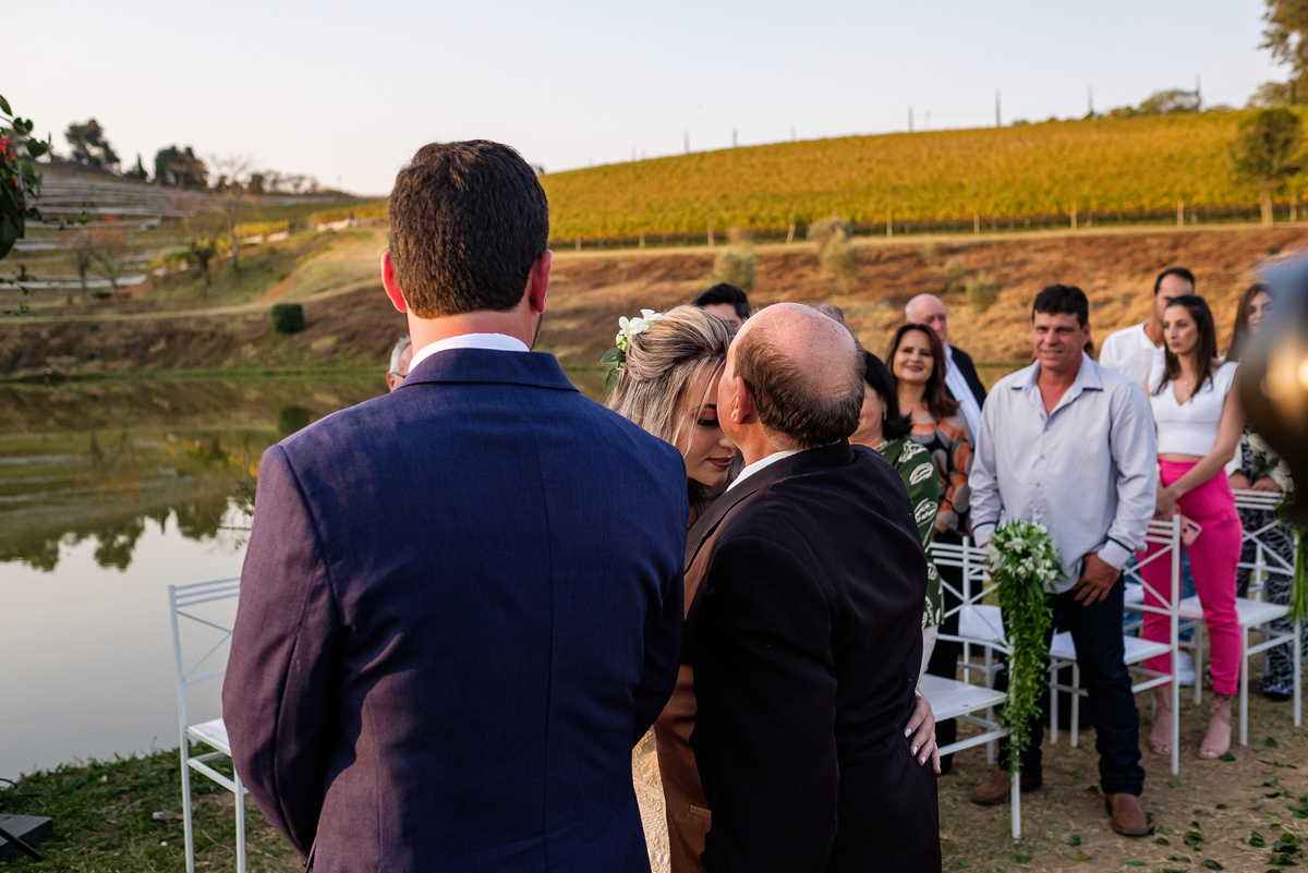 Na sexta-feira que antecede o casamento foi feita uma cerimonia, na verdade o casamento na igreja, e depois no sábado seria o casamento na Casa Geraldo no meio das parreiras, imagina, final de tarde, no meio das parreiras, quer cenário mais lindo que esse?