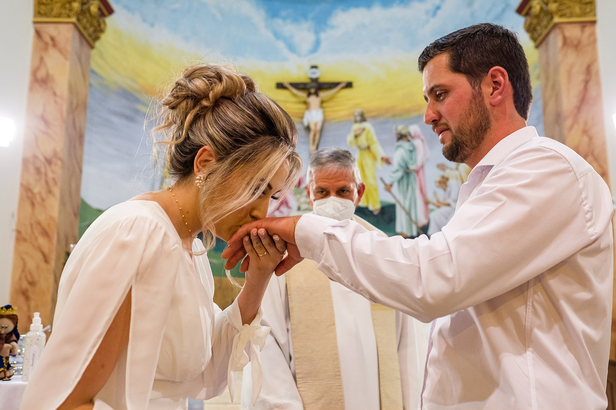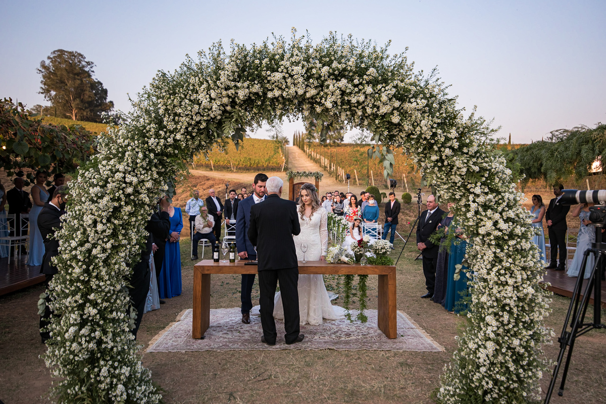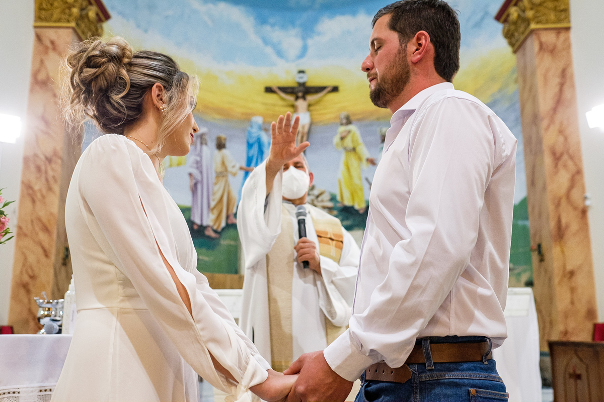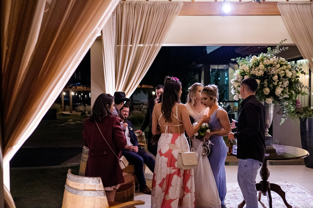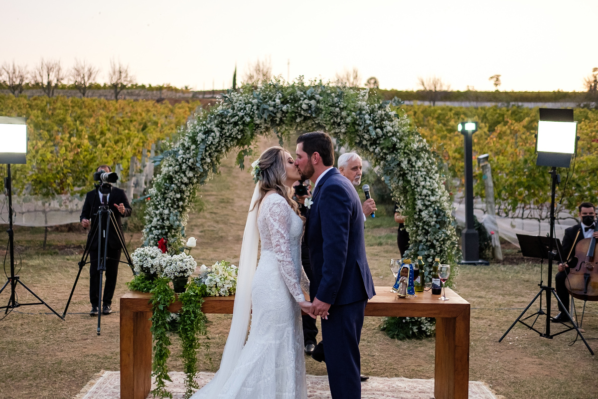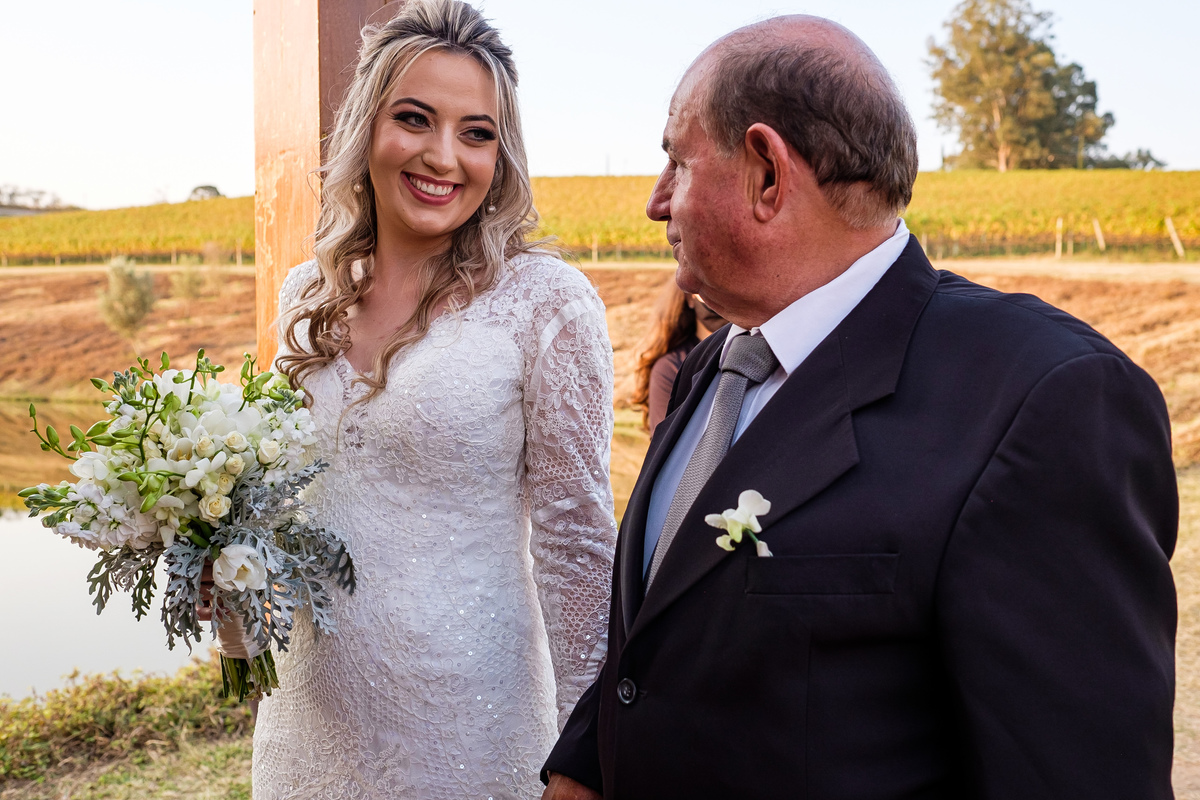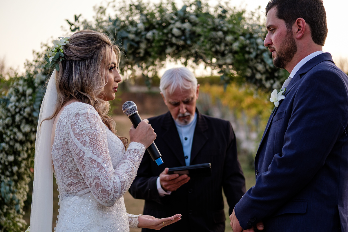 Na sexta-feira que antecede o casamento foi feita uma cerimonia, na verdade o casamento na igreja, e depois no sábado seria o casamento na Casa Geraldo no meio das parreiras, imagina, final de tarde, no meio das parreiras, quer cenário mais lindo que esse?