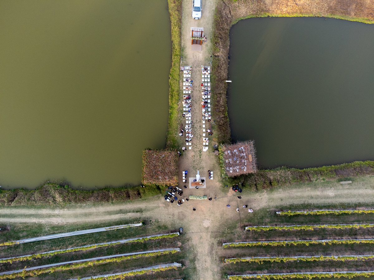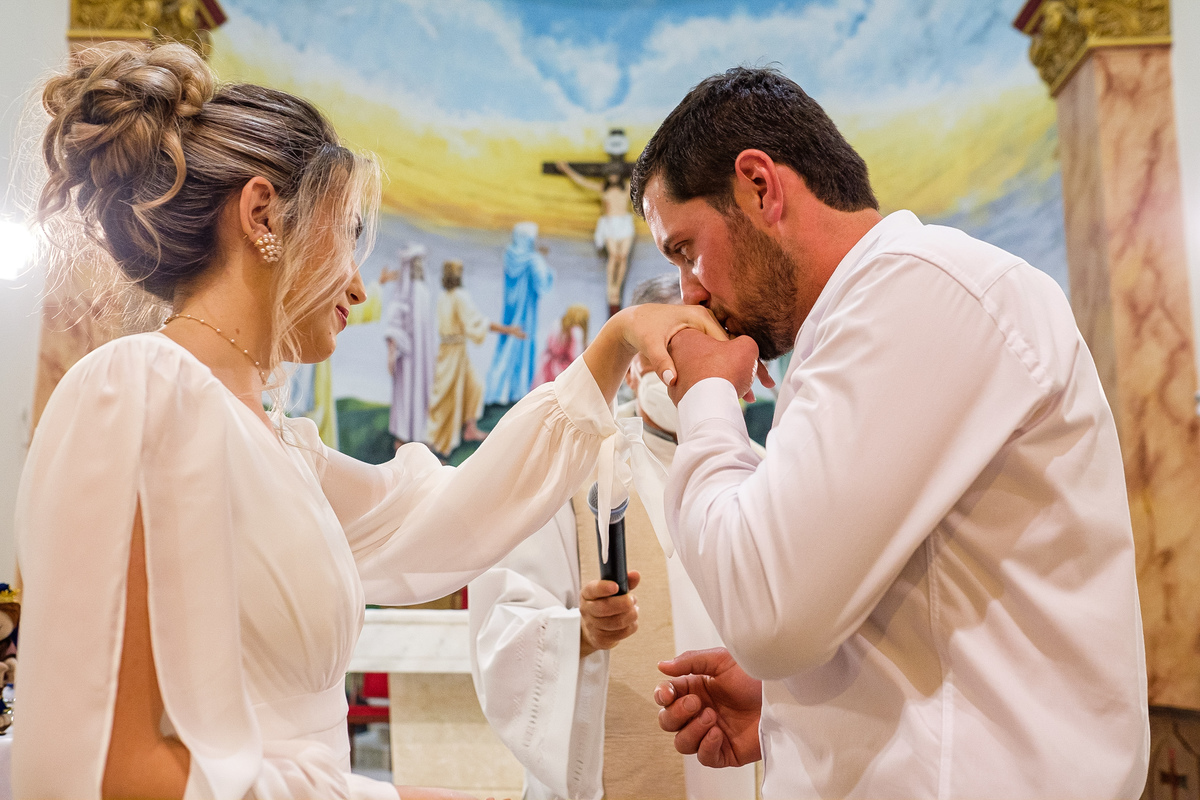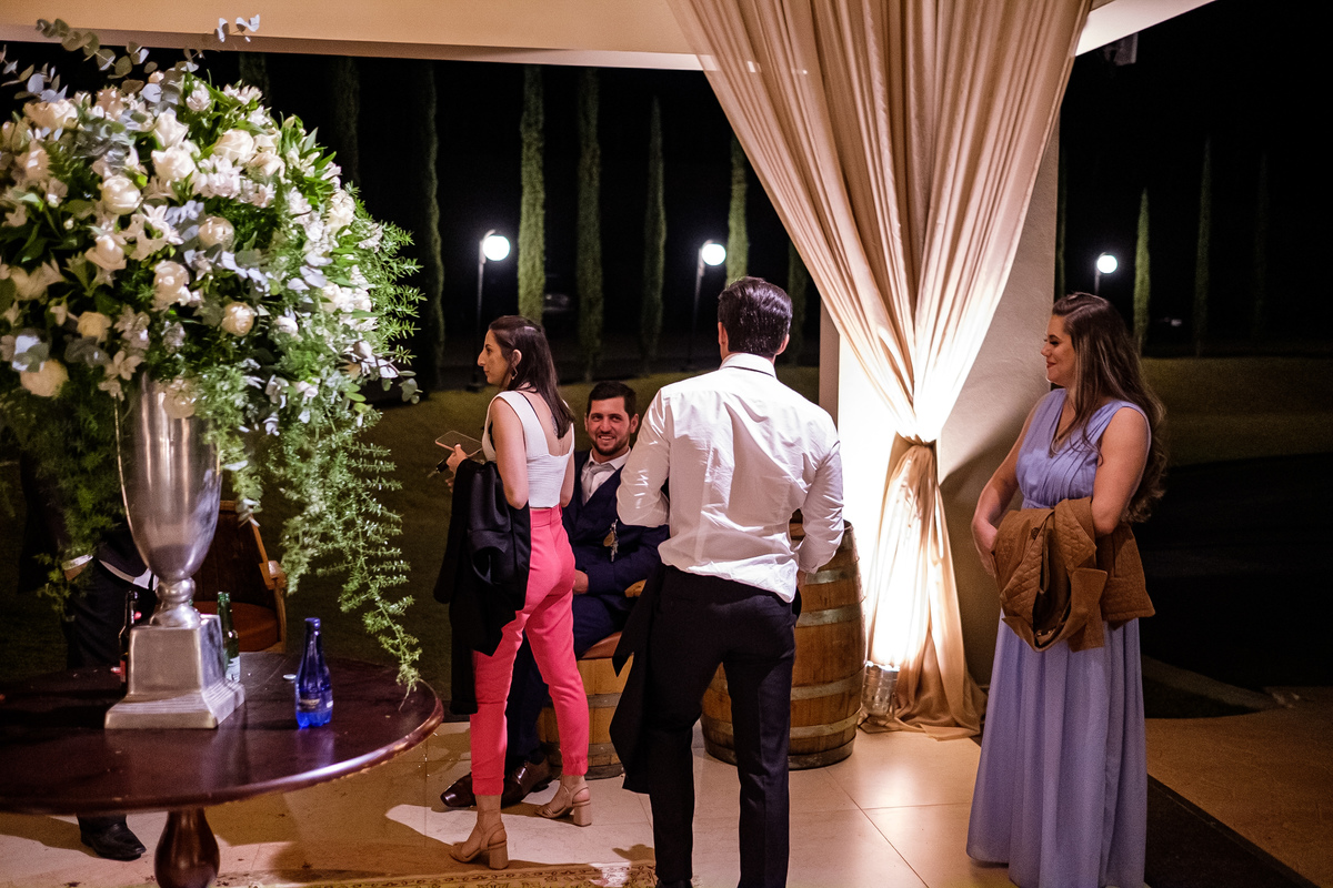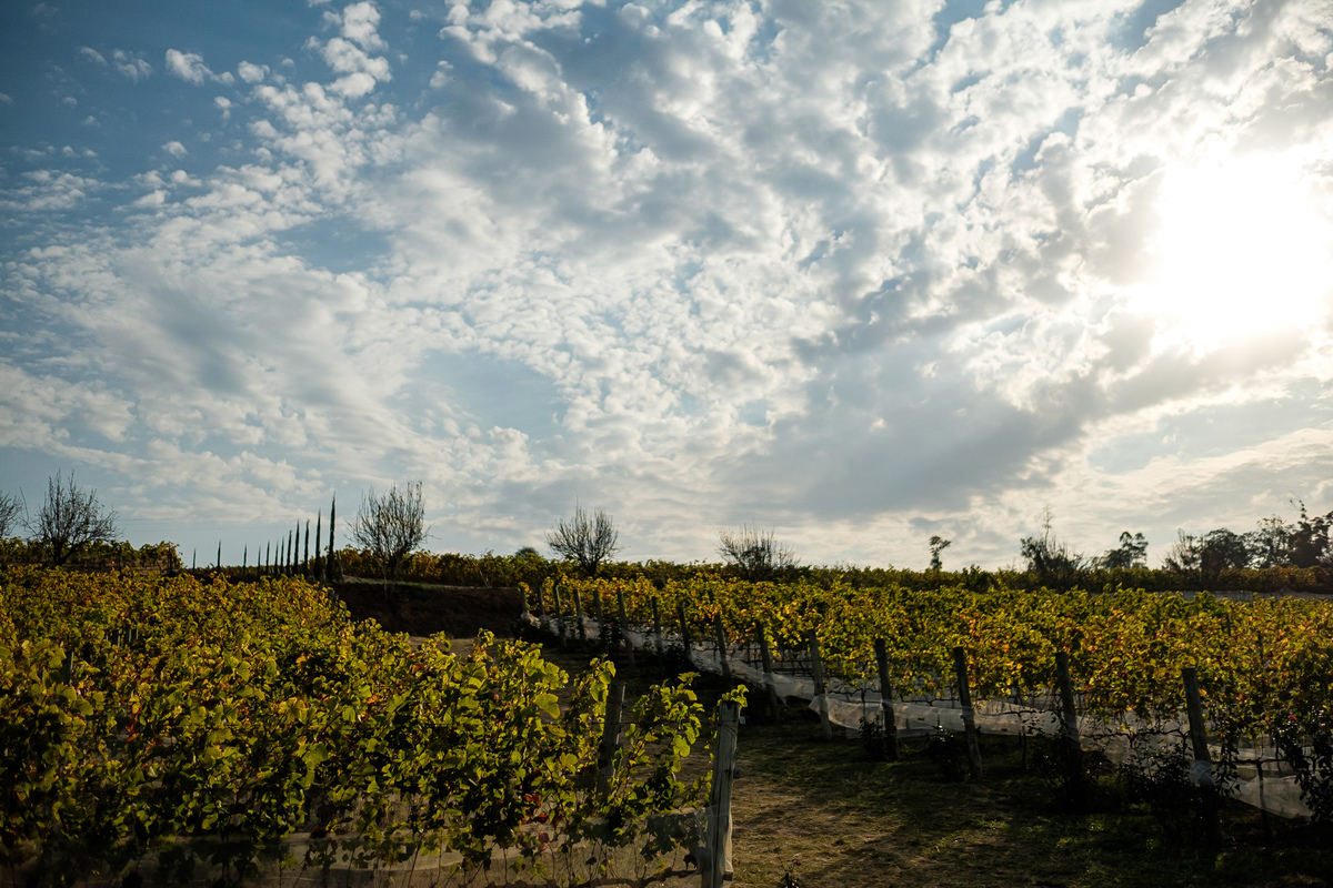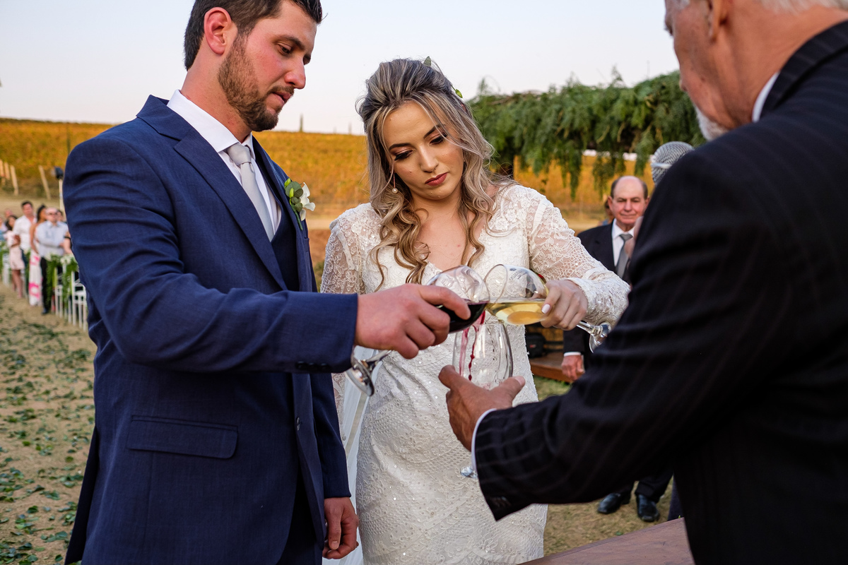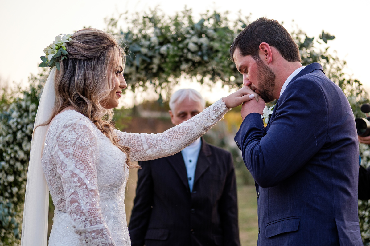 Na sexta-feira que antecede o casamento foi feita uma cerimonia, na verdade o casamento na igreja, e depois no sábado seria o casamento na Casa Geraldo no meio das parreiras, imagina, final de tarde, no meio das parreiras, quer cenário mais lindo que esse?
