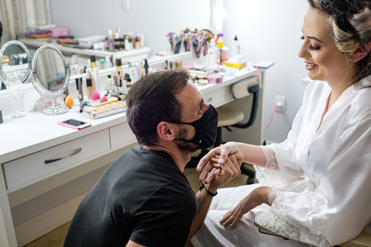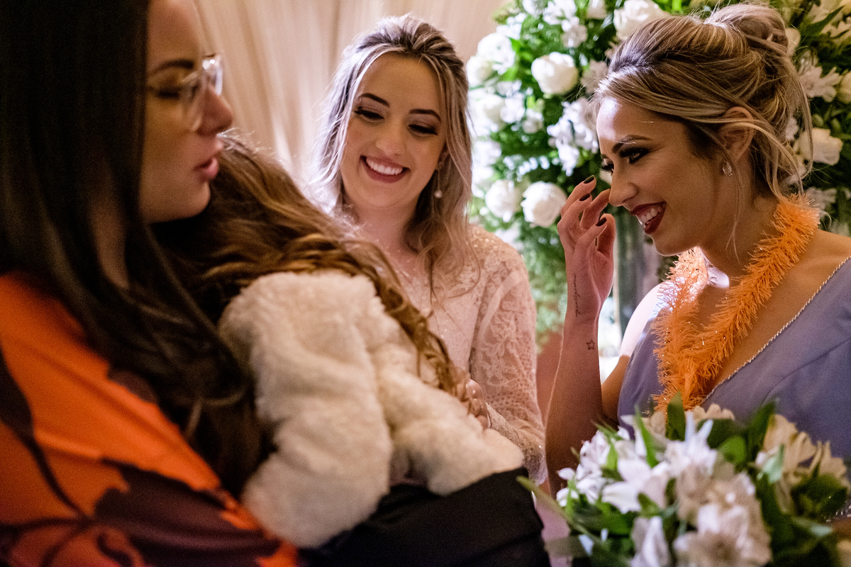 A Renata, eu já tinha fotografado o casamento da irmã dela, a Jéssica, já conhecia ela, a família, uma família que gostamos demais, são muito animados, e por isso já esperávamos um casamento lindo e com muita animação.