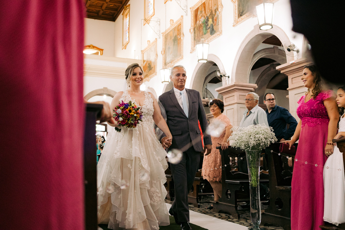 Na hora da entrada da Jéssyca é um momento que gosto muito de fotografar a noiva e seu pai, sempre rende fotos muito lindas, emocionantes, fotos que com o tempo o seu valor só vai aumentando.