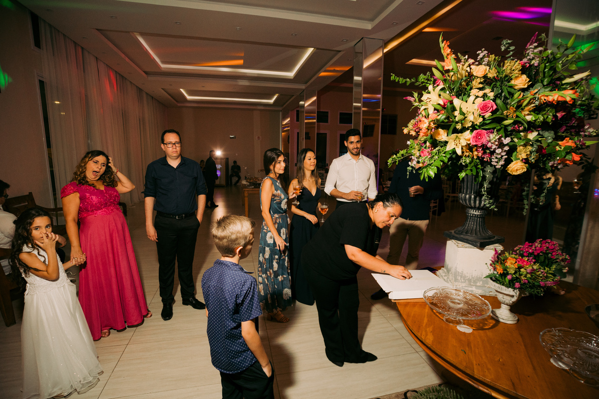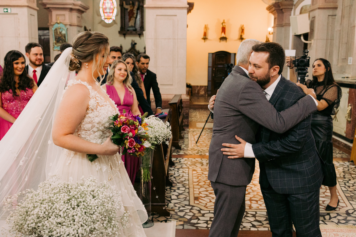A Cerimonia deles foi linda, teve muita emoção nas entradas e durante a cerimonia, como é lindo quando vemos os convidados, os pais todos emocionados e participando desse momento único na vida deles.