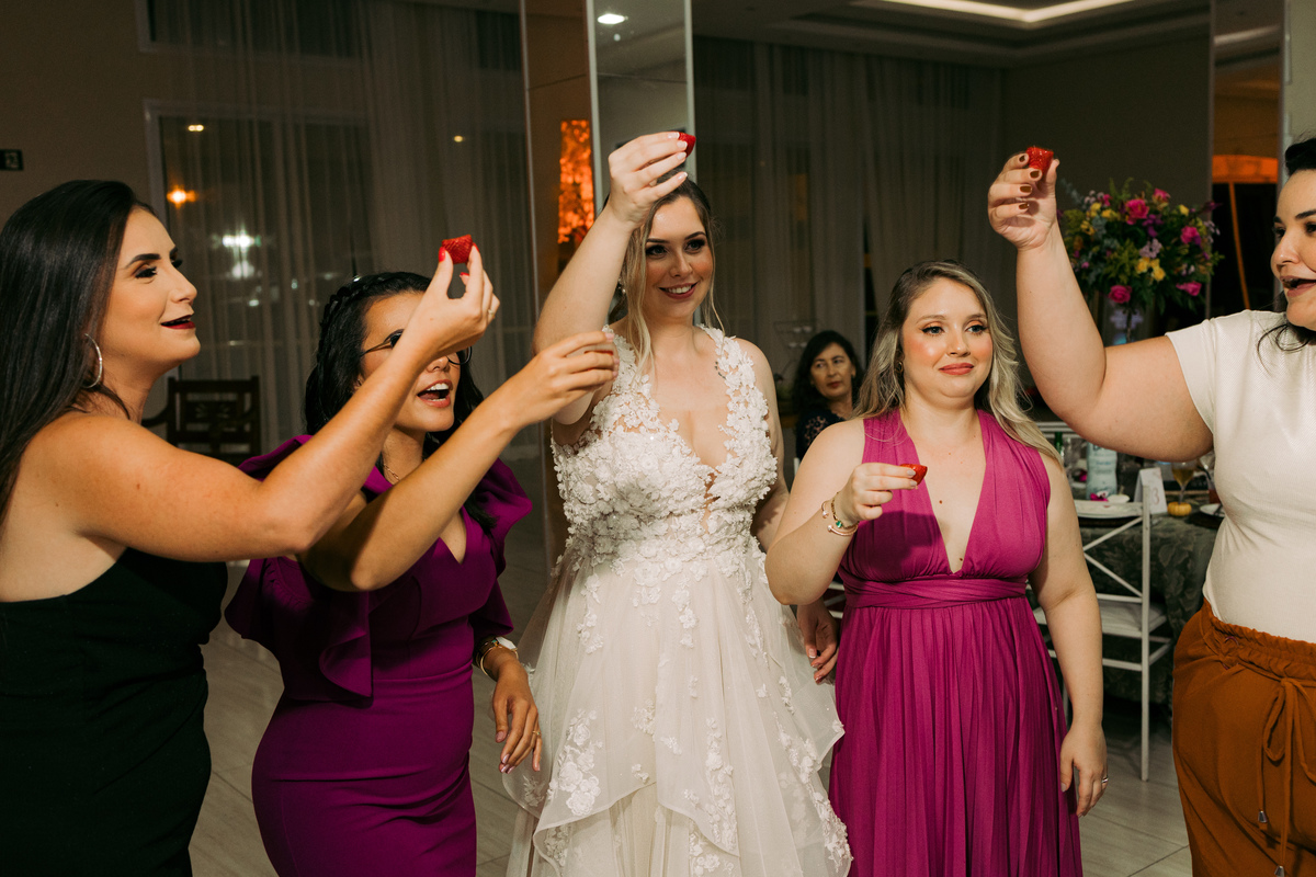 No making da Jéssyca, estava algumas madrinhas com ela, as suas amigas, a animação delas era demais, tanto que na hora do brinde, vai dar para ver nas fotos kkk como elas estavam aproveitando ao máximo aquele momento ali delas, de ser só elas.