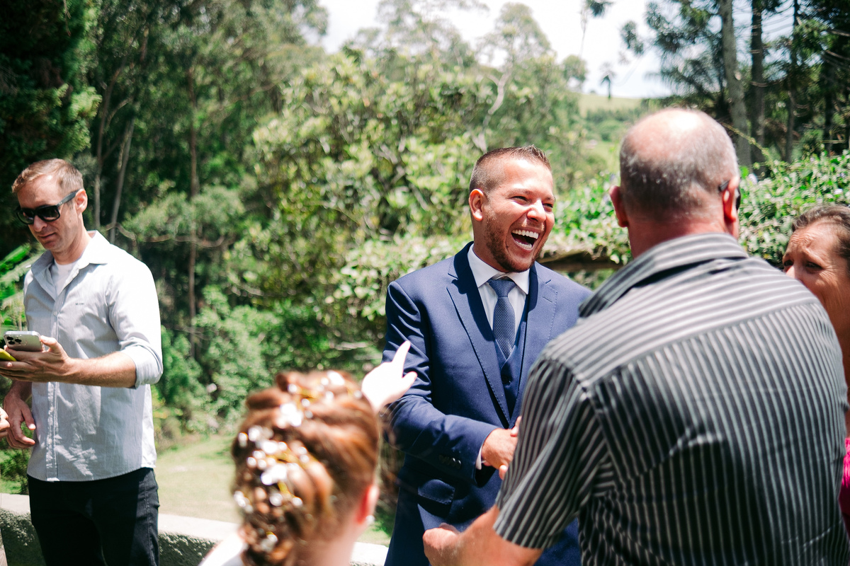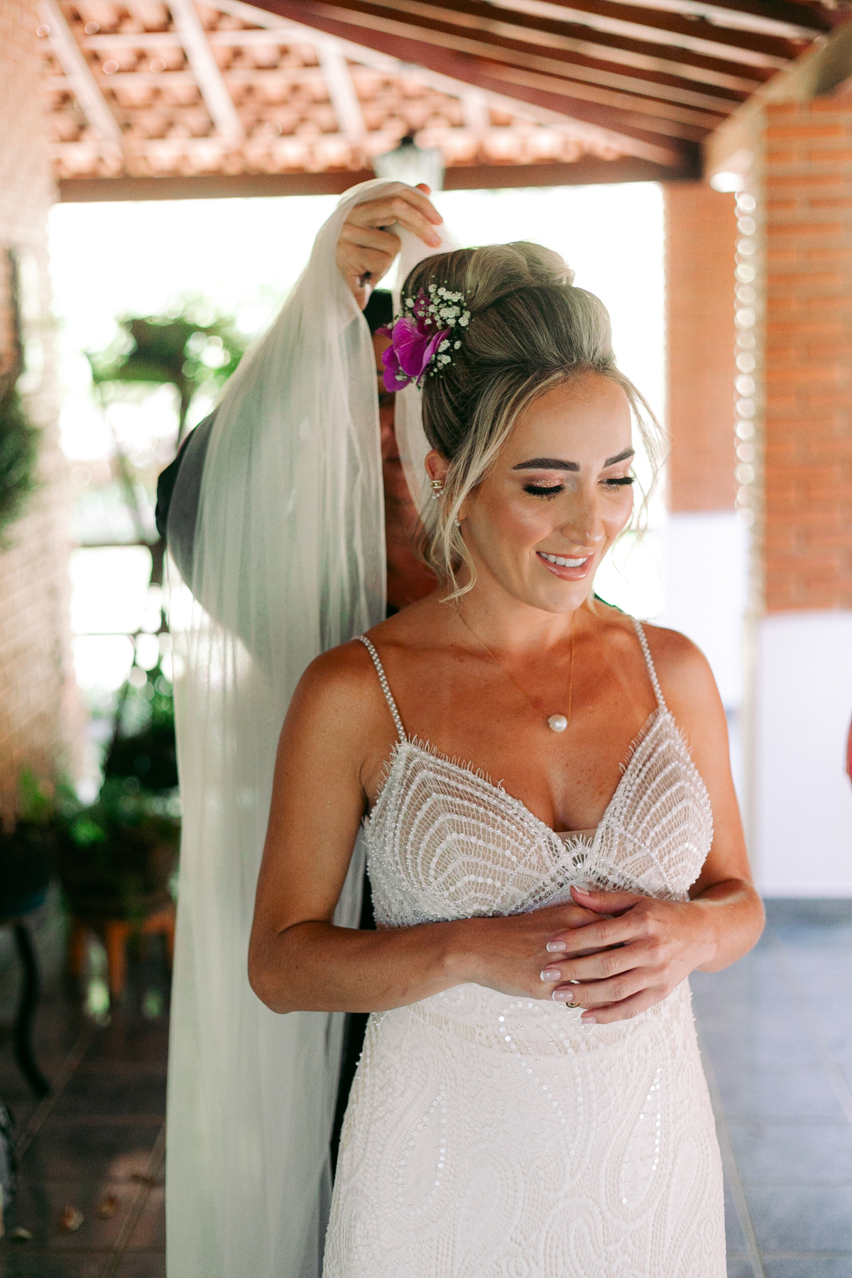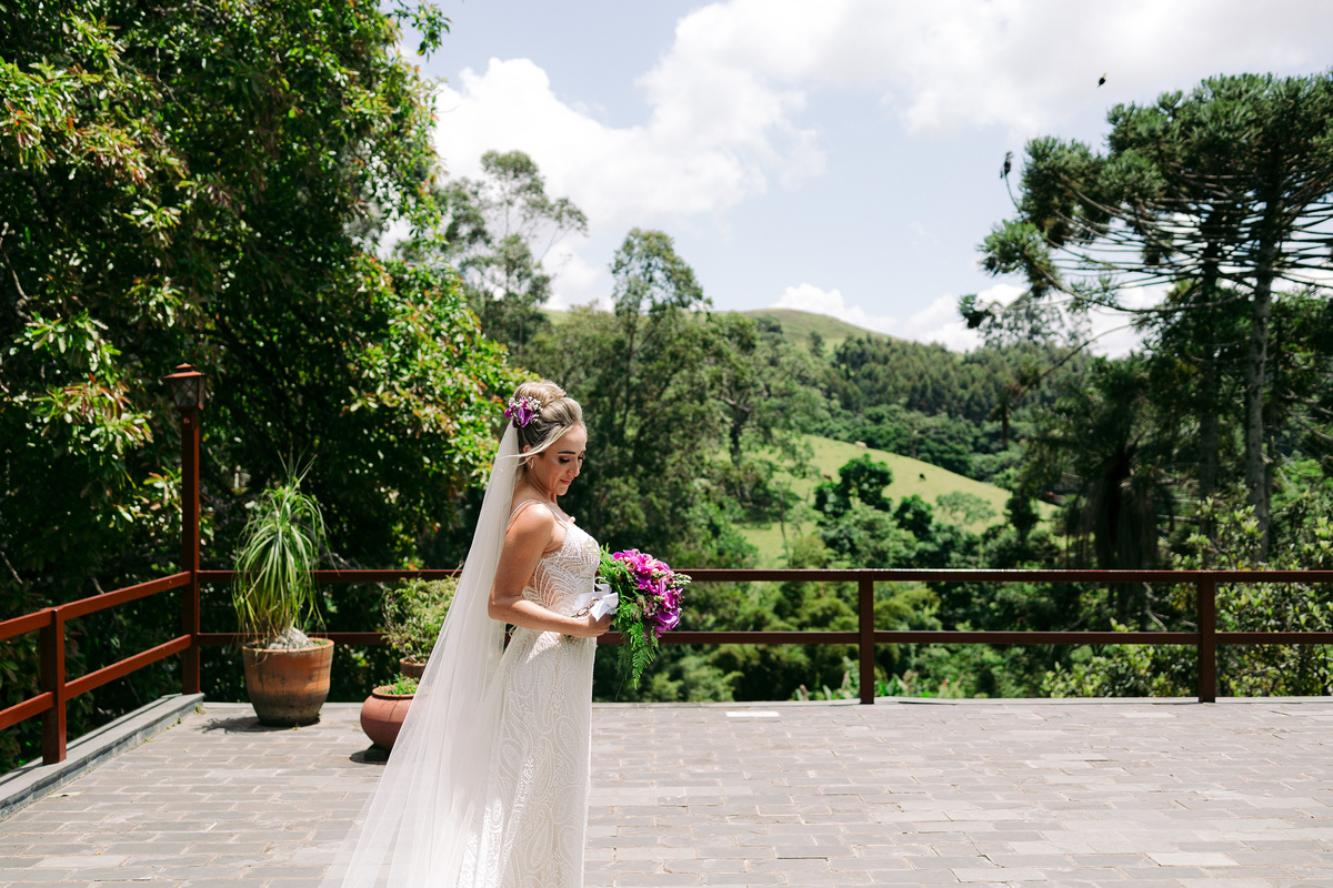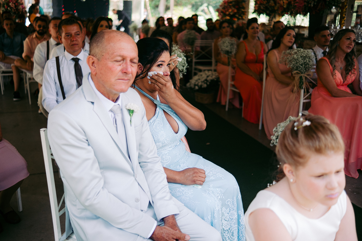 O momento que todos esperavam finalmente chegou, quando Rafaela e Gustavo se viram pela primeira vez na hora da cerimônia. O brilho em seus olhos refletia a alegria e a emoção de se tornarem marido e mulher diante daquele cenário de tirar o fôlego. O sol dourado iluminava o altar improvisado, enquanto o som suave da cachoeira preenchia o ar, criando uma atmosfera mágica e serena.