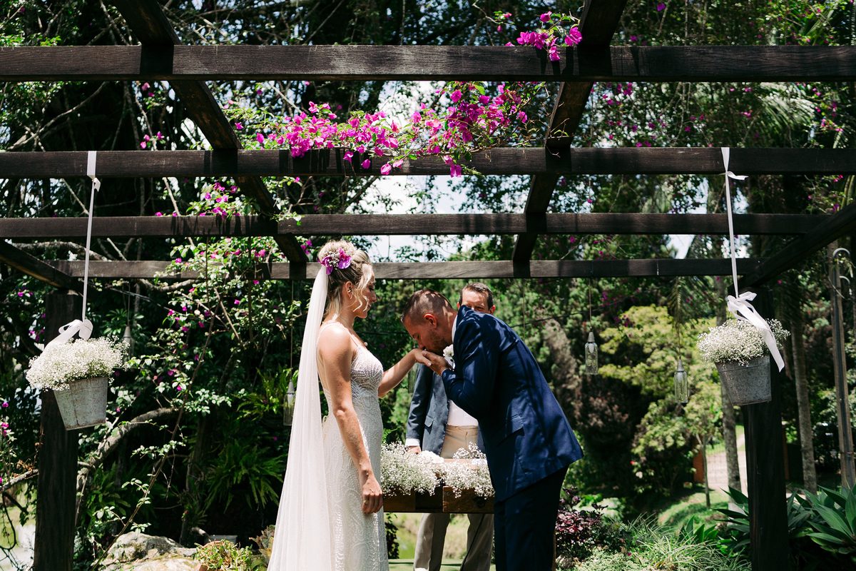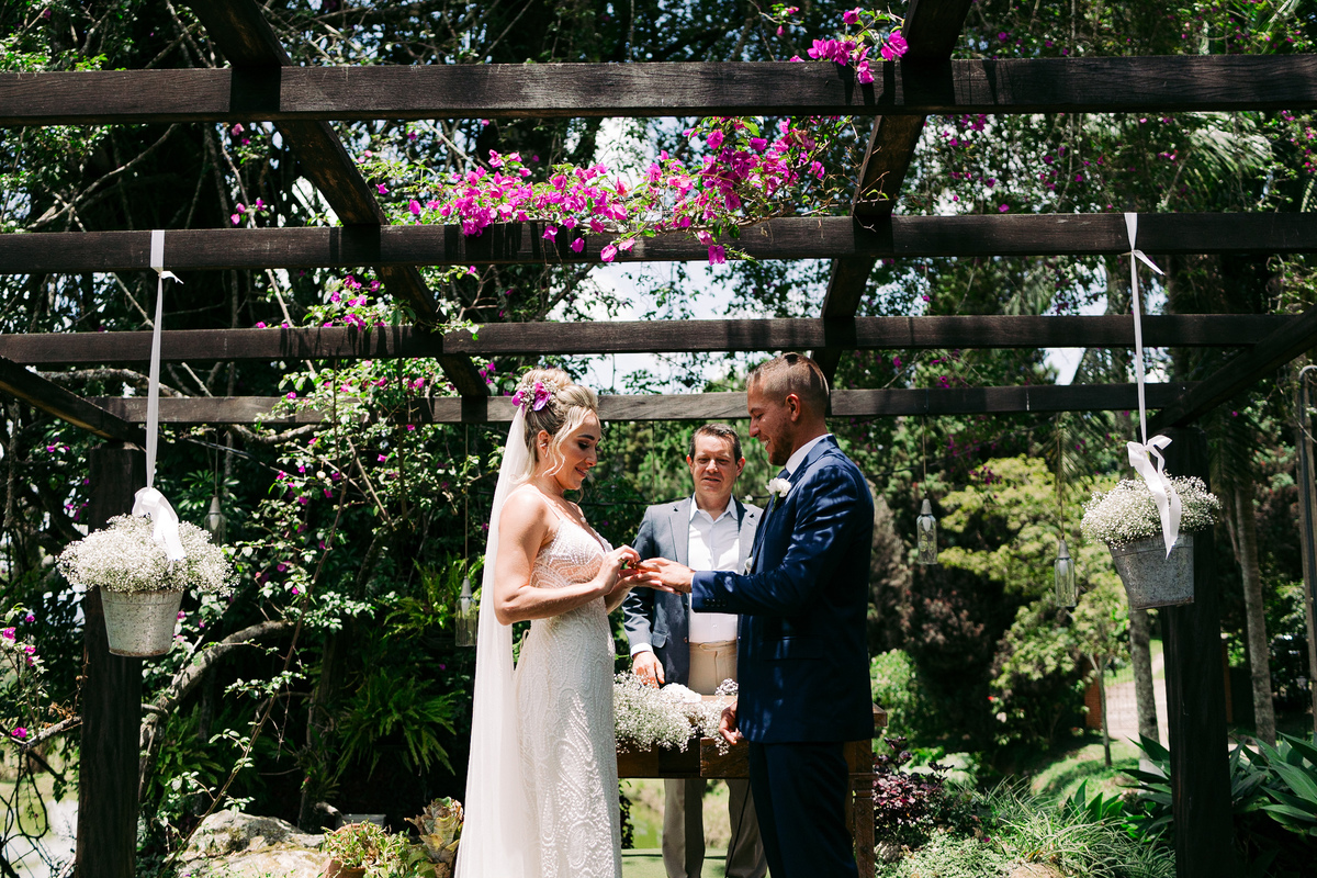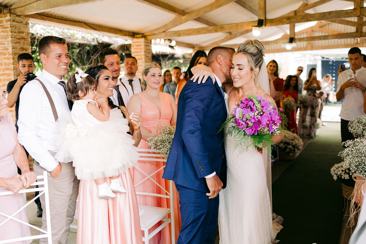 A cerimônia foi marcada por palavras sinceras de compromisso e votos de amor eterno, selados com um doce beijo. E, ao som da natureza como trilha sonora, o casal embarcou em uma nova jornada juntos.