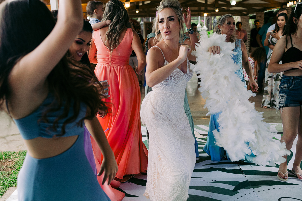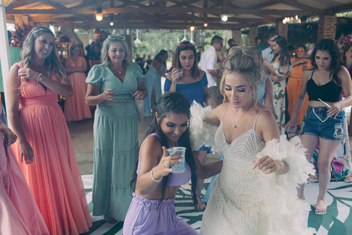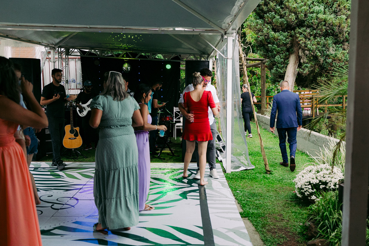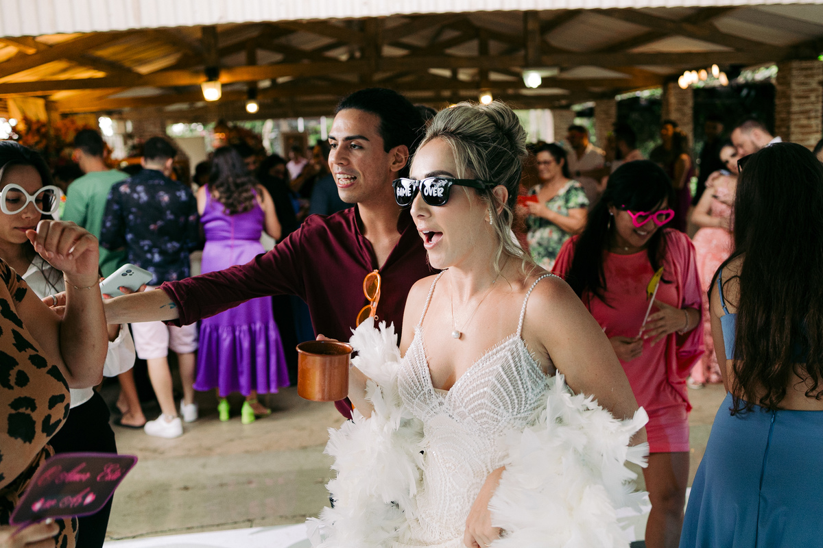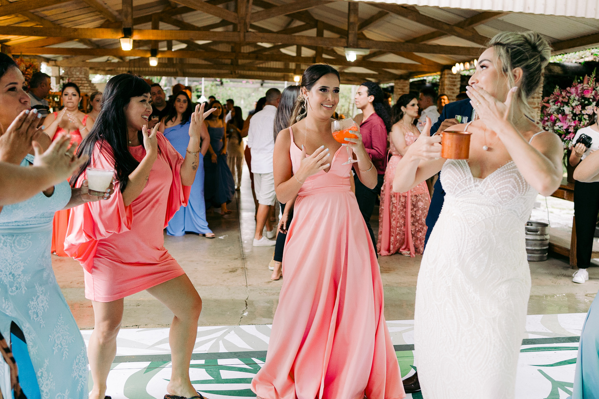 A festa que se seguiu foi um verdadeiro reflexo da personalidade vibrante de Rafaela e Gustavo. Com música animada e muita diversão, todos se entregaram à alegria do momento. Os risos ecoavam entre as árvores enquanto amigos e familiares dançavam e celebravam o amor que transbordava naquele lugar especial.