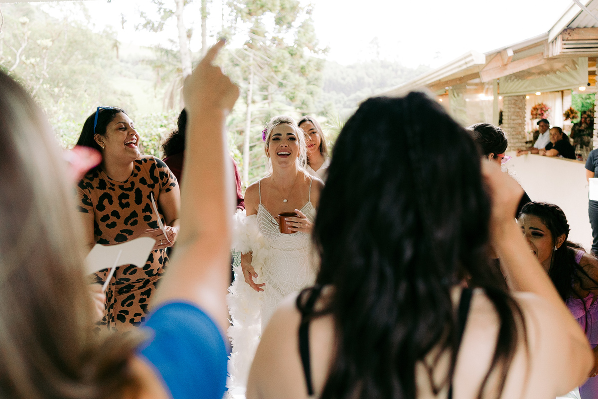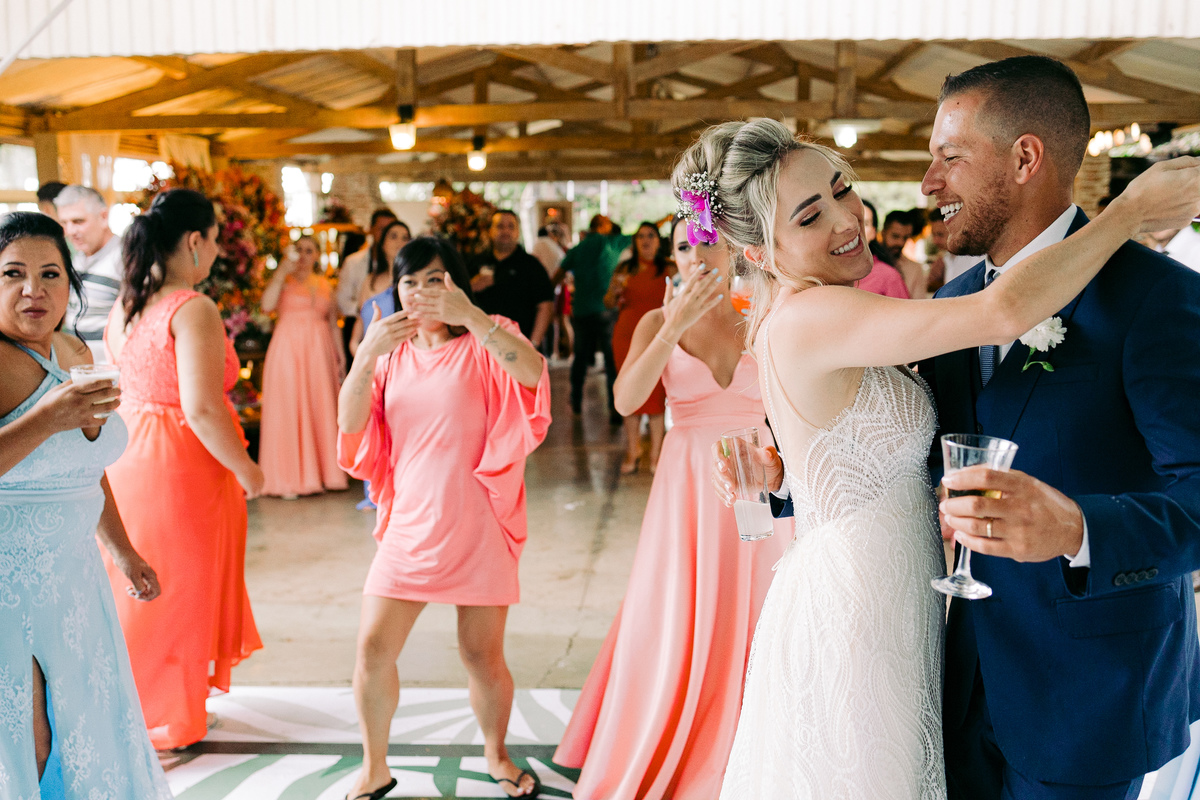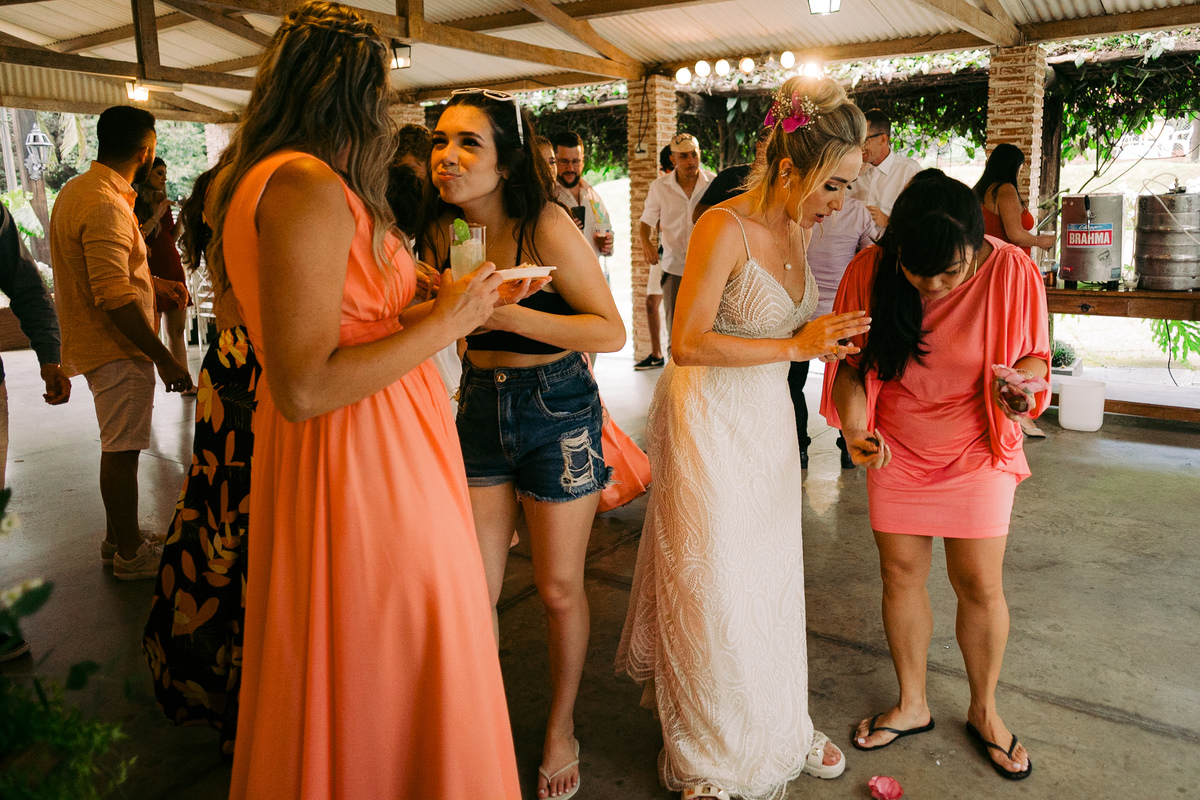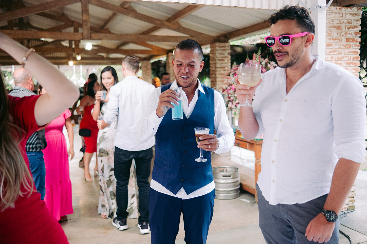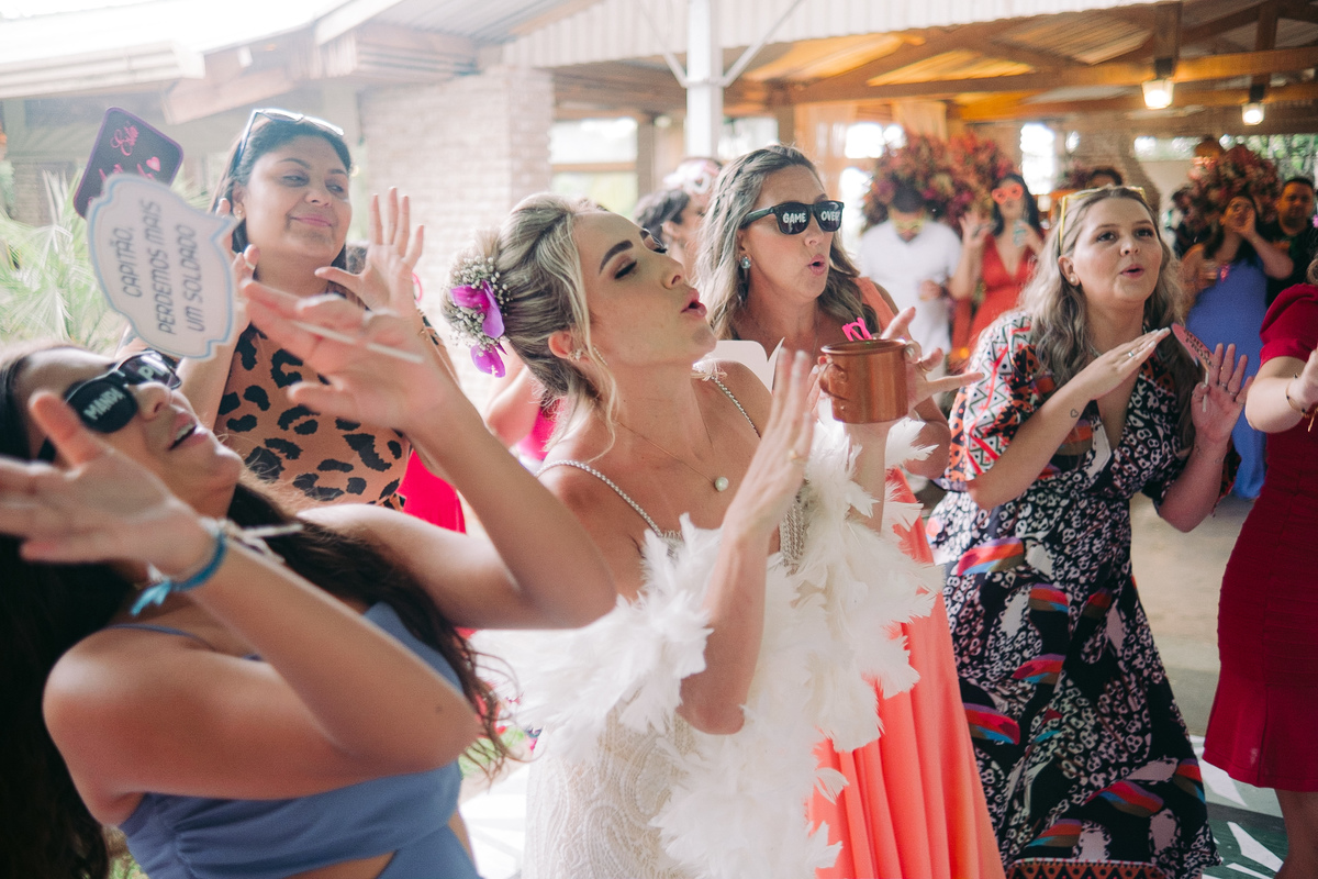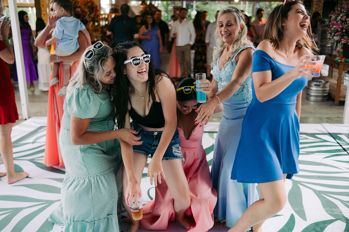 A festa que se seguiu foi um verdadeiro reflexo da personalidade vibrante de Rafaela e Gustavo. Com música animada e muita diversão, todos se entregaram à alegria do momento. Os risos ecoavam entre as árvores enquanto amigos e familiares dançavam e celebravam o amor que transbordava naquele lugar especial.