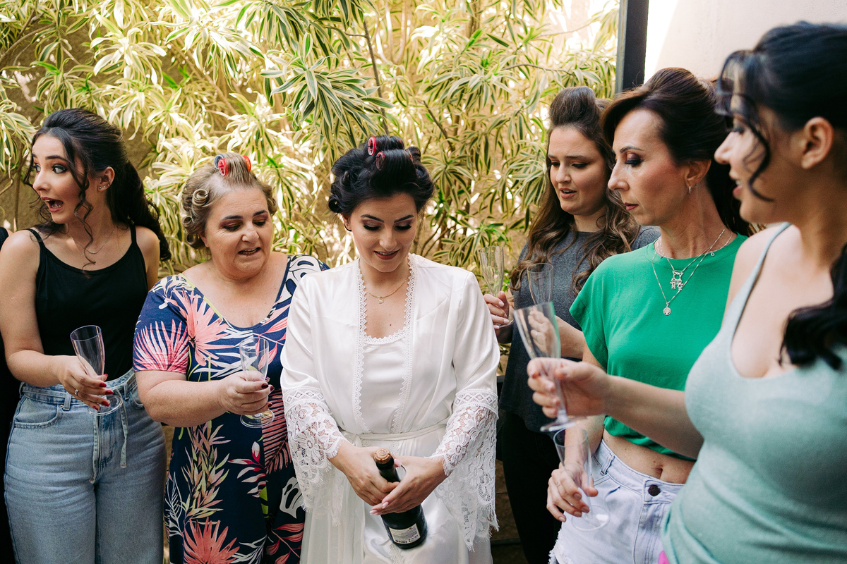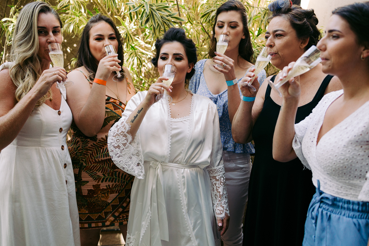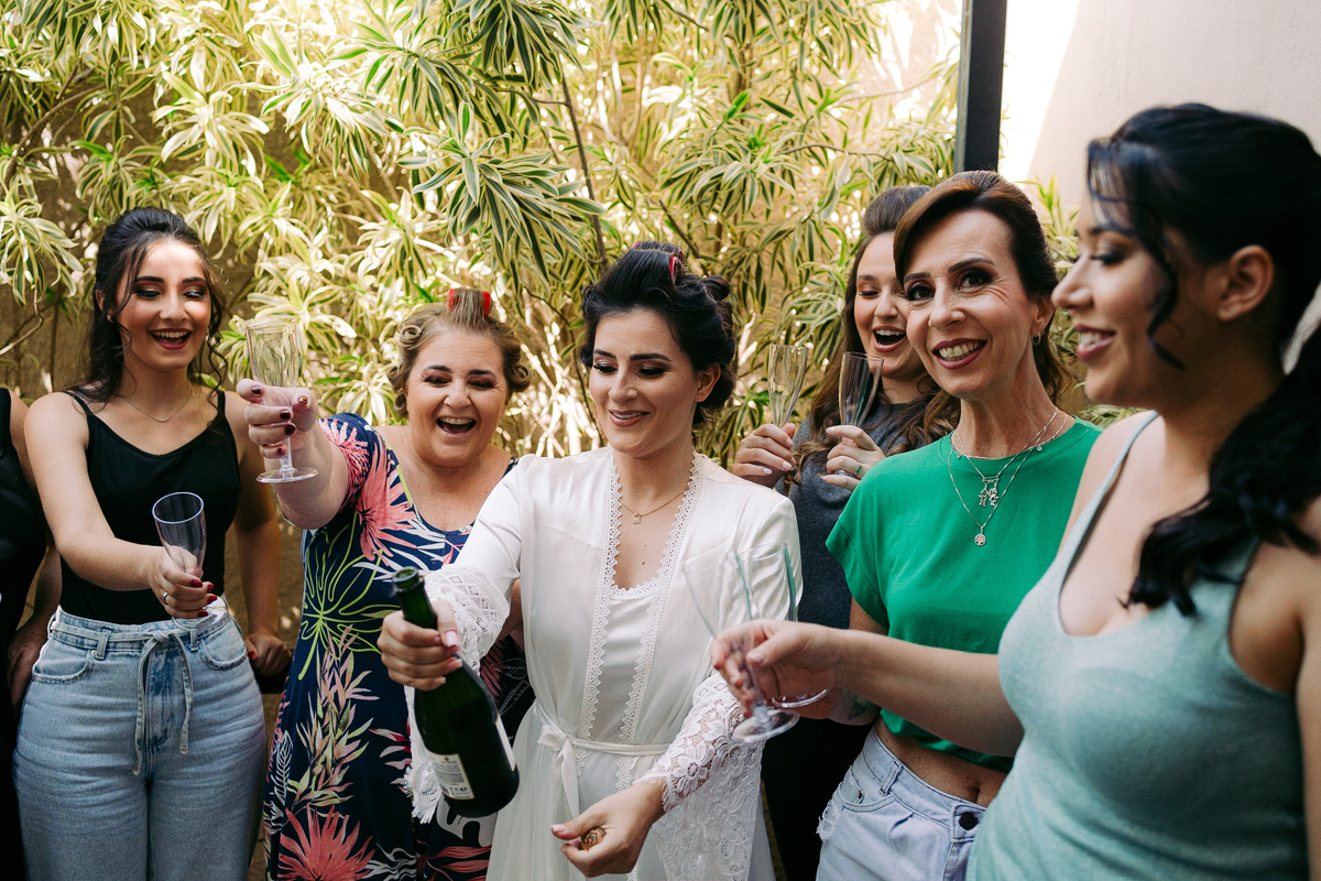 No grande dia de Rafaela e Gabriel, a energia era contagiante desde os preparativos até o último brinde. O making of da noiva foi uma verdadeira festa, com as madrinhas e amigas reunidas, transbordando alegria e entusiasmo. Entre risadas e momentos especiais, elas brindaram à felicidade da noiva, criando uma atmosfera de animação total.