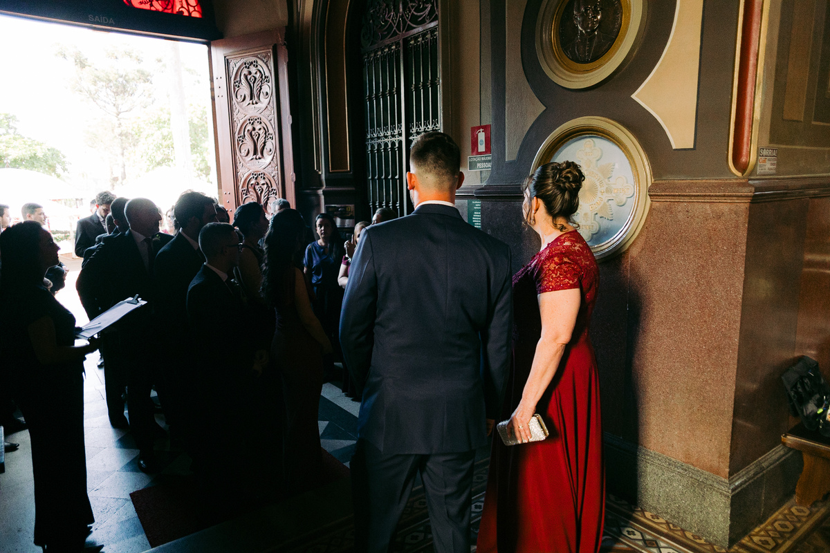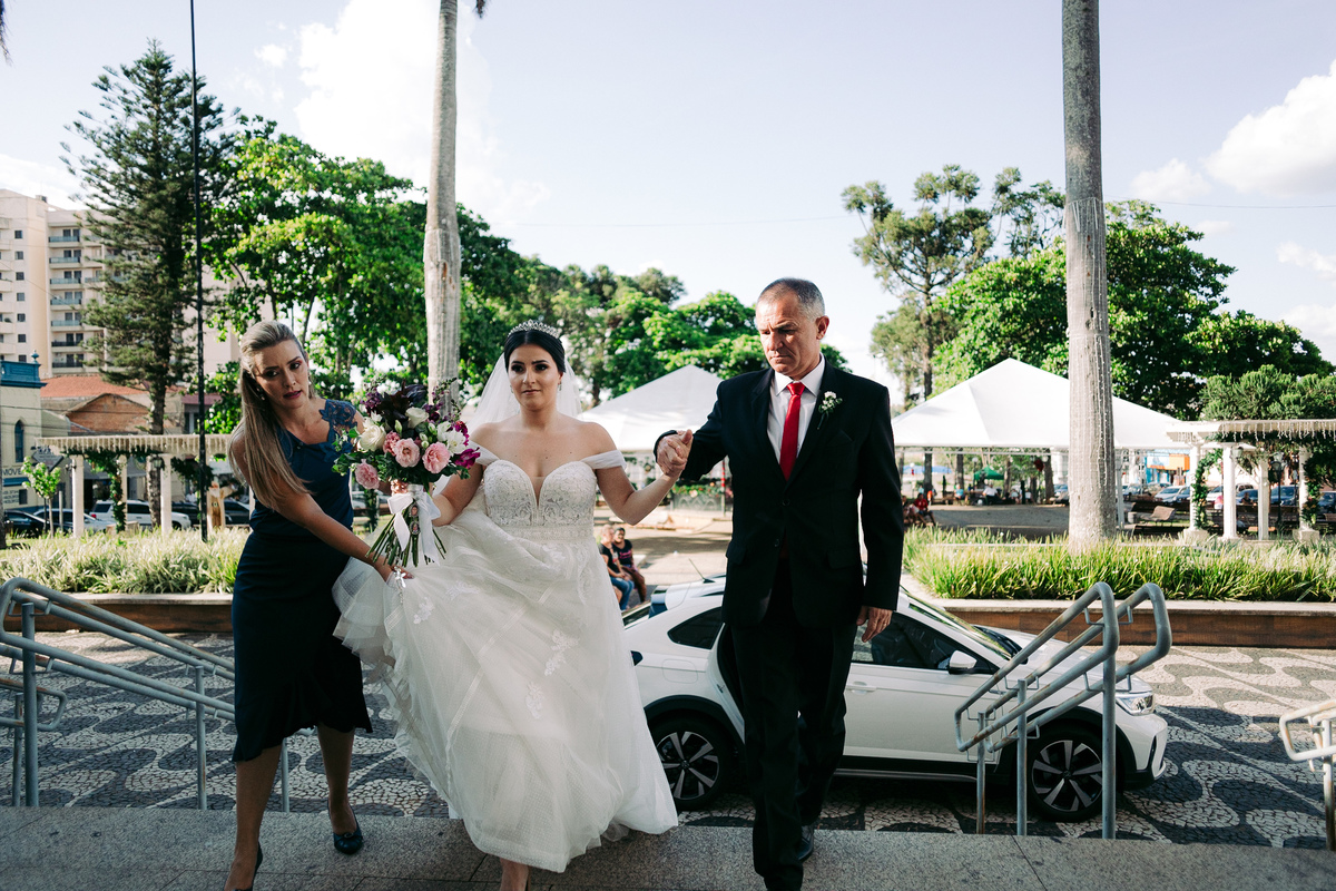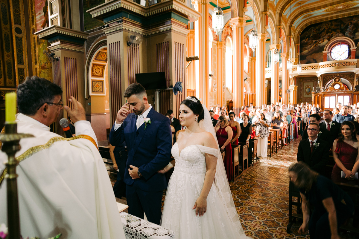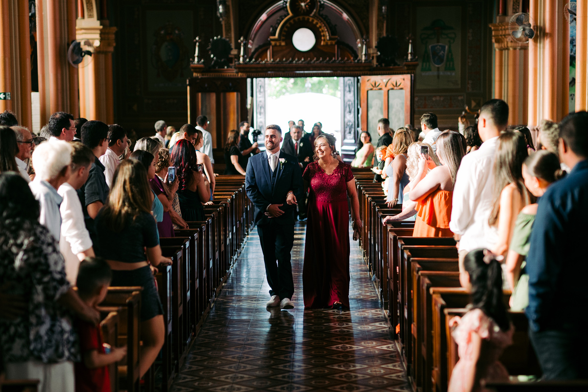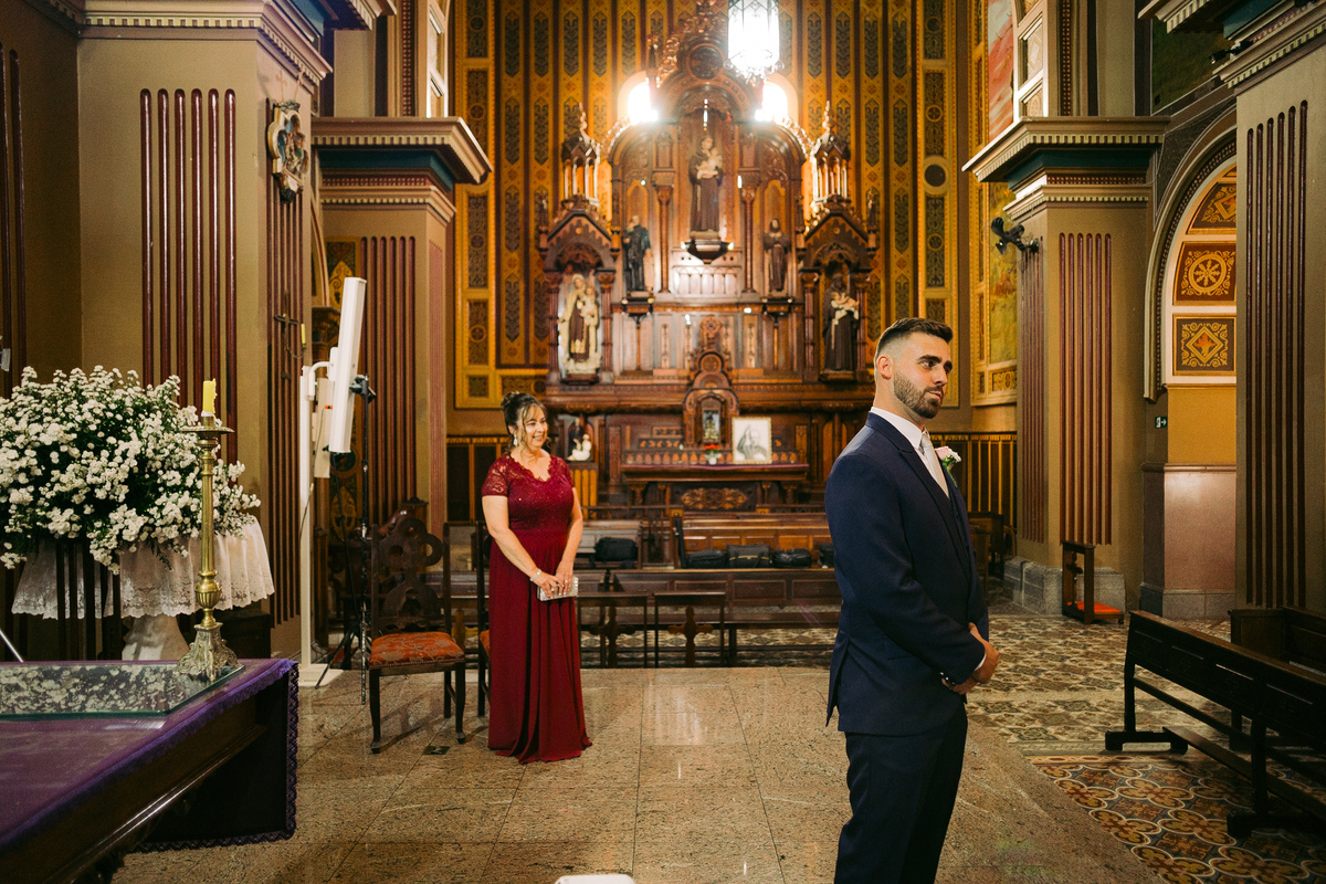 Enquanto isso, o noivo estava cercado de amor e apoio dos padrinhos, além da preciosa ajuda do pai e do irmão para vestir o terno, prontos para acompanhá-lo rumo à igreja. E que igreja! A linda Matriz de Espírito Santo do Pinhal foi o cenário perfeito para a cerimônia religiosa, onde cada momento transbordava emoção.