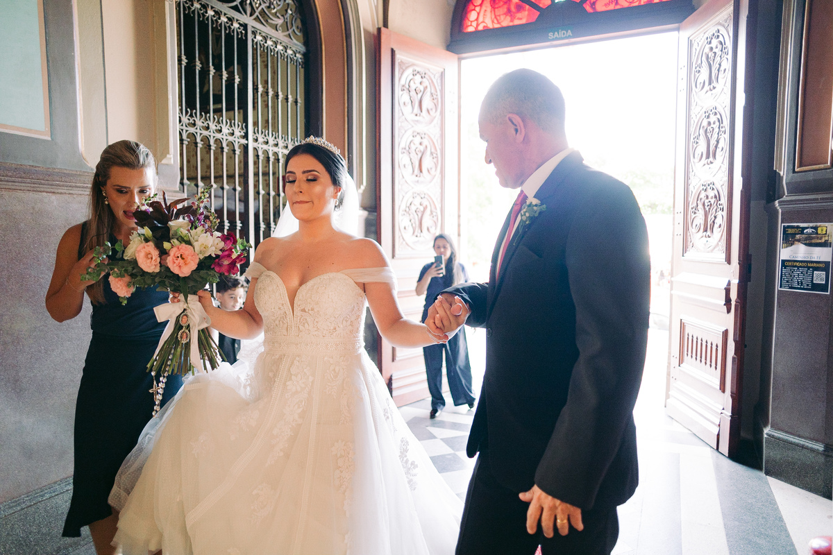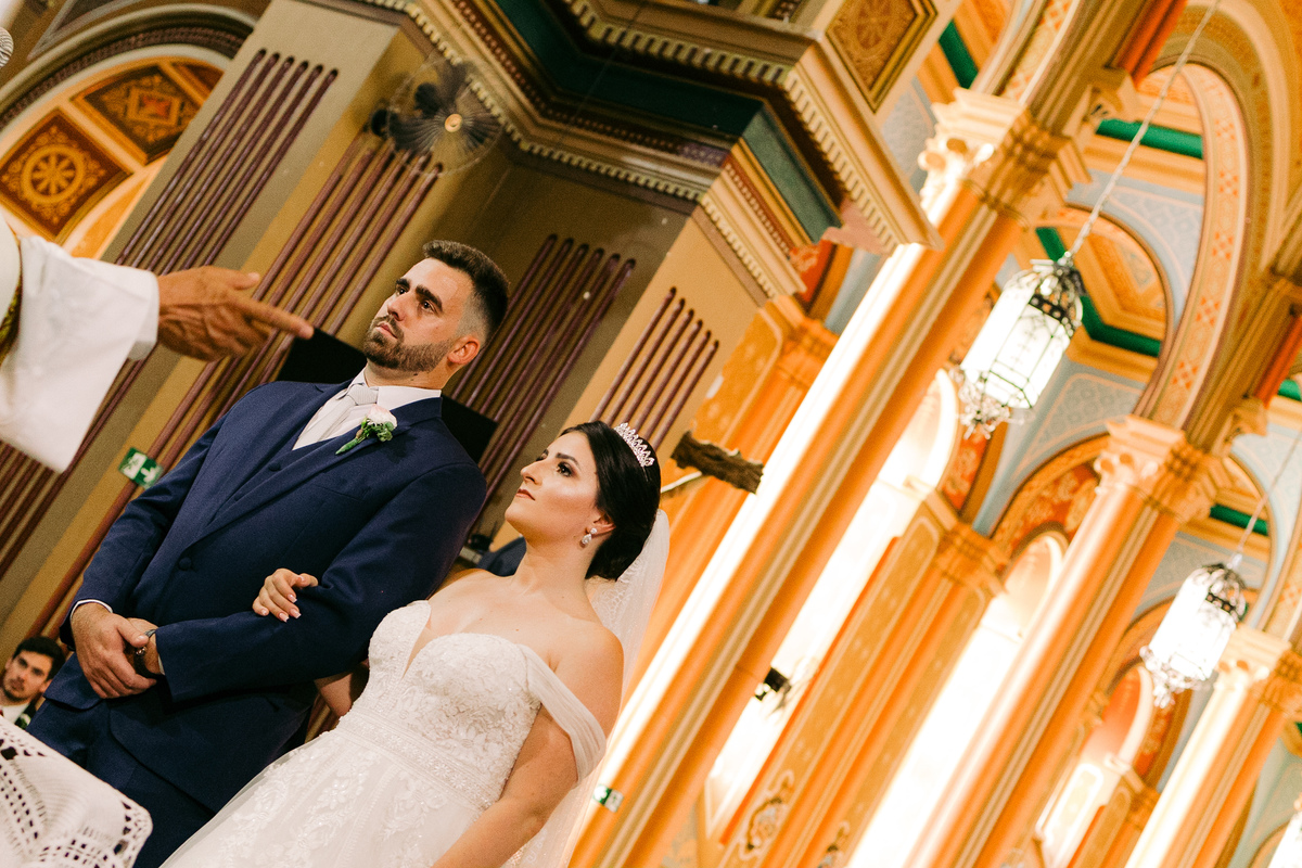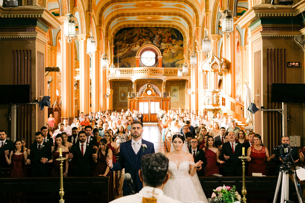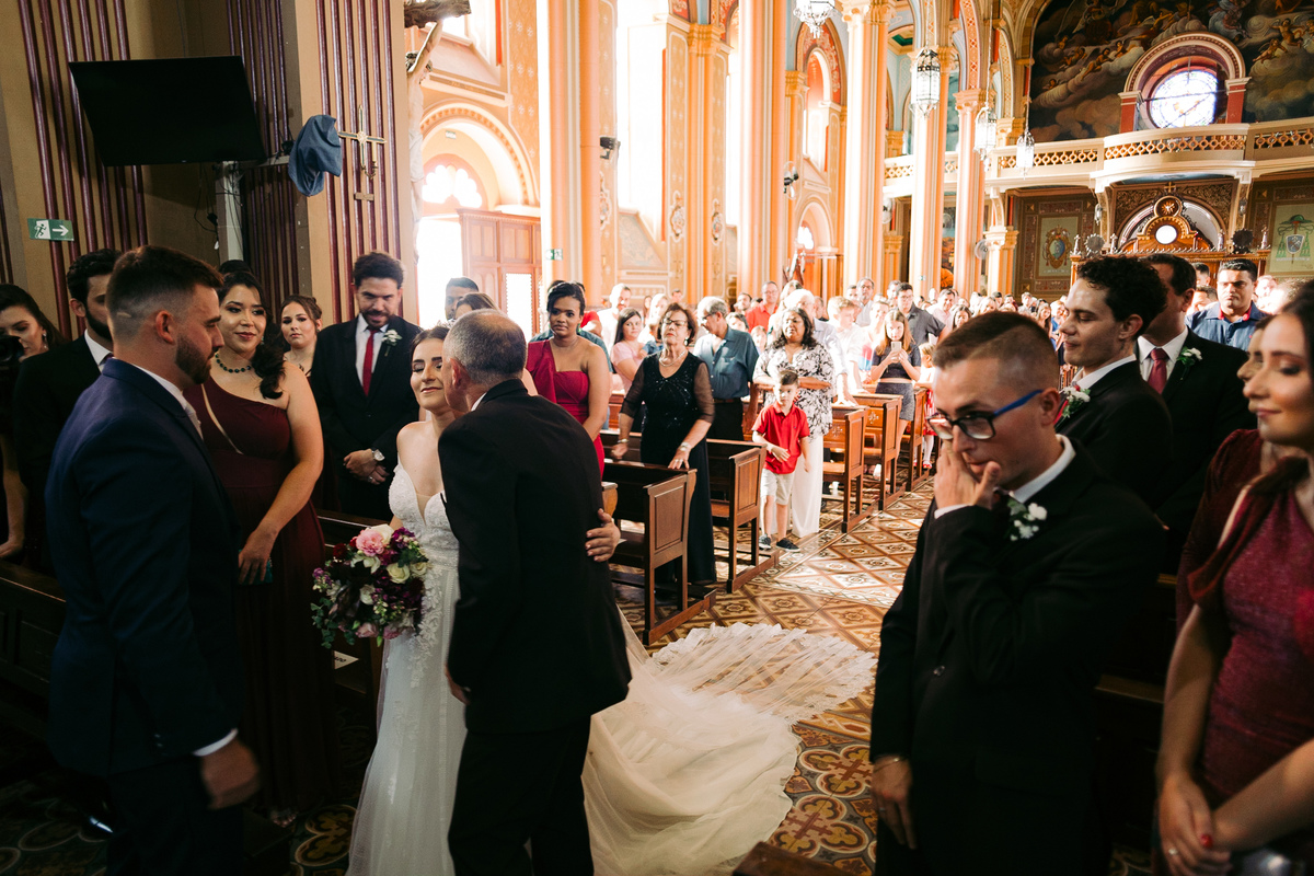 Enquanto isso, o noivo estava cercado de amor e apoio dos padrinhos, além da preciosa ajuda do pai e do irmão para vestir o terno, prontos para acompanhá-lo rumo à igreja. E que igreja! A linda Matriz de Espírito Santo do Pinhal foi o cenário perfeito para a cerimônia religiosa, onde cada momento transbordava emoção.
