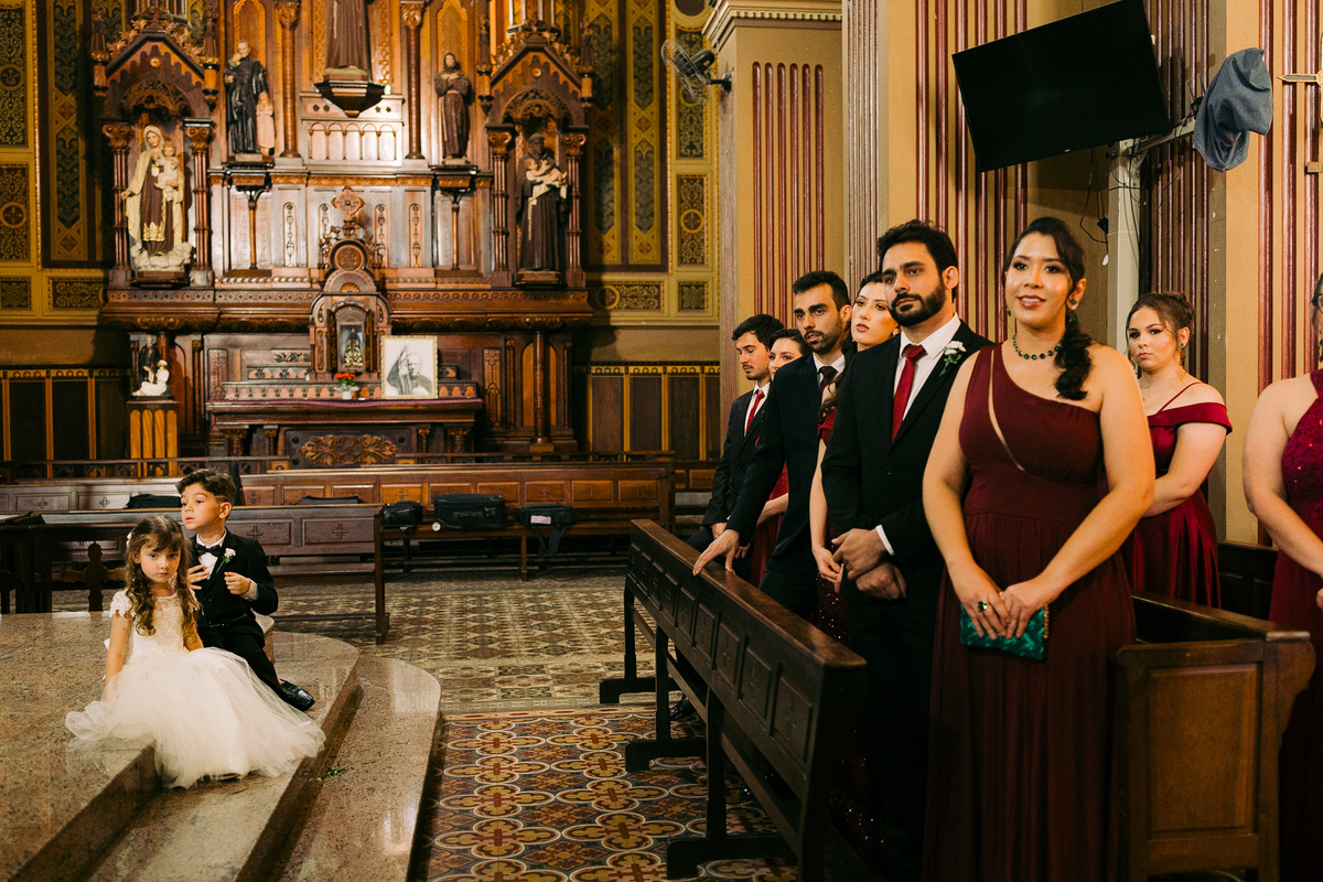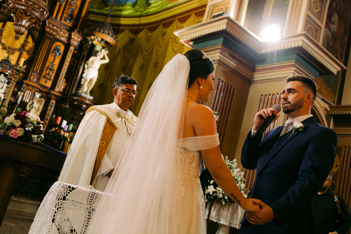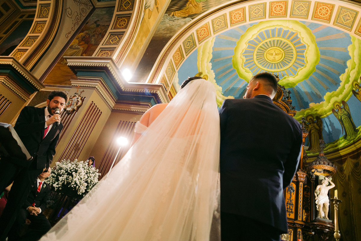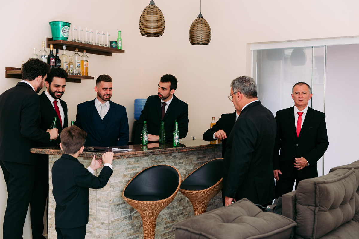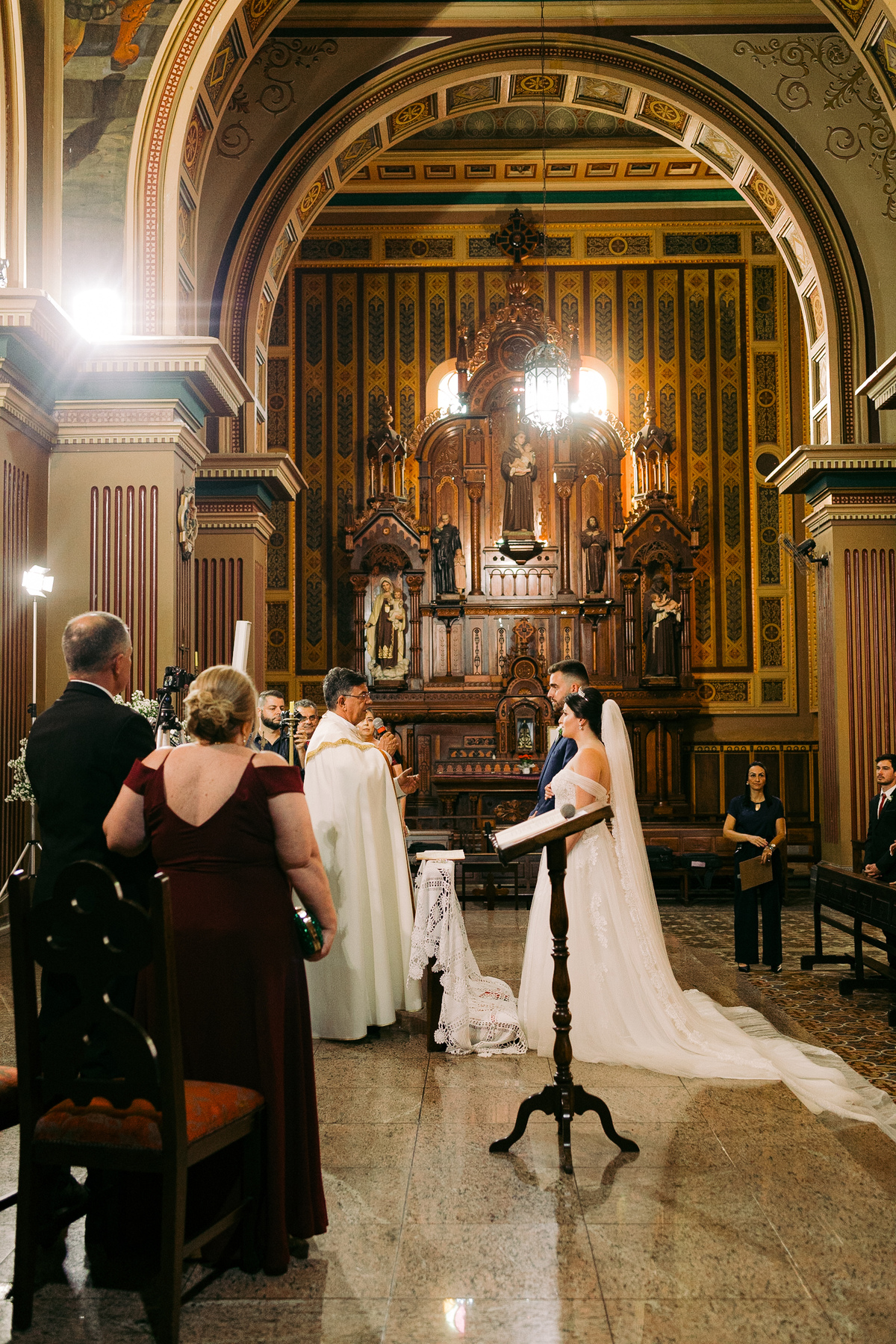 Enquanto isso, o noivo estava cercado de amor e apoio dos padrinhos, além da preciosa ajuda do pai e do irmão para vestir o terno, prontos para acompanhá-lo rumo à igreja. E que igreja! A linda Matriz de Espírito Santo do Pinhal foi o cenário perfeito para a cerimônia religiosa, onde cada momento transbordava emoção.