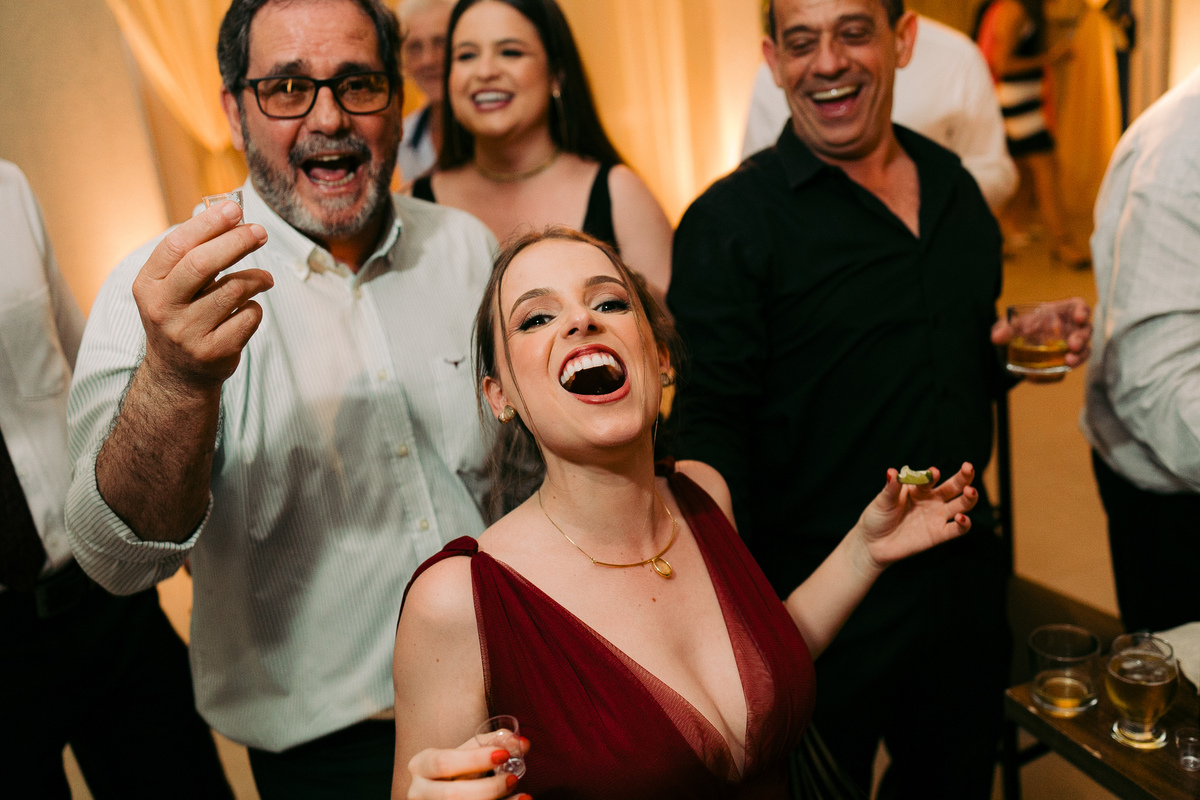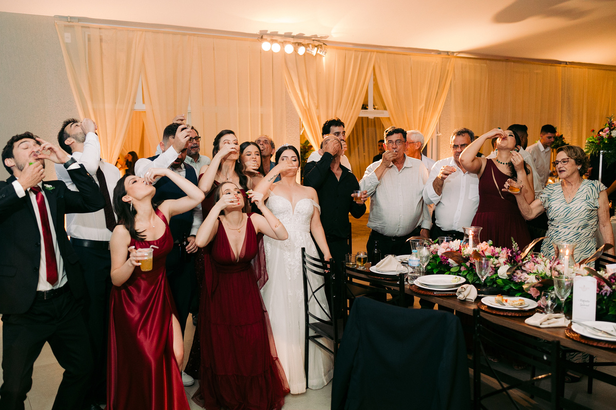 E que momento foi aquele do brinde com tequila? Até o padre entrou na brincadeira, mostrando que o amor e a celebração estavam acima de qualquer convenção. Foi uma festa que começou com o pé direito e terminou com muita animação, deixando memórias inesquecíveis para todos os presentes.