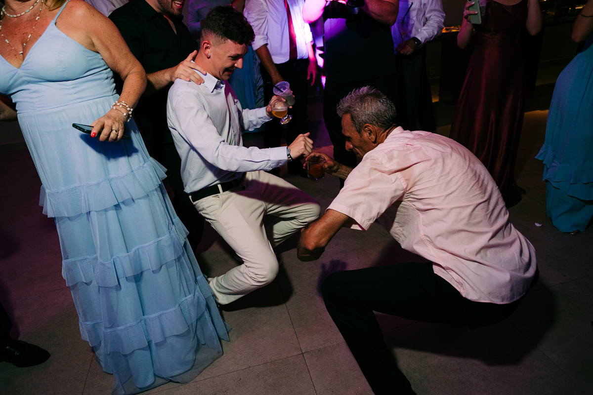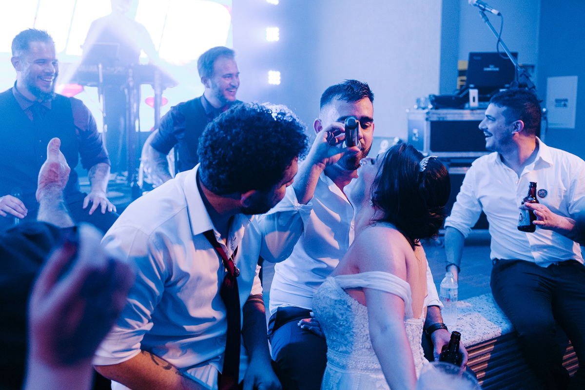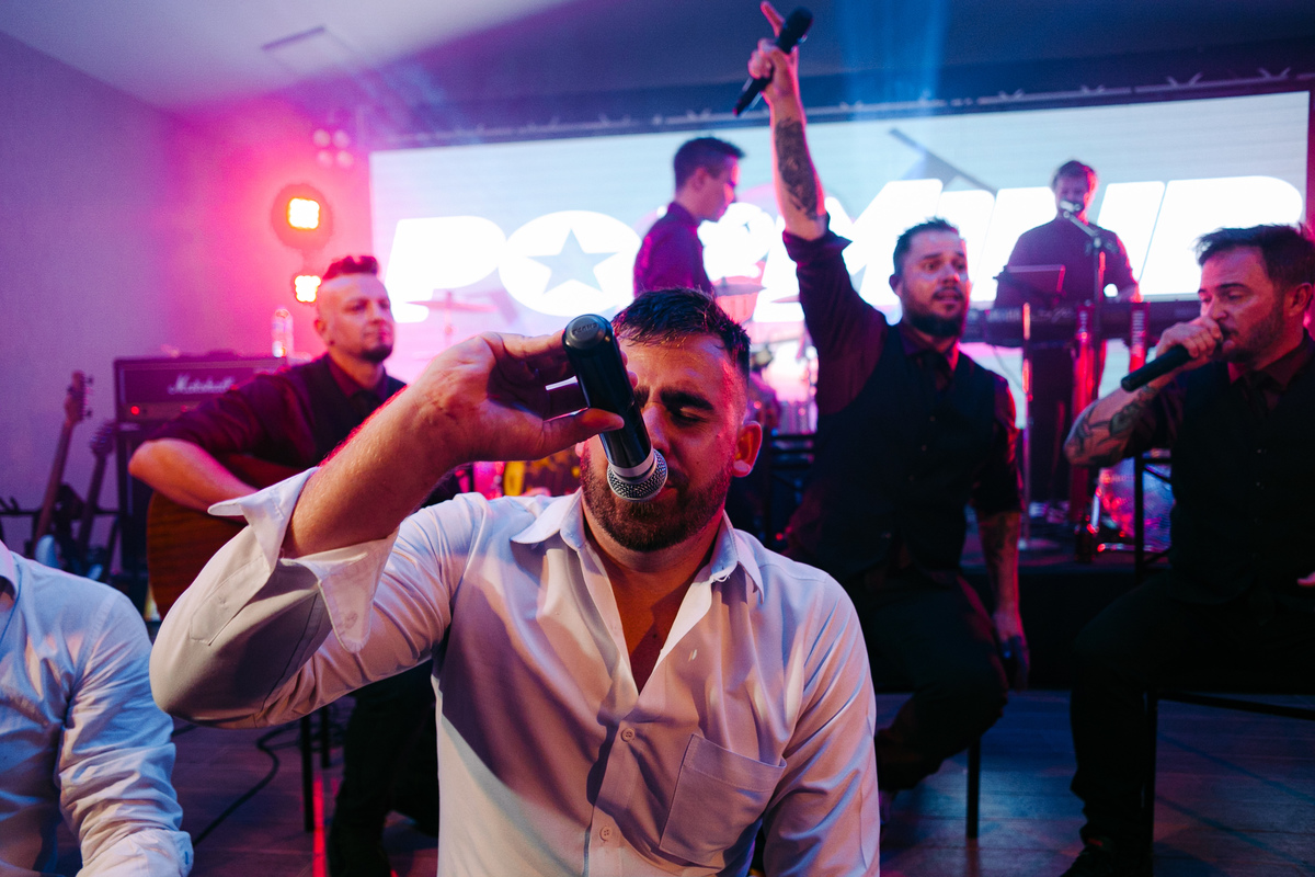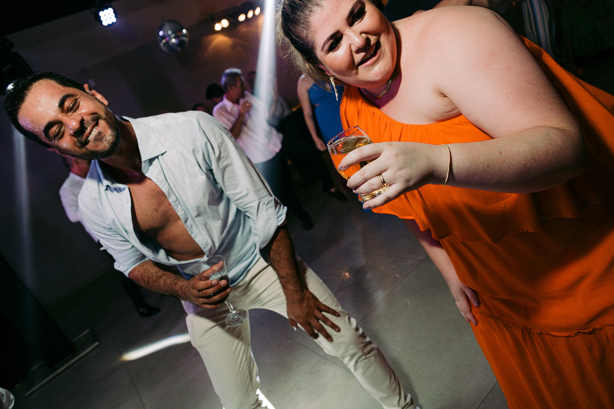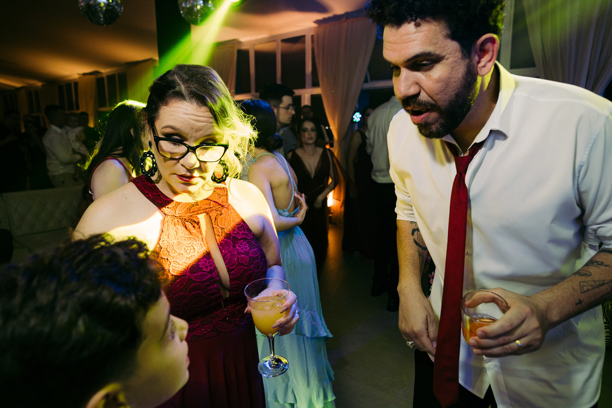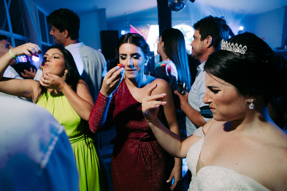 Ao final da tarde, o cenário se transformou em um espetáculo de cores e luzes, marcando o início de uma festa inesquecível. A banda PopMind agitou a pista de dança, garantindo que ninguém ficasse parado. E não foi apenas a banda que animou a festa; o noivo e seus amigos também deram seu show particular, cantando e contagiando a todos com sua alegria.