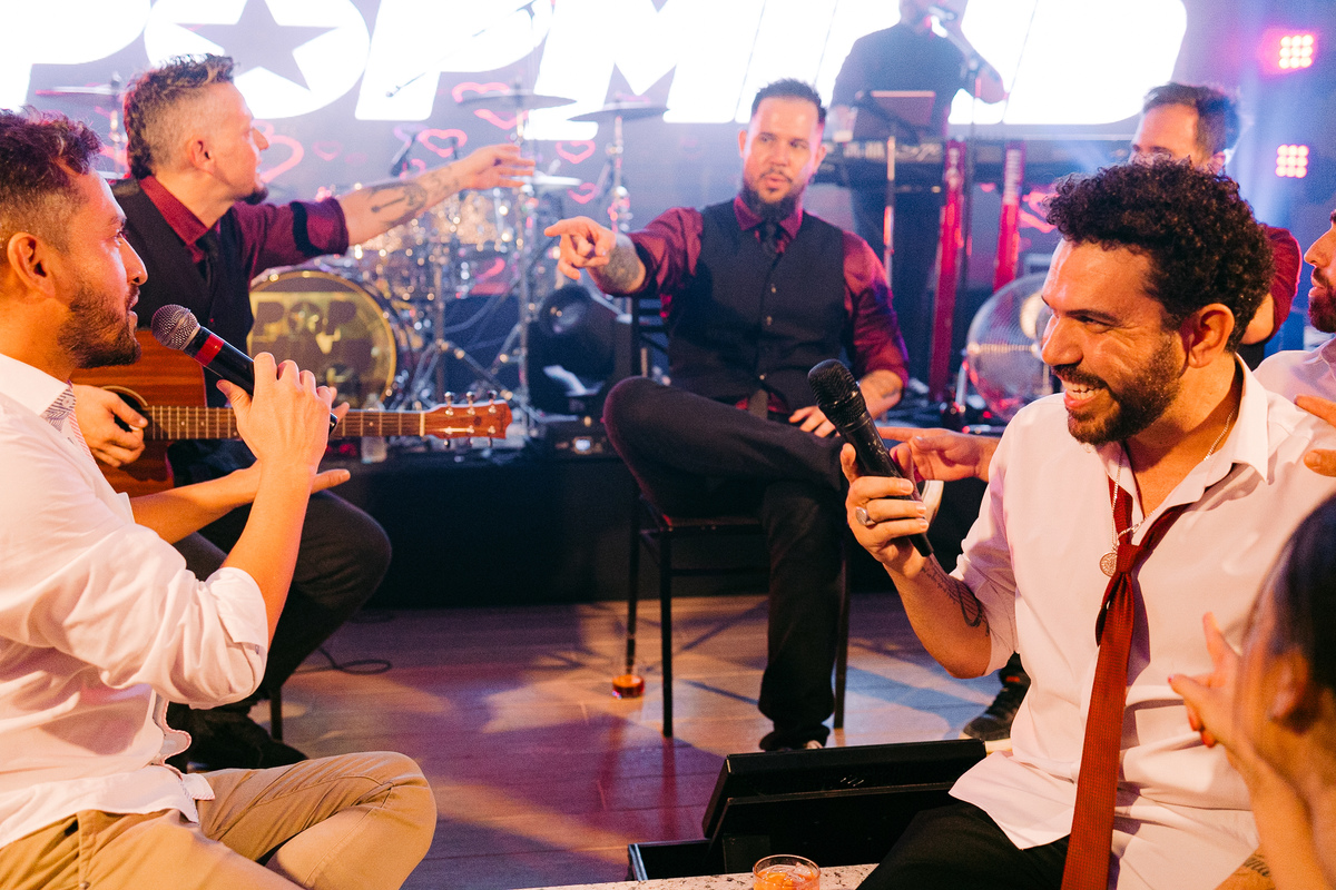 E que dizer das surpresas durante a cerimônia? Os amigos do noivo e o próprio Gabriel presentearam os convidados com suas vozes, cantando canções que celebravam o amor e a amizade. Foi impossível conter as lágrimas diante de tanto sentimento compartilhado.