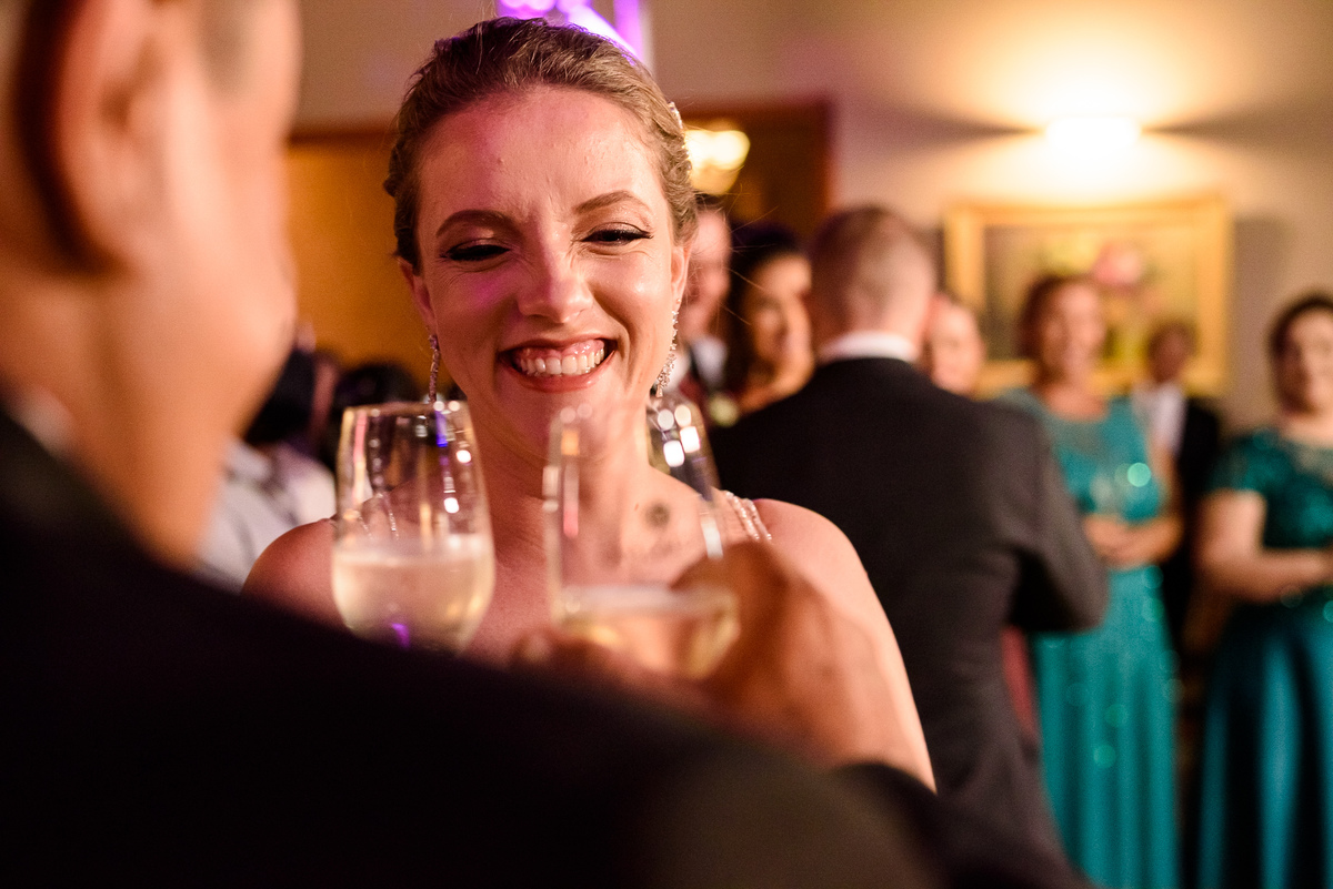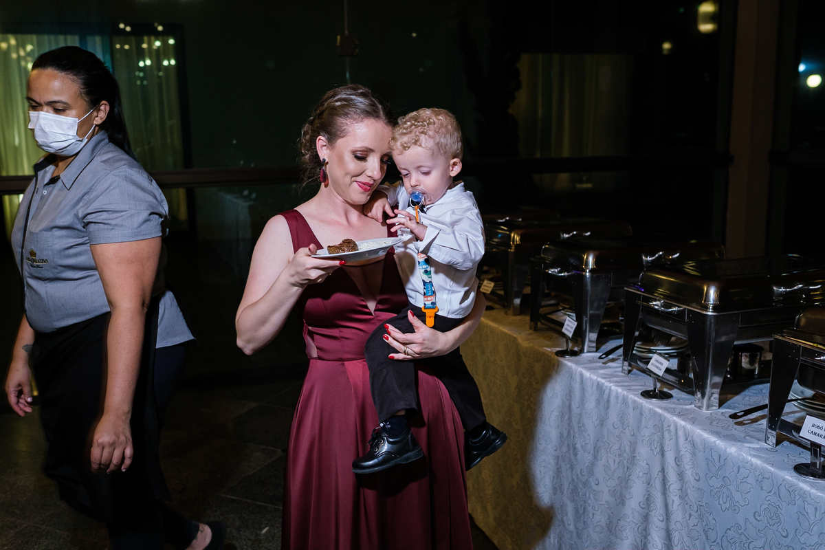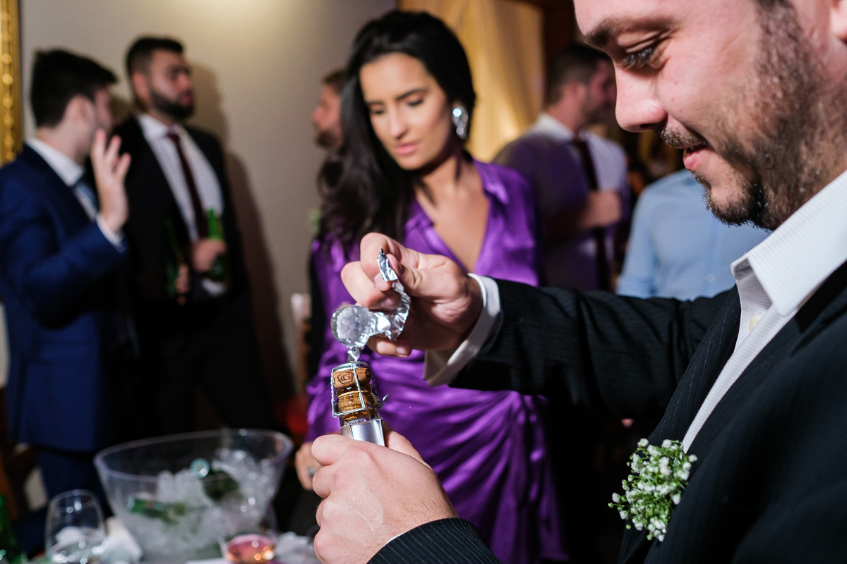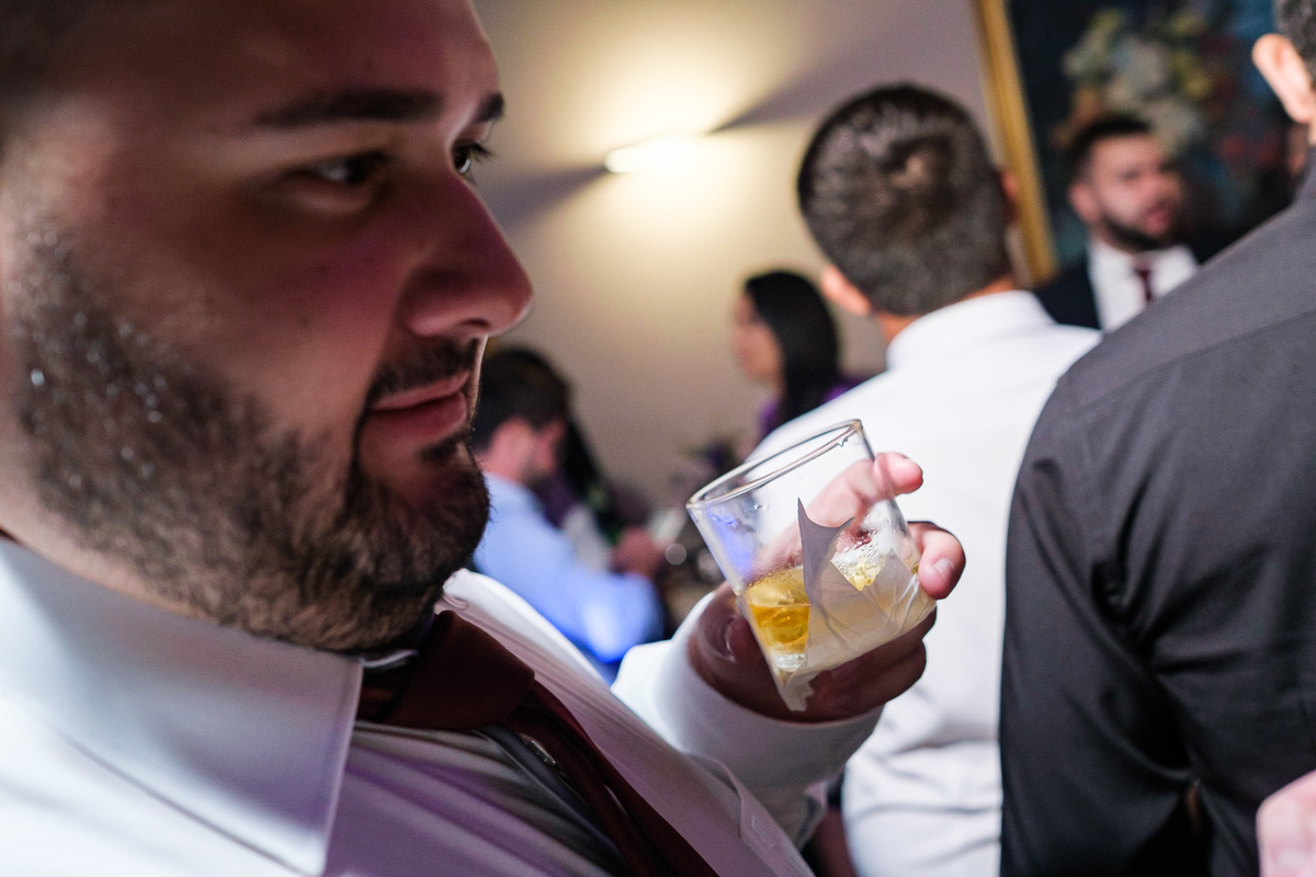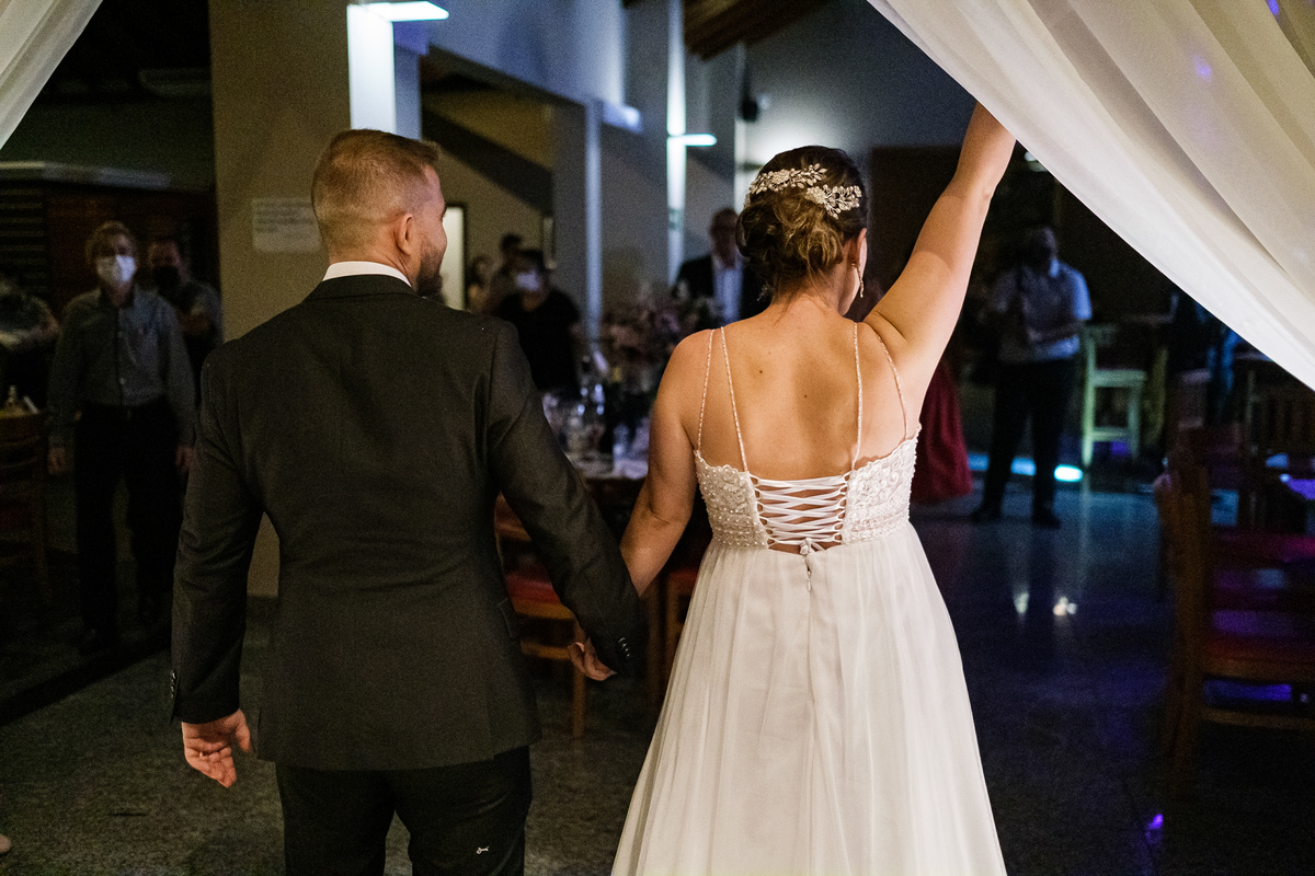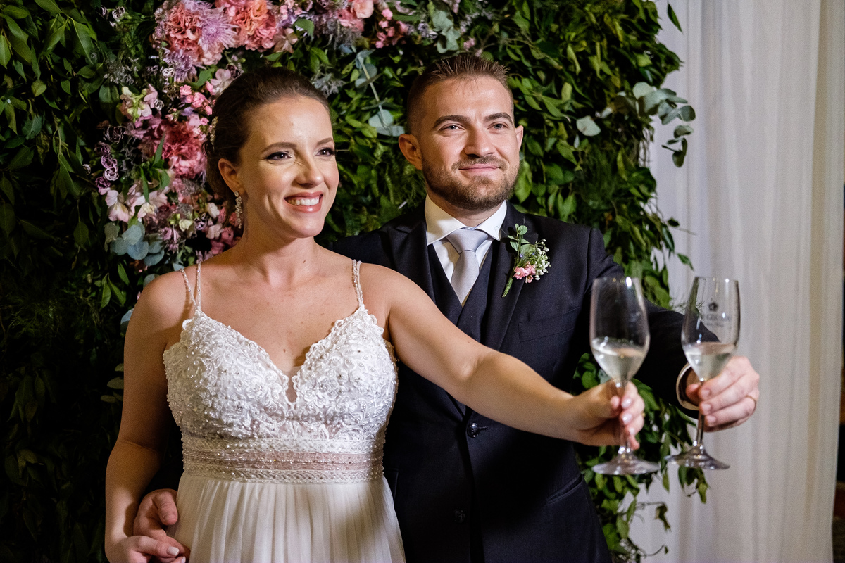 Após a cerimônia, a festa começou e foi absolutamente animada. A energia contagiante dos noivos se espalhou por todo o salão, e logo todos estavam dançando e celebrando a união do casal. A pista de dança esteve movimentada durante toda a noite, com os convidados se divertindo.