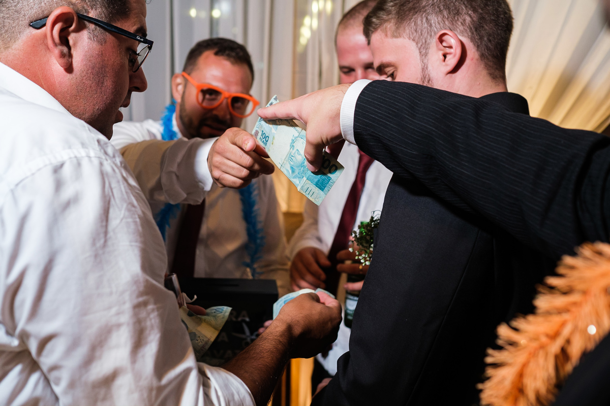 E sobre a parte da gravata do noivo, bem, parece que a animação estava tão alta que até mesmo a tradição de vender itens da gravata se tornou algo inusitado. Vendendo até mesmo a cueca do noivo, a brincadeira proporcionou risadas e momentos de descontração entre os convidados.
