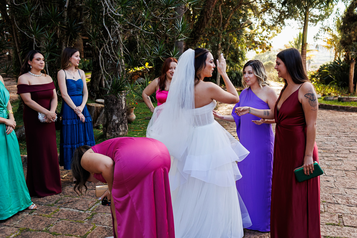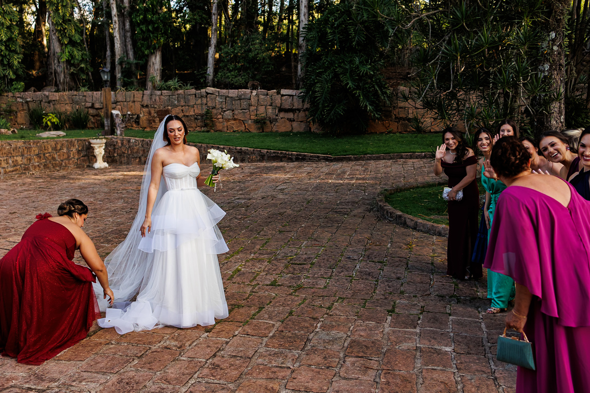 O dia do casamento começou com o making of da Julia. Ela estava rodeada por suas amigas mais próximas, sua mãe e sua querida avó, que traziam consigo décadas de sabedoria e amor. O clima era de pura alegria e animação, com risadas ecoando pelo ambiente enquanto cada detalhe do visual de Julia era cuidadosamente preparado. Entre brindes de champanhe e momentos emocionantes, as mulheres compartilhavam histórias e conselhos, criando memórias preciosas que durariam para sempre.