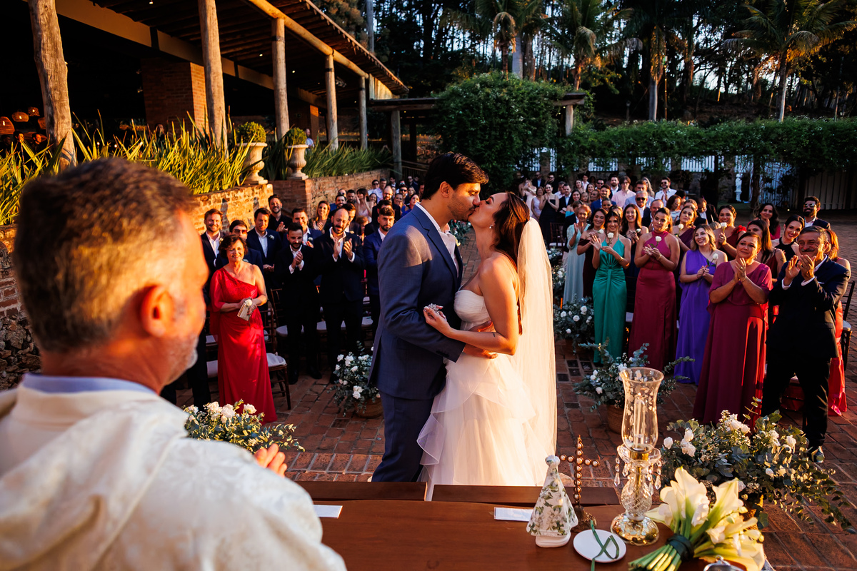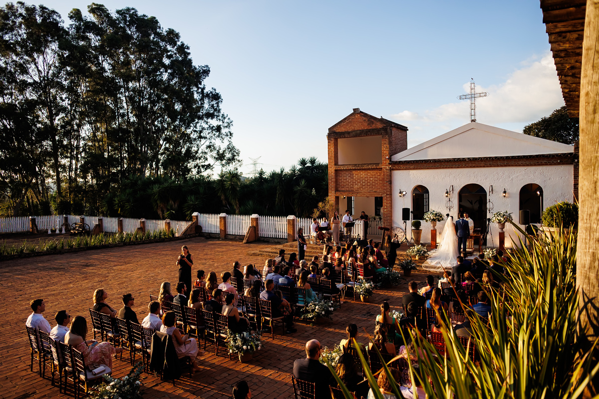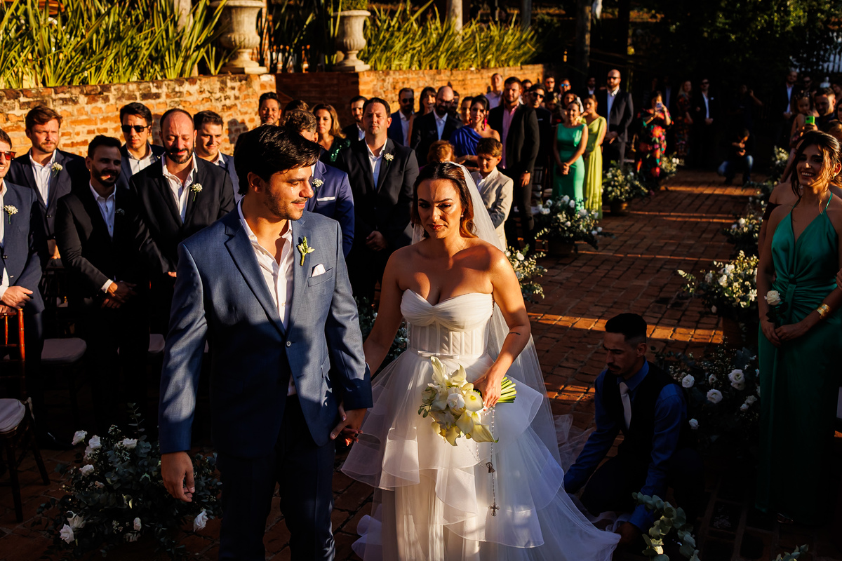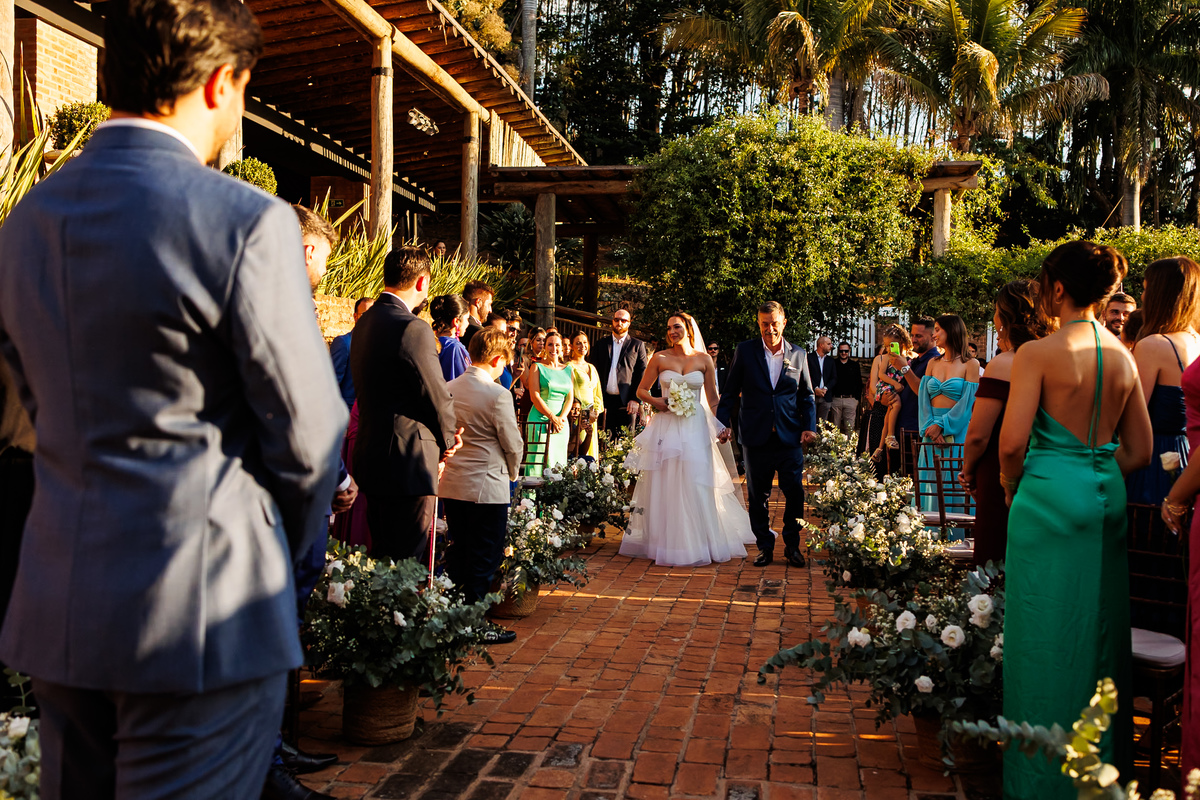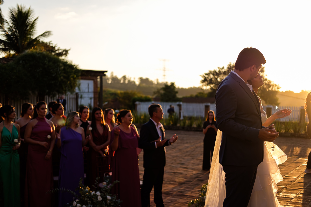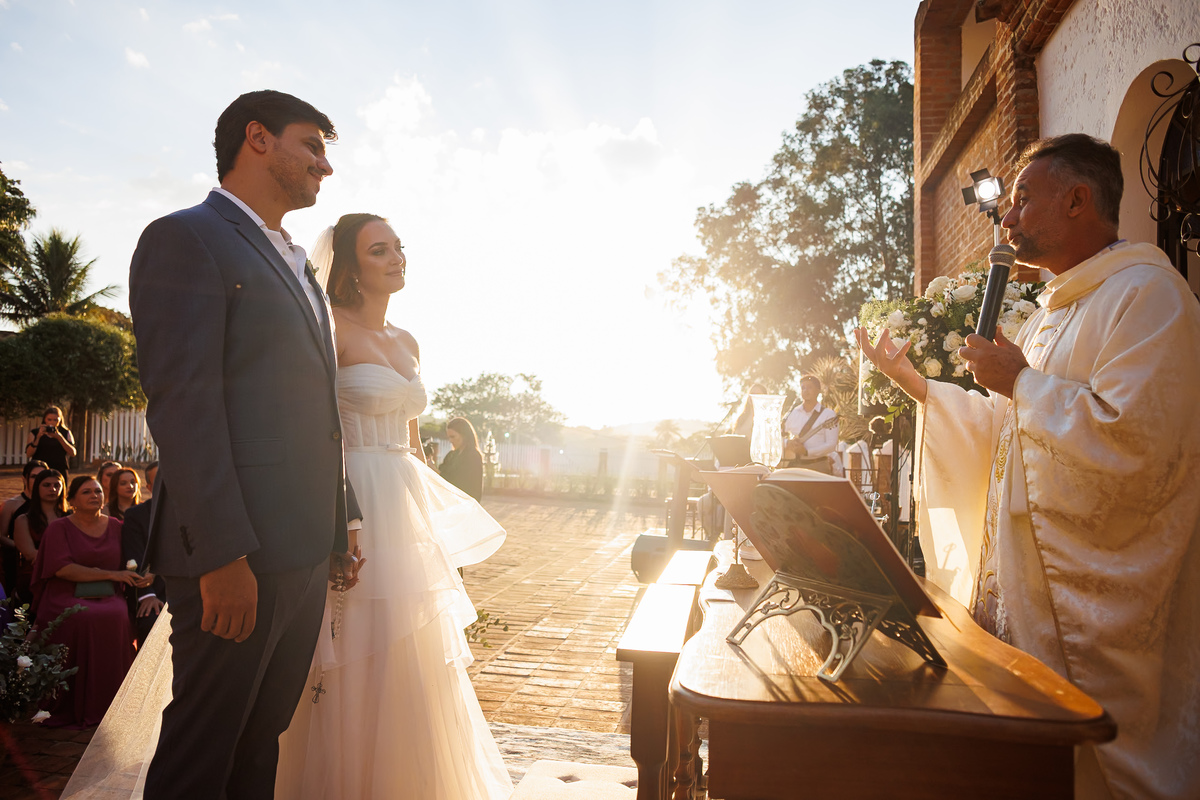 O momento da cerimônia finalmente chegou, e o cenário no Fazenda Casarão São Bento era simplesmente deslumbrante. O sol começava a se pôr, pintando o céu com tons quentes e dourados, enquanto Julia caminhava até o altar, irradiando beleza e felicidade. Fred a esperava com um olhar cheio de amor e admiração, pronto para trocar os votos que selariam seu compromisso para sempre.