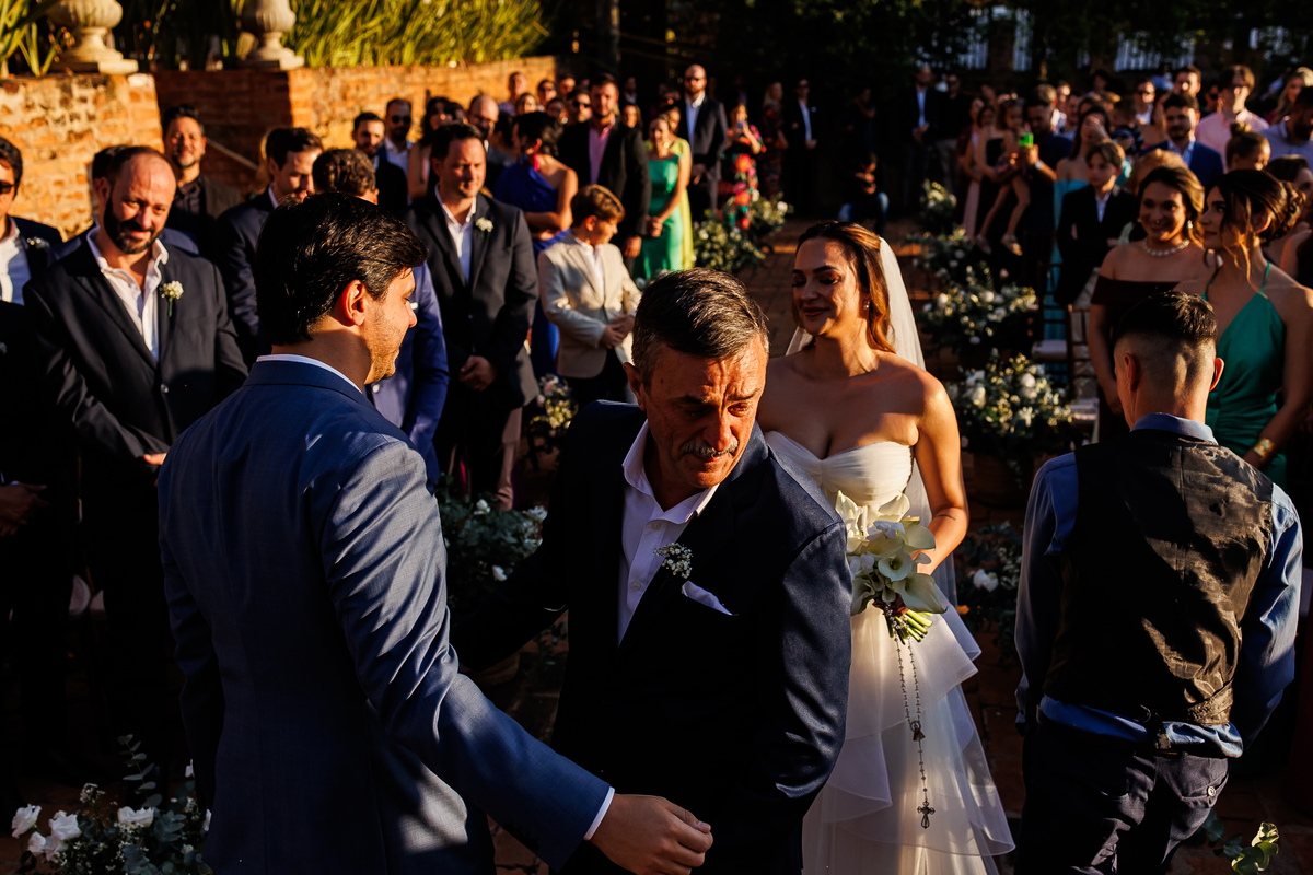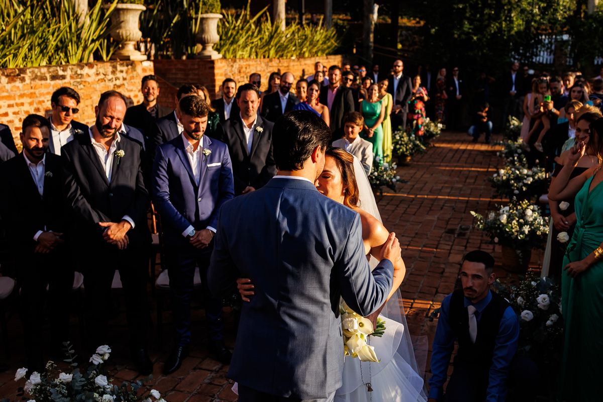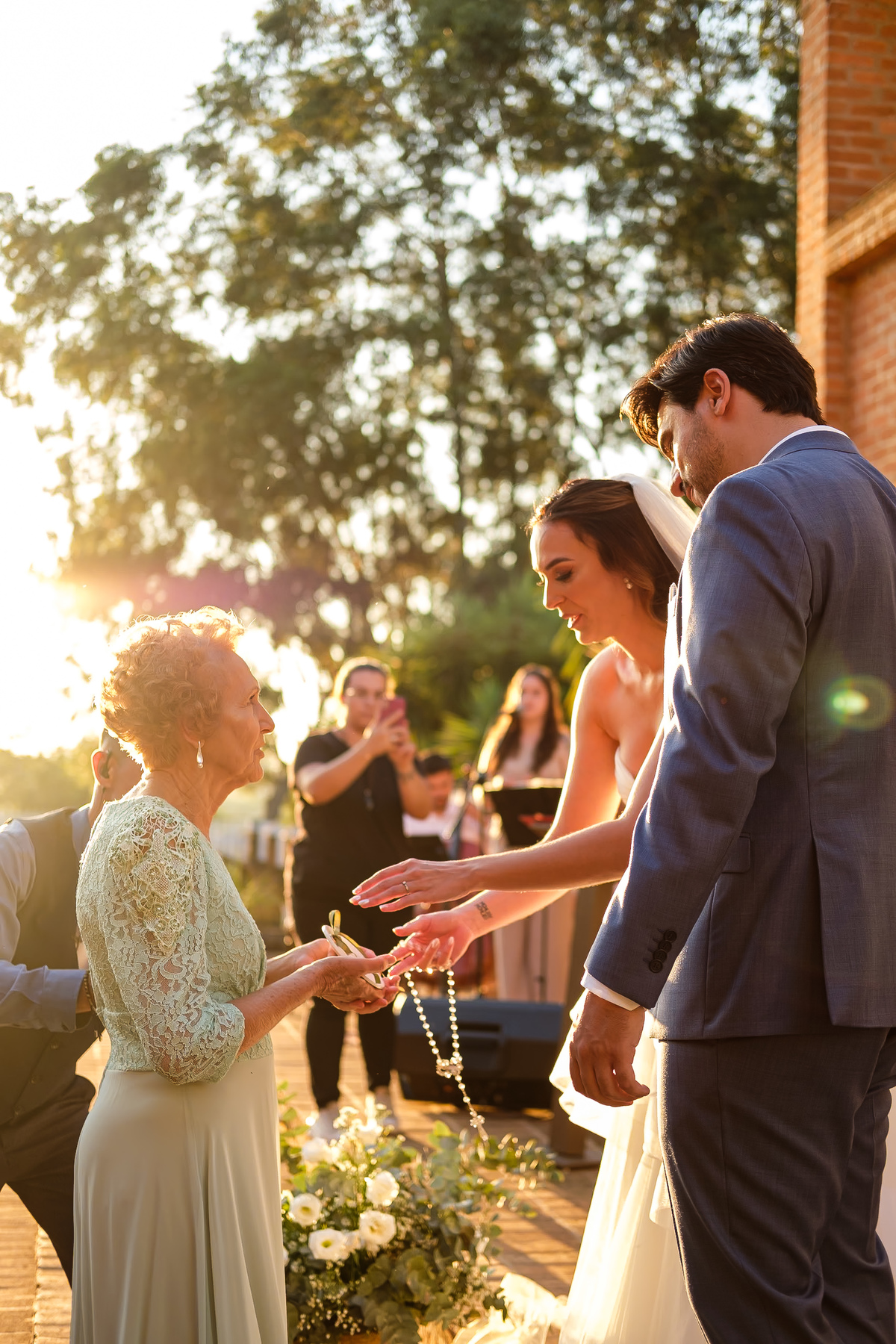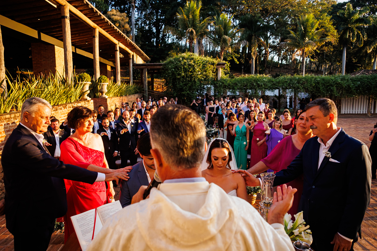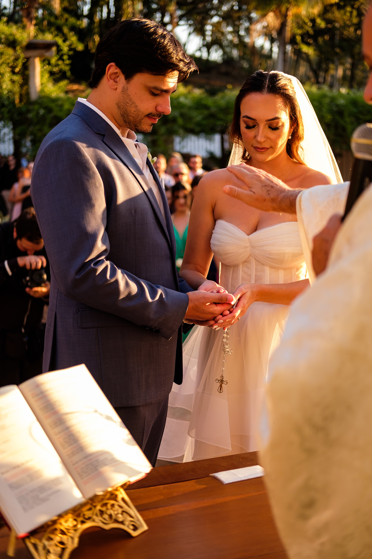 O momento da cerimônia finalmente chegou, e o cenário no Fazenda Casarão São Bento era simplesmente deslumbrante. O sol começava a se pôr, pintando o céu com tons quentes e dourados, enquanto Julia caminhava até o altar, irradiando beleza e felicidade. Fred a esperava com um olhar cheio de amor e admiração, pronto para trocar os votos que selariam seu compromisso para sempre.